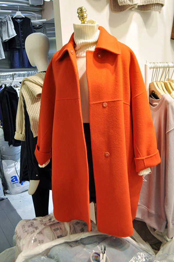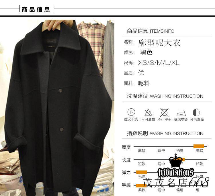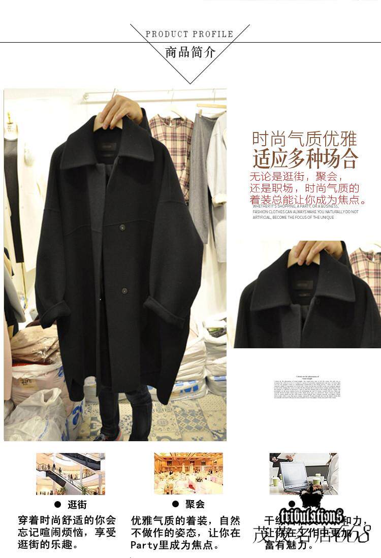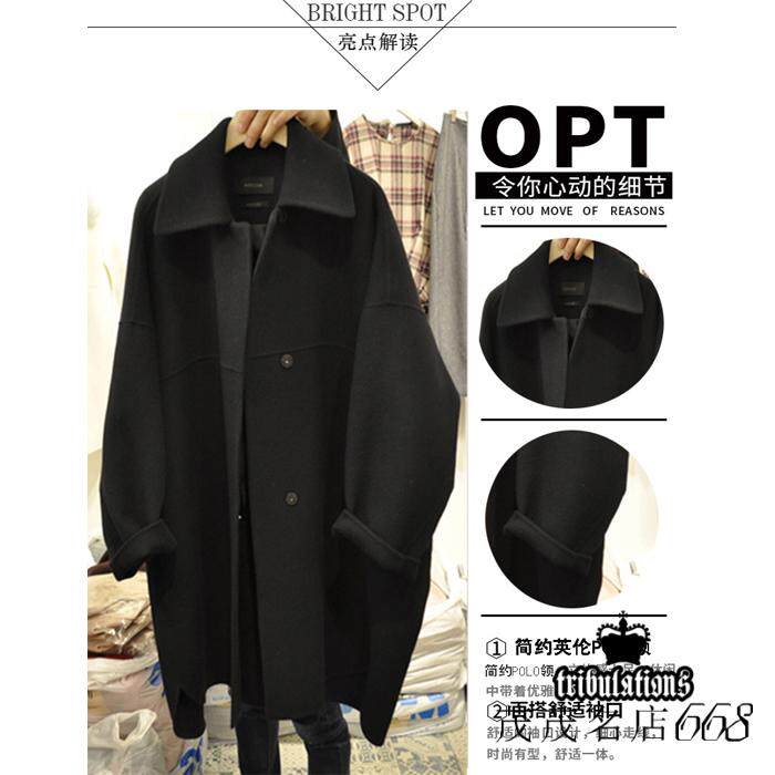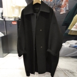 Черное шерстяное пальто, длинная куртка, в корейском стиле, 2023 уп., оверсайз, средней длины