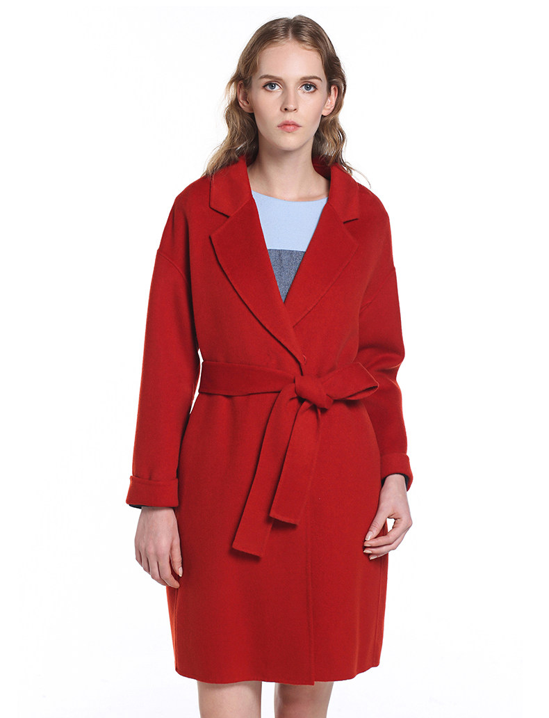 Осенний ремень, шерстяное шерстяное пальто, простой и элегантный дизайн, облегающий крой