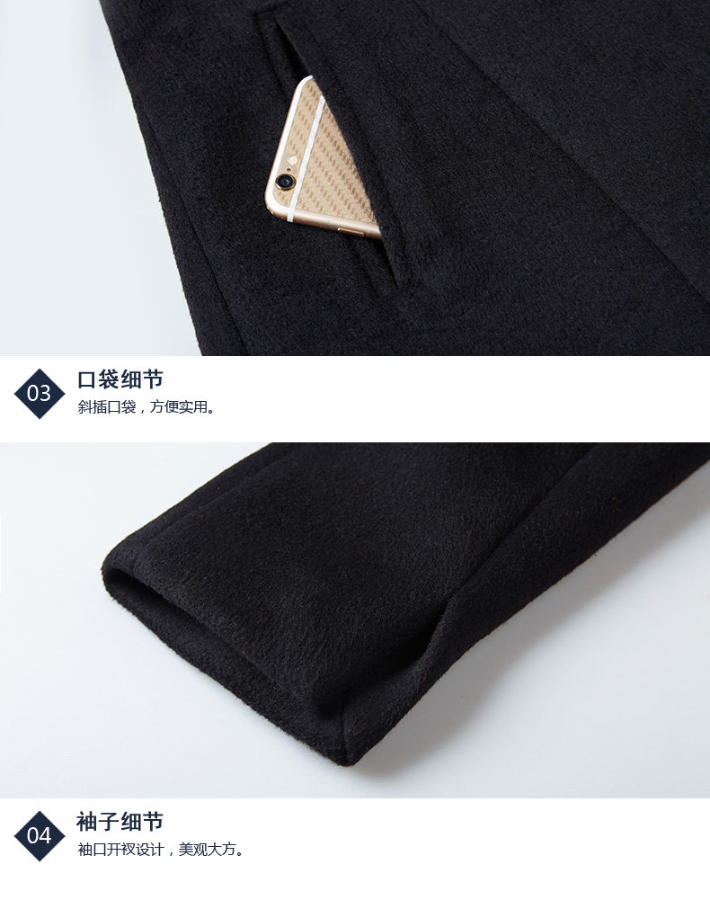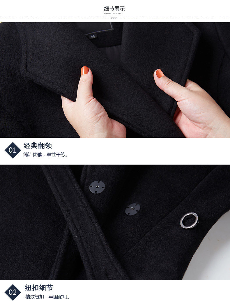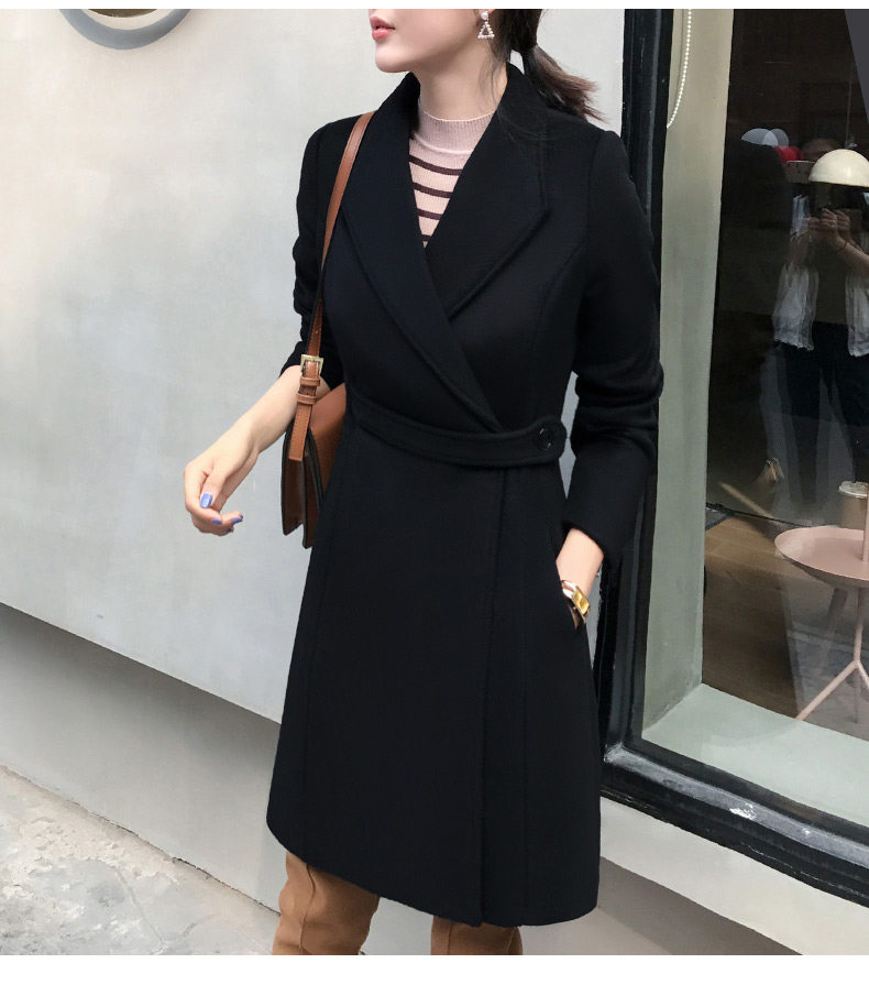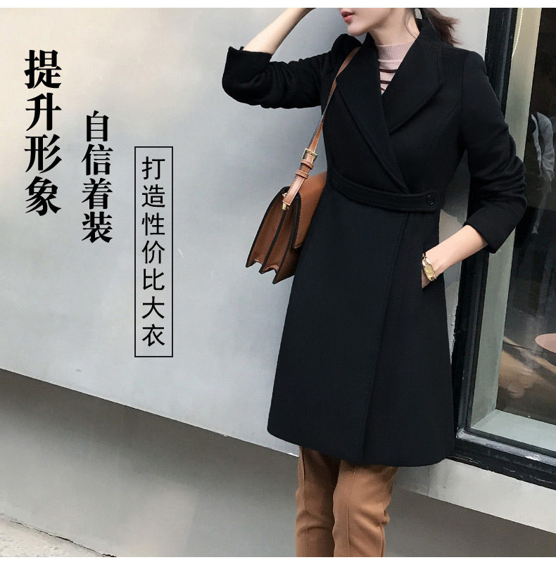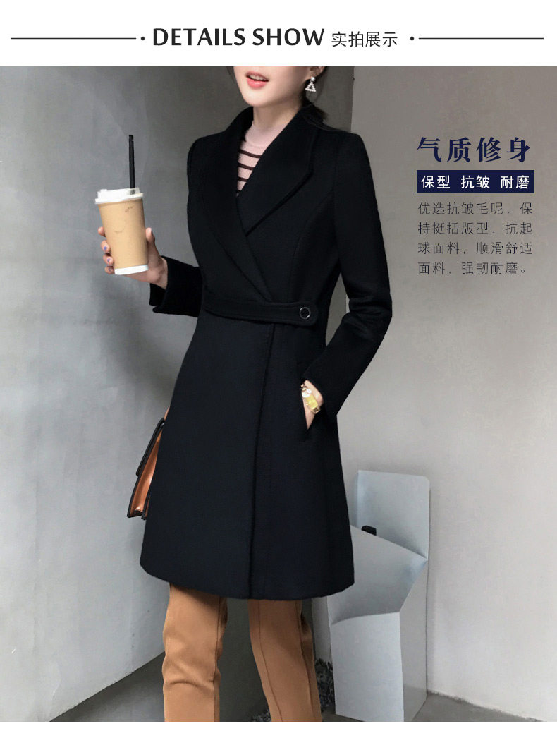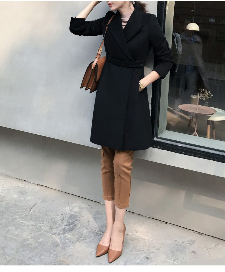 Длинное шерстяное пальто, зимняя черная куртка для работы, средней длины, увеличенная толщина, облегающий крой