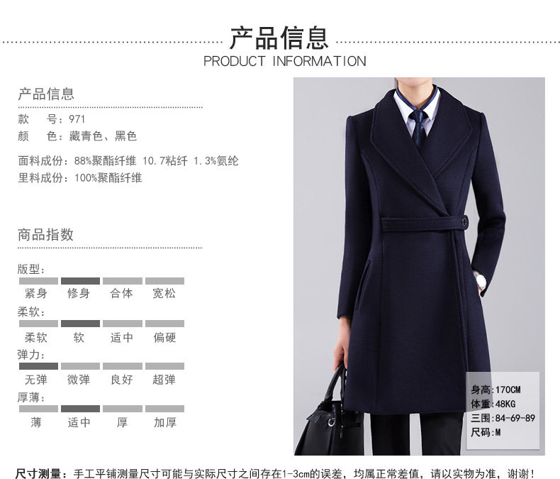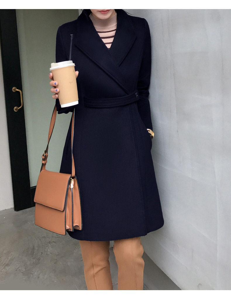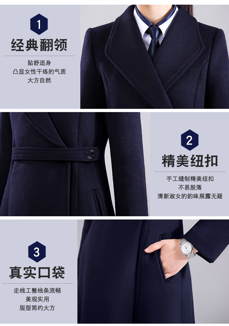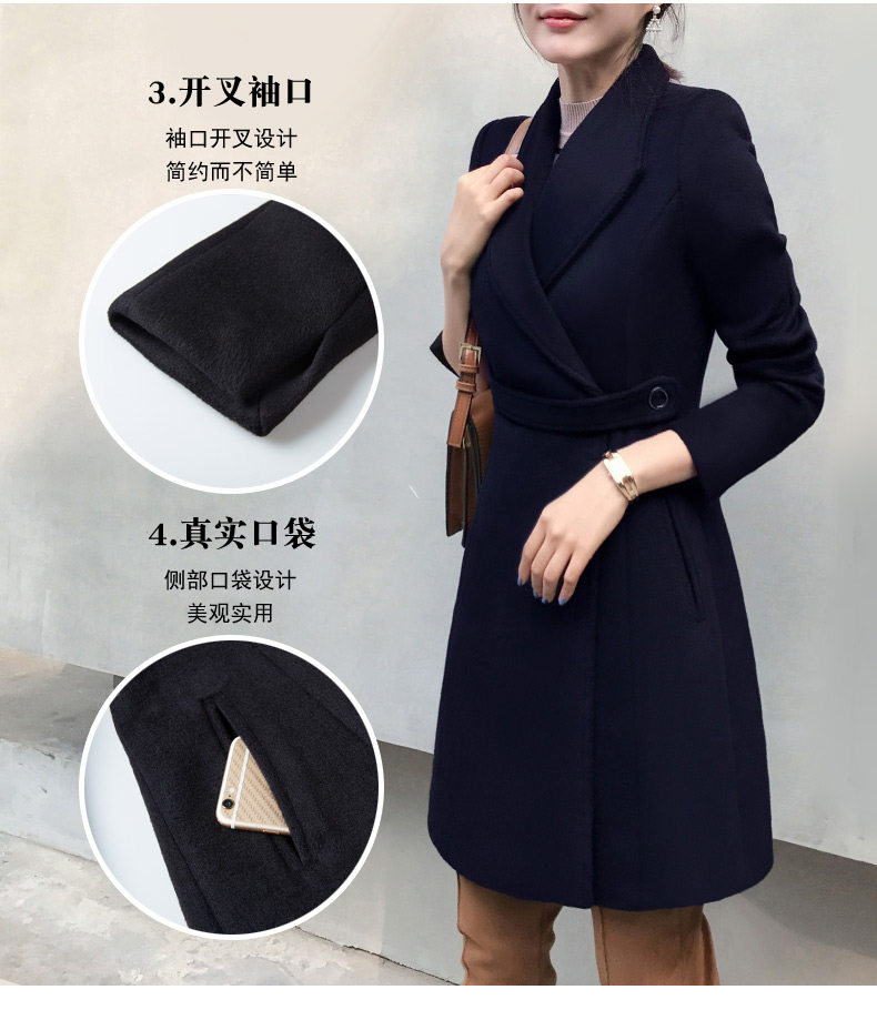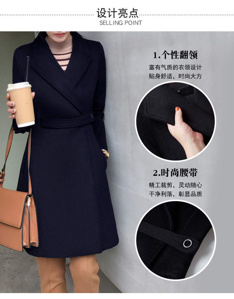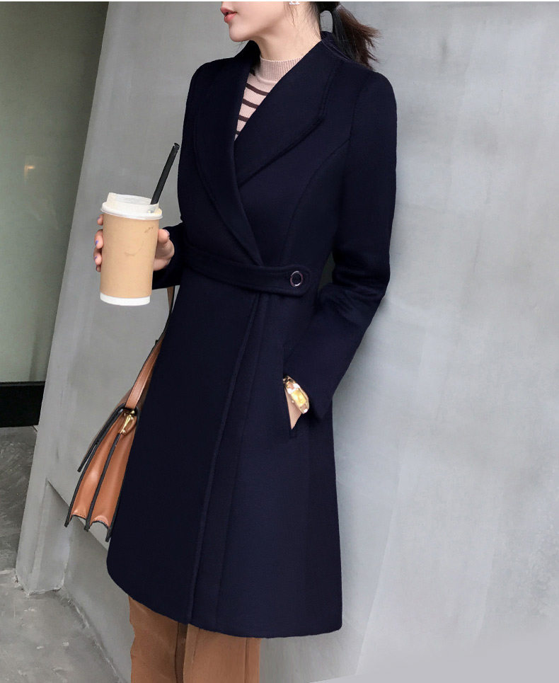 Длинное шерстяное пальто, зимняя черная куртка для работы, средней длины, увеличенная толщина, облегающий крой