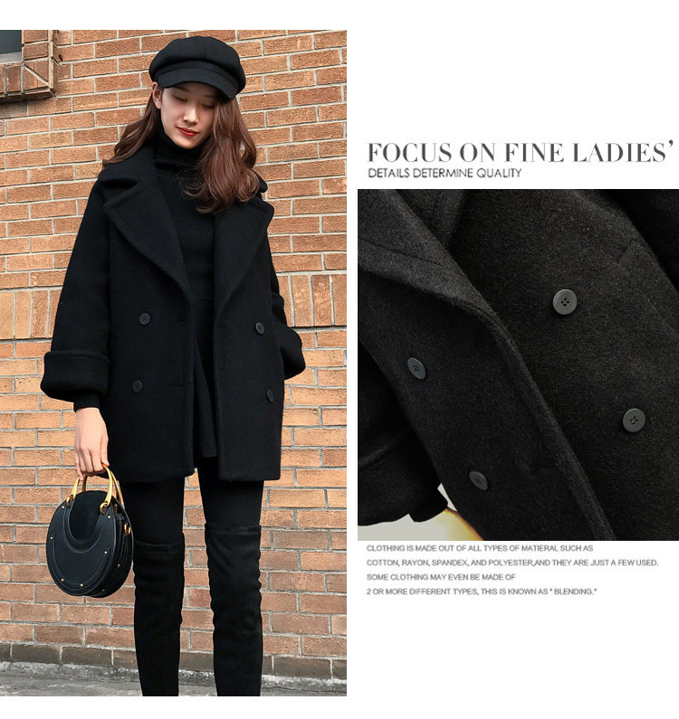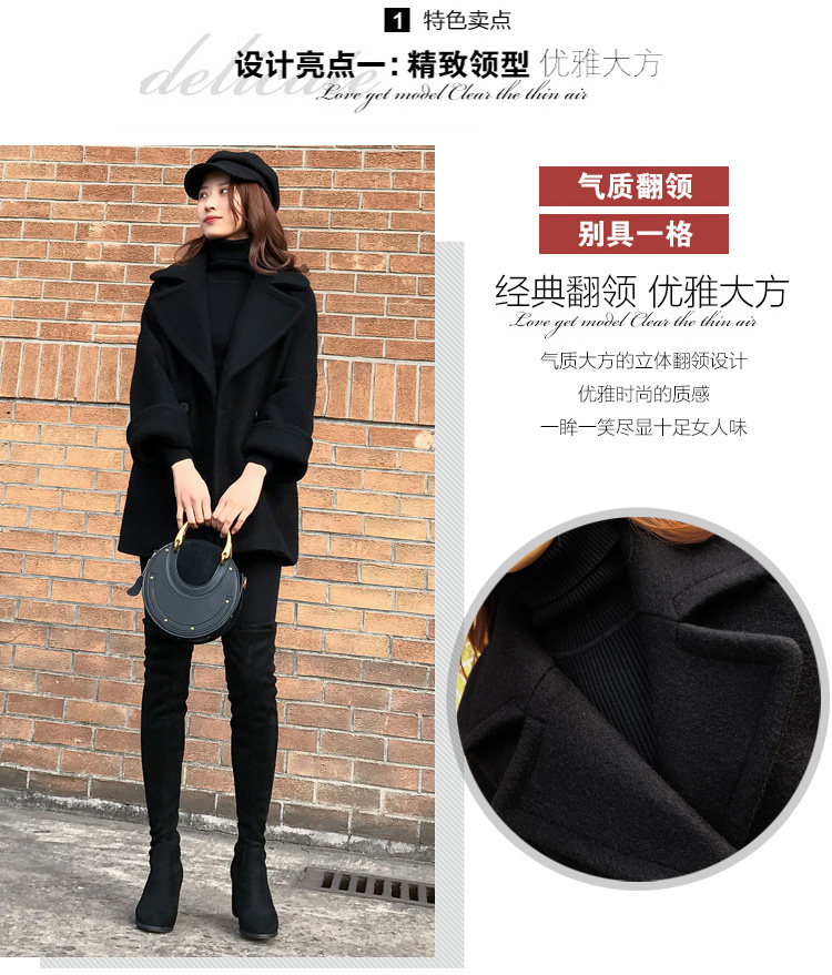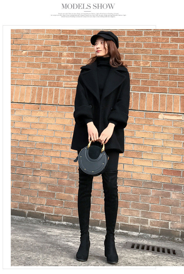 Длинное черное шерстяное пальто, куртка, в корейском стиле, средней длины
