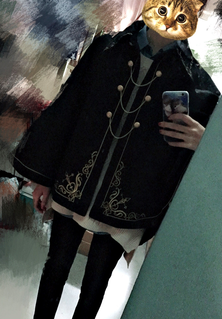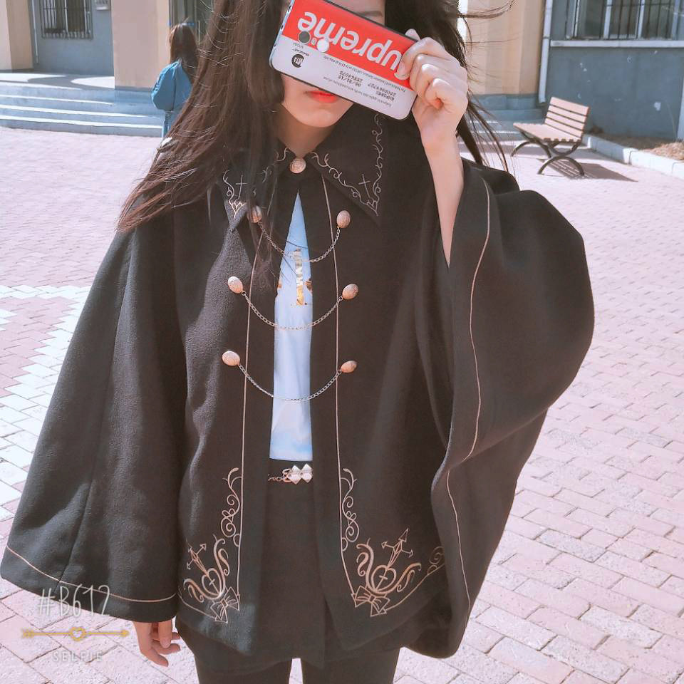 Японский шерстяной плащ, пальто, с вышивкой, увеличенная толщина