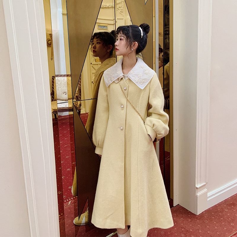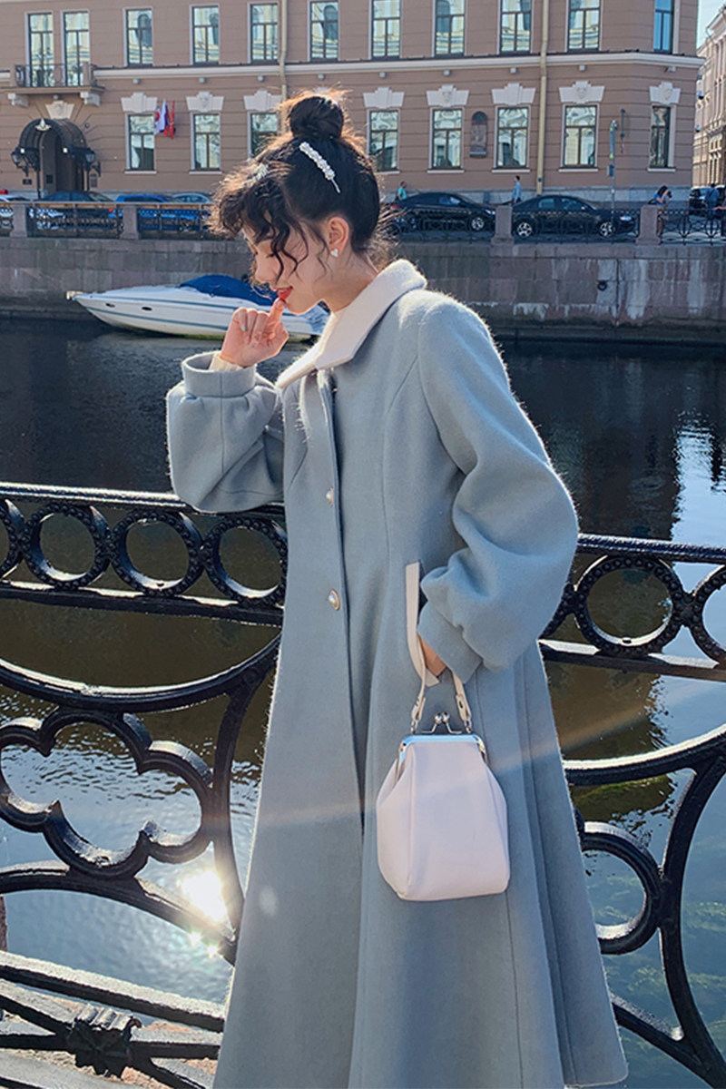 Приталенный корсет, ретро куртка, зимнее длинное шерстяное пальто, квадратный вырез, средней длины