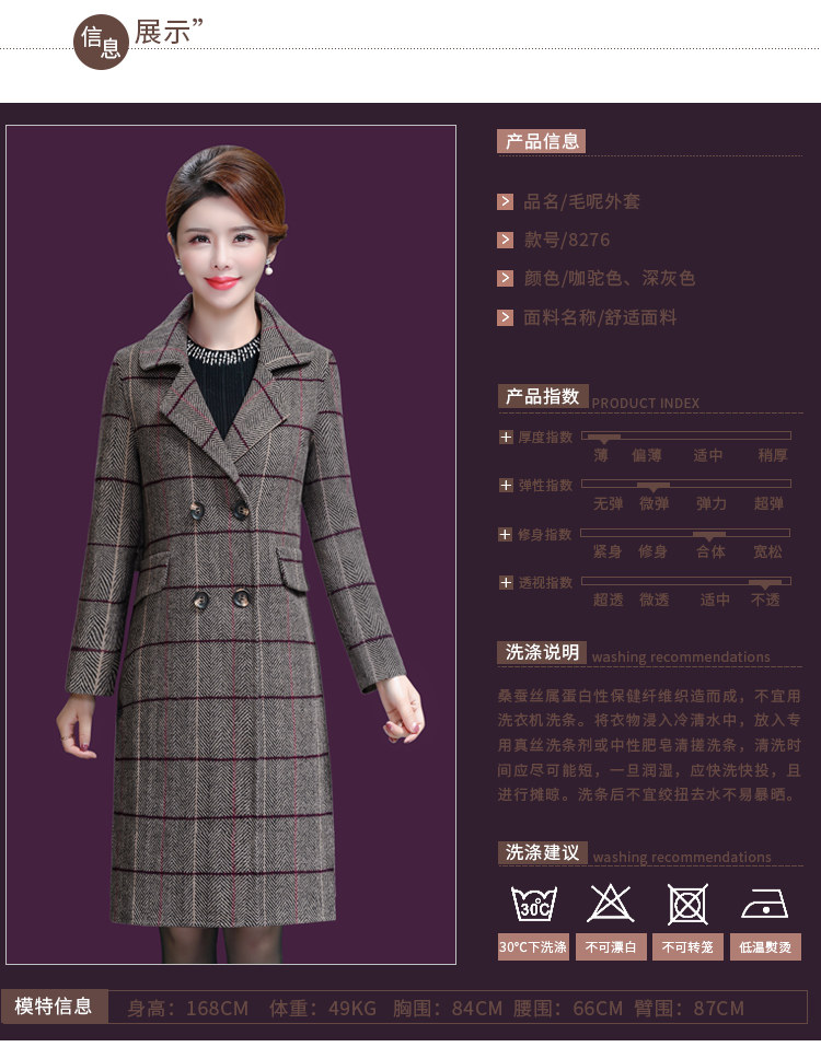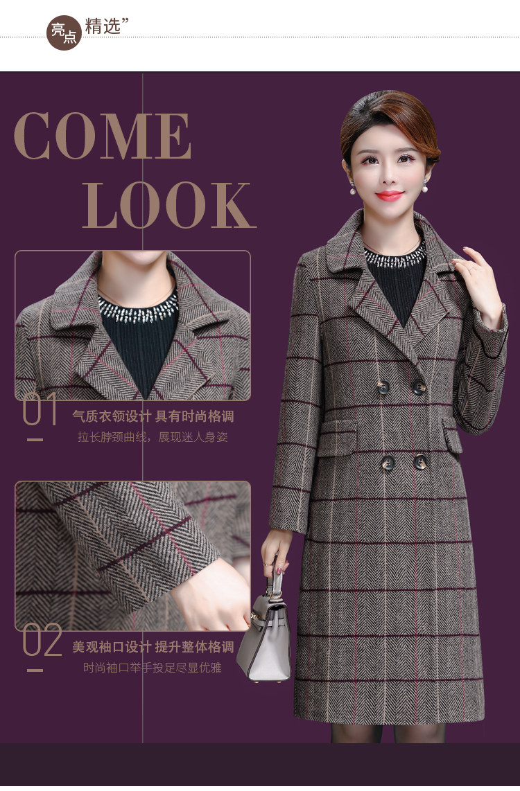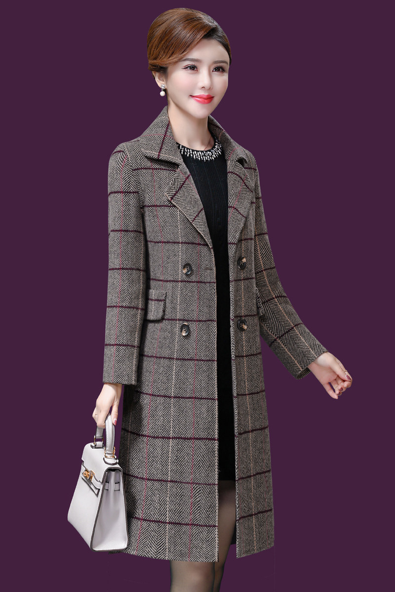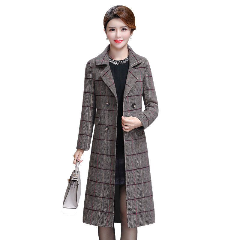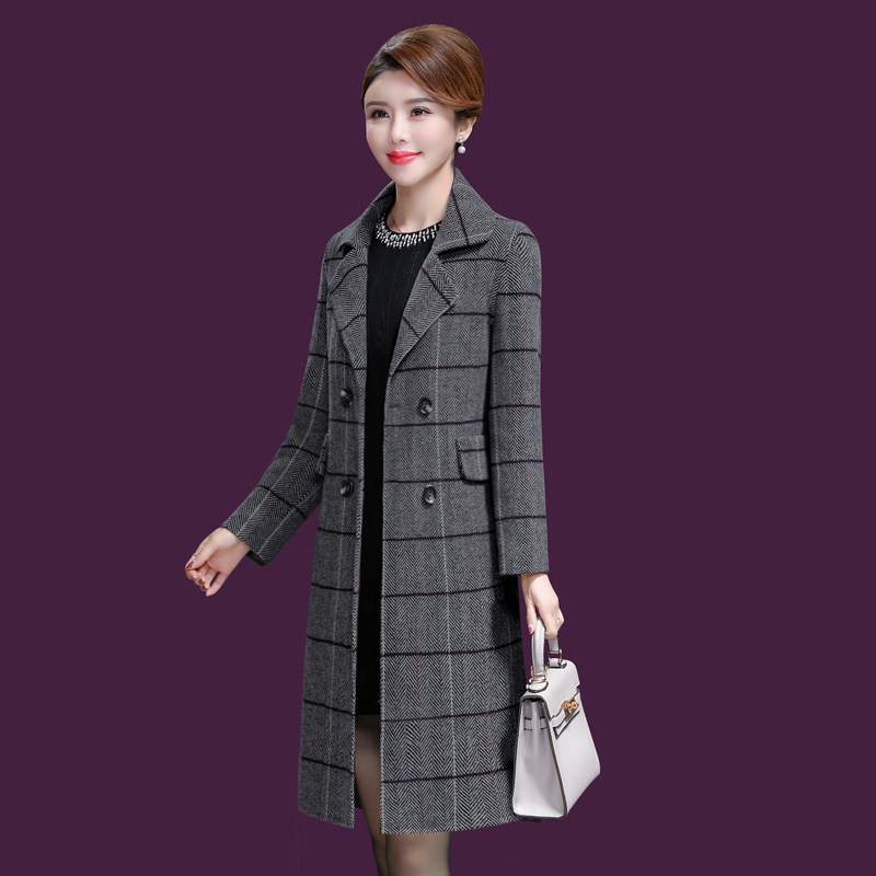 Осеннее демисезонное шерстяное пальто для матери для отдыха, для среднего возраста, 2019, большой размер