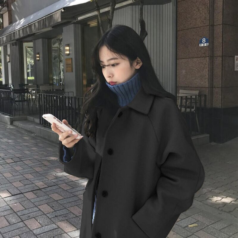 Шерстяное пальто, длинная демисезонная куртка для школьников и студентов, средней длины, в корейском стиле, популярно в интернете, увеличенная толщина