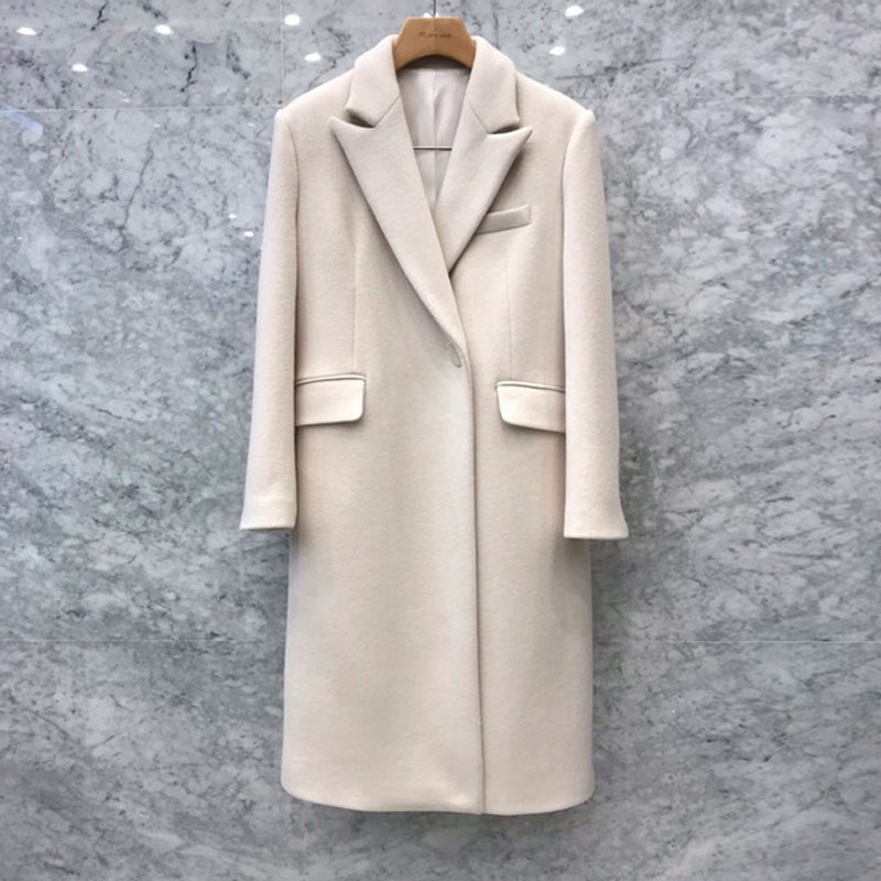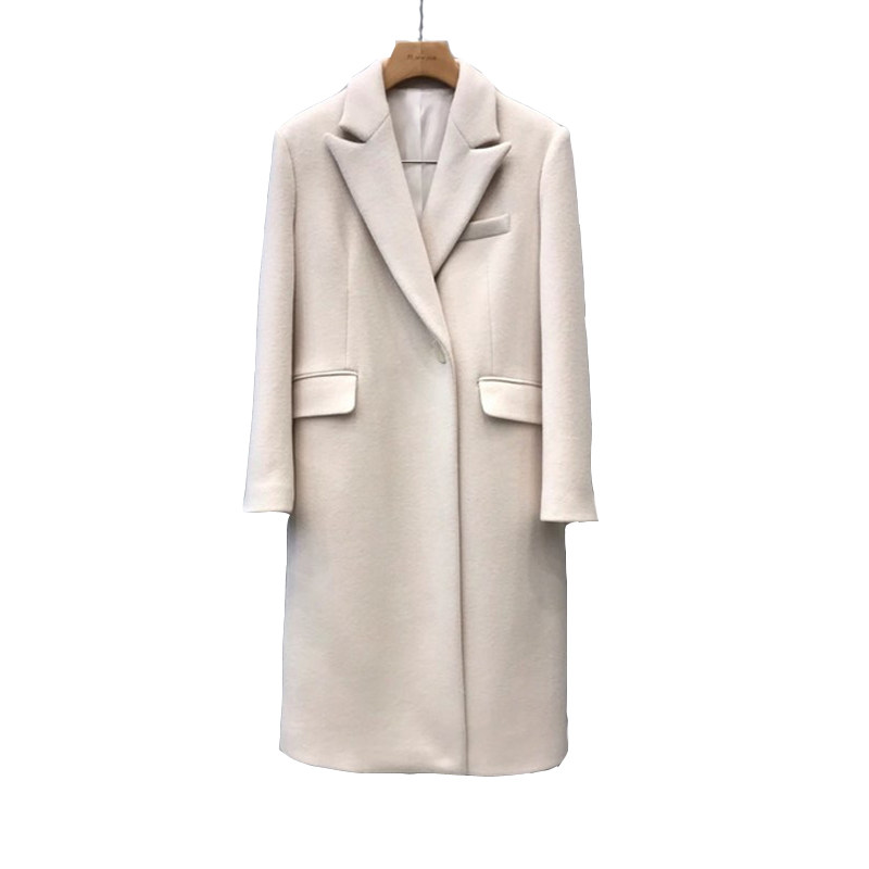 Бежевое шерстяное пальто, длинная куртка, 2020, в корейском стиле, оверсайз, увеличенная толщина, средней длины