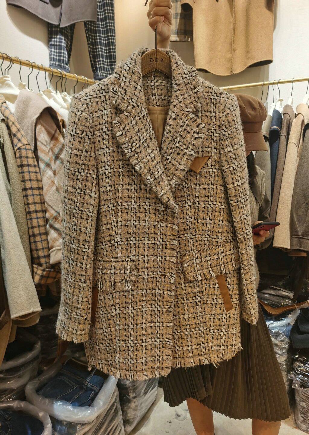 Южнокорейский зимний товар, шерстяной пиджак классического кроя, 2020, в стиле Шанель, увеличенная толщина