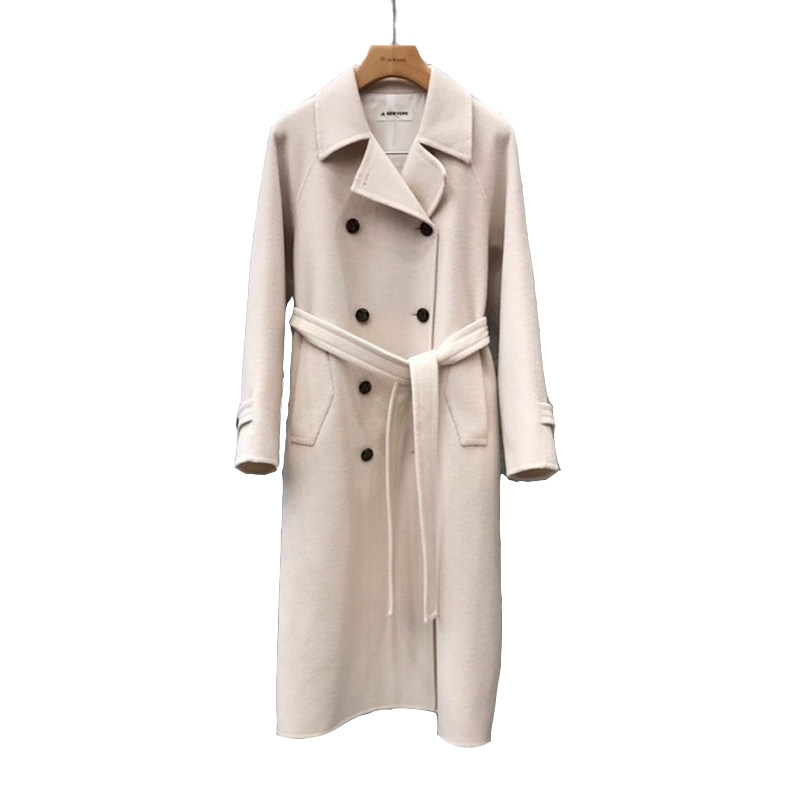 Белое шерстяное пальто, длинная зимняя куртка, средней длины, 2020, в корейском стиле, увеличенная толщина