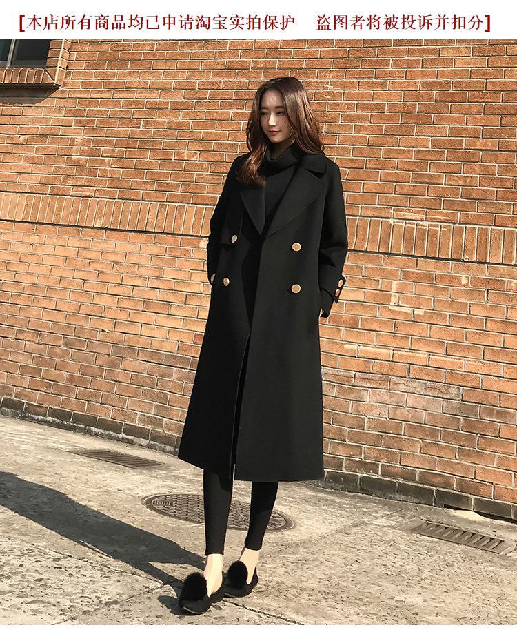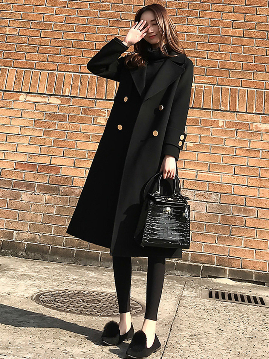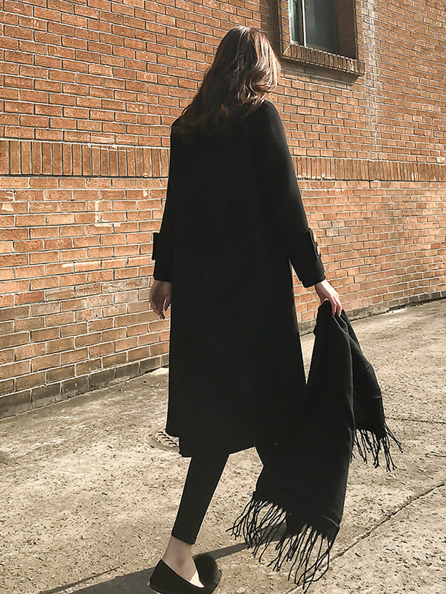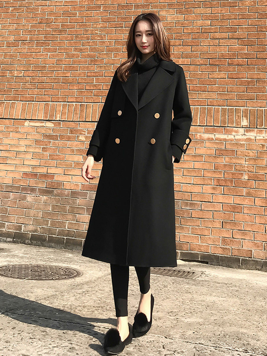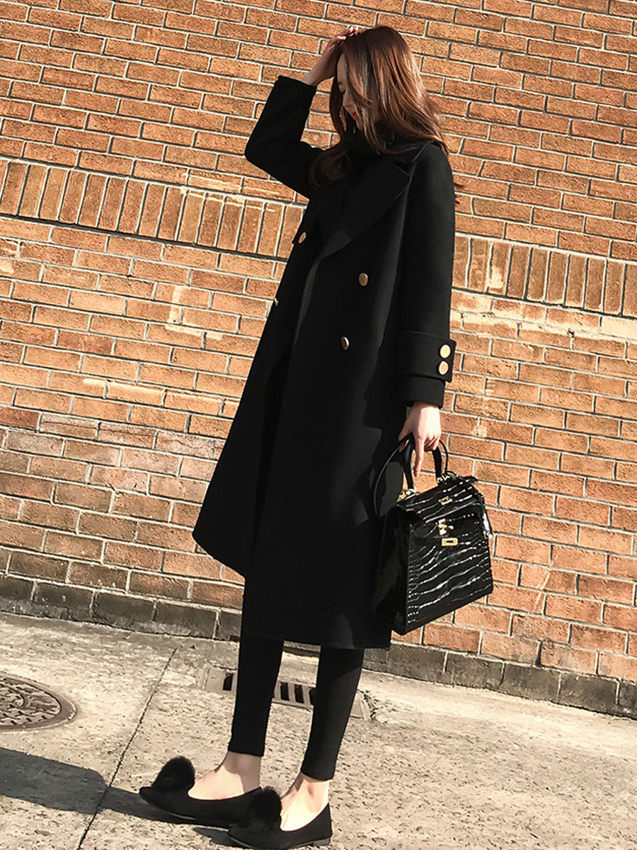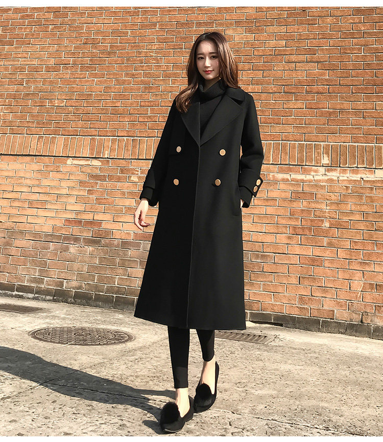 Демисезонное шерстяное пальто, длинная черная куртка, в корейском стиле, средней длины