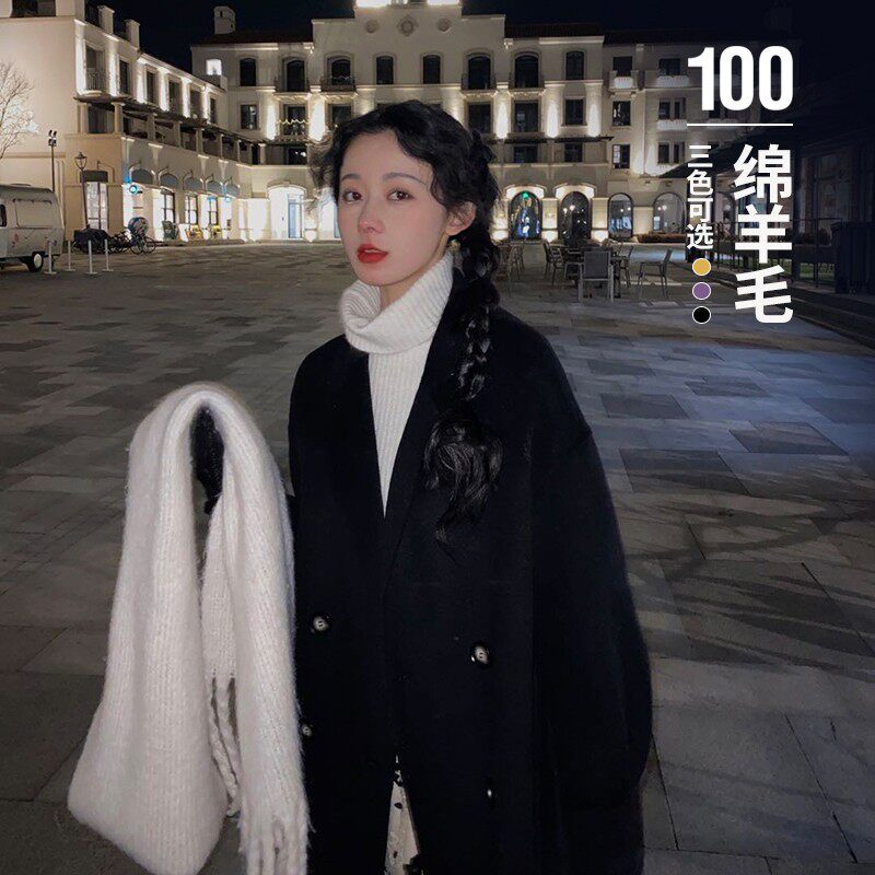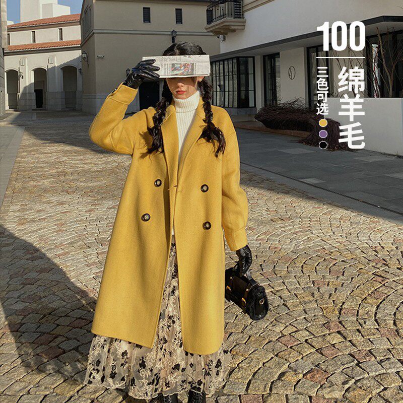Шерстяное двусторонное шерстяное пальто, свободный крой