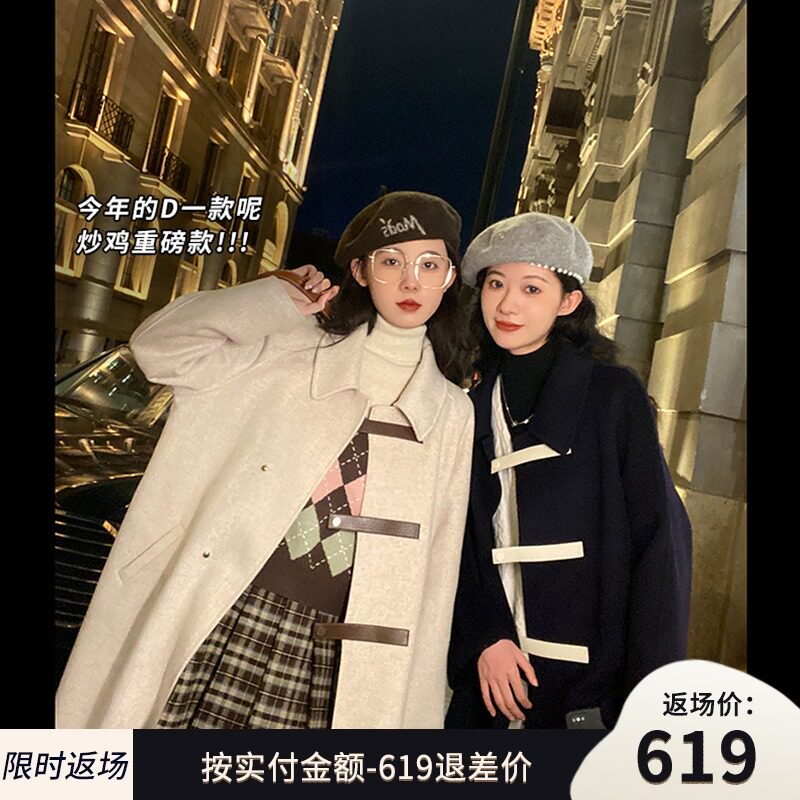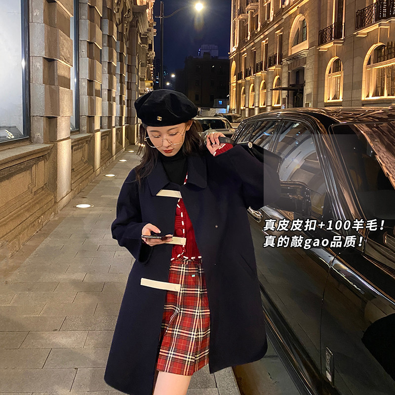 Шерстяное двусторонное шерстяное пальто, из натуральной кожи