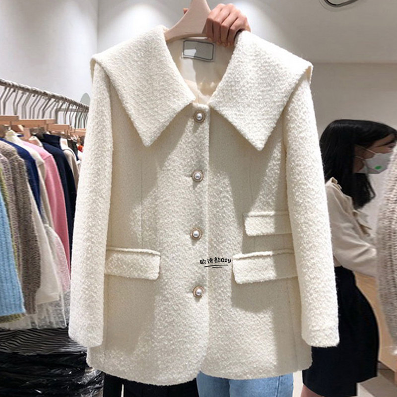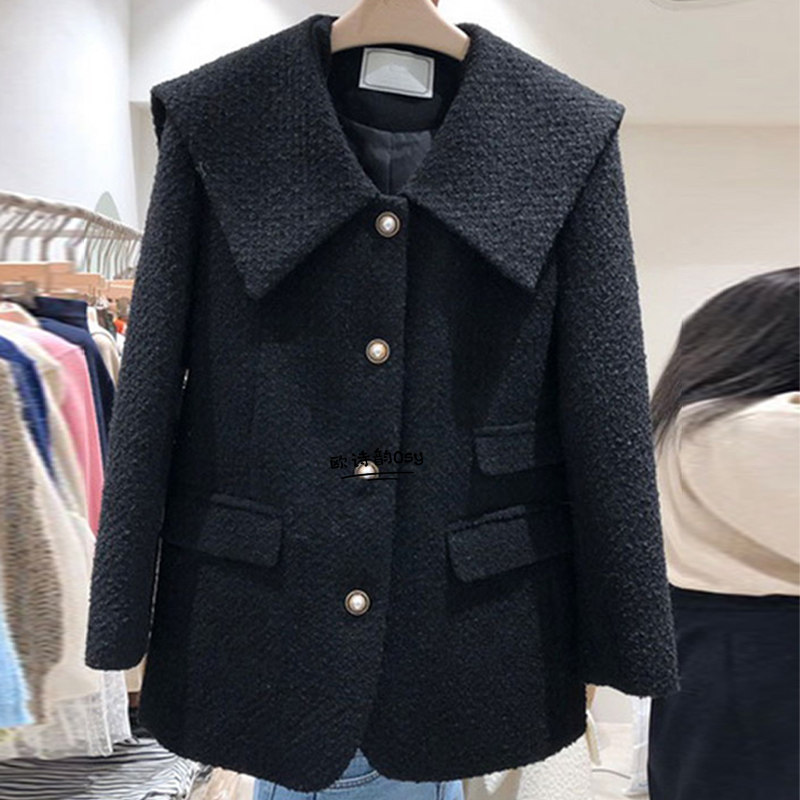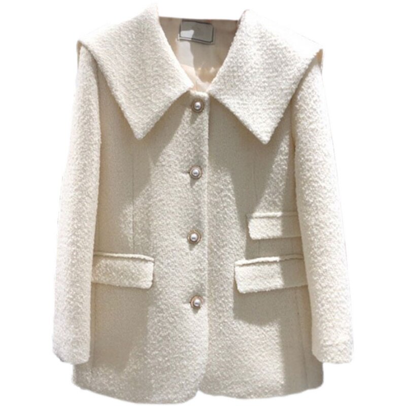 Военно-морское шерстяное пальто, демисезонная модная куртка, в корейском стиле, в стиле Шанель