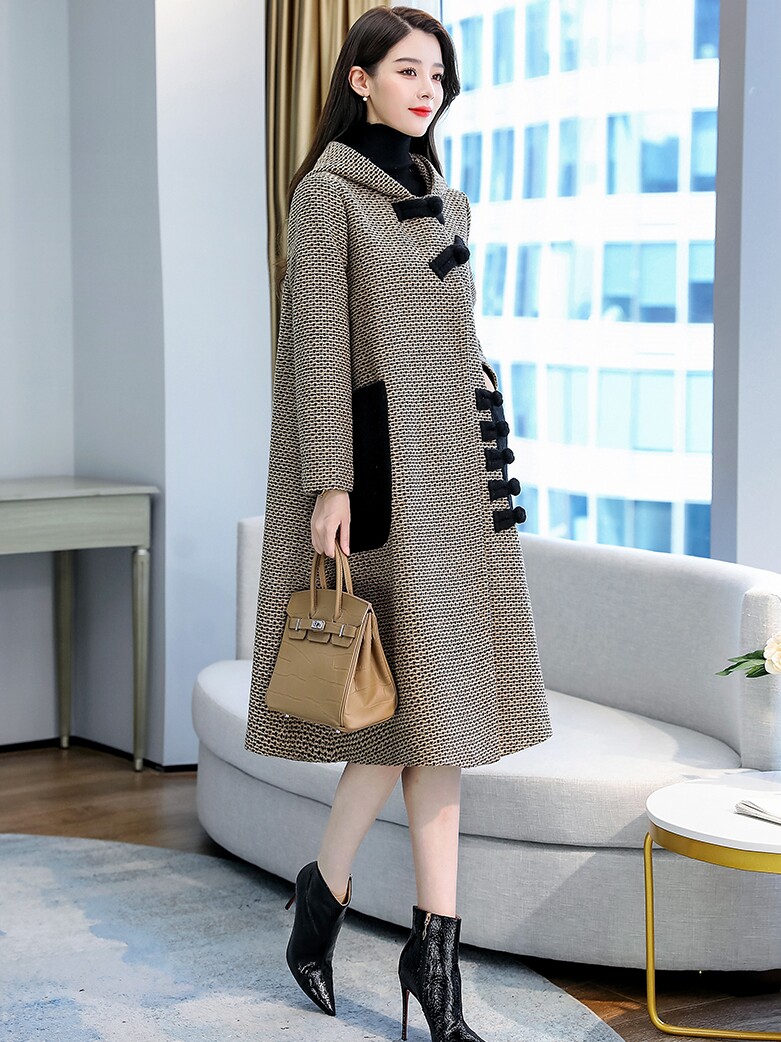 Шерстяное пальто, длинная демисезонная куртка, в стиле Шанель, средней длины, изысканный стиль