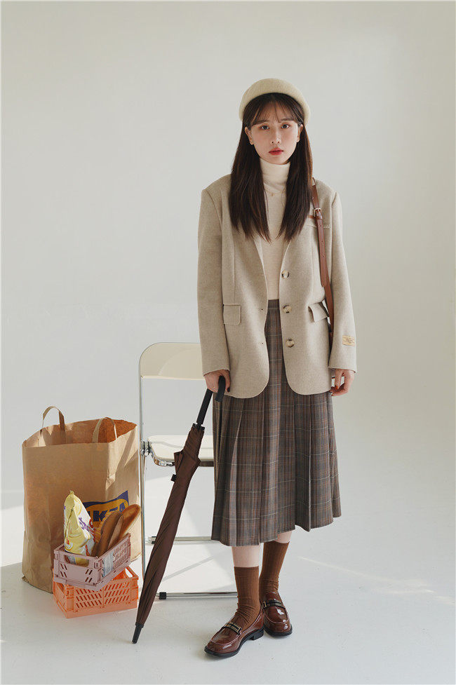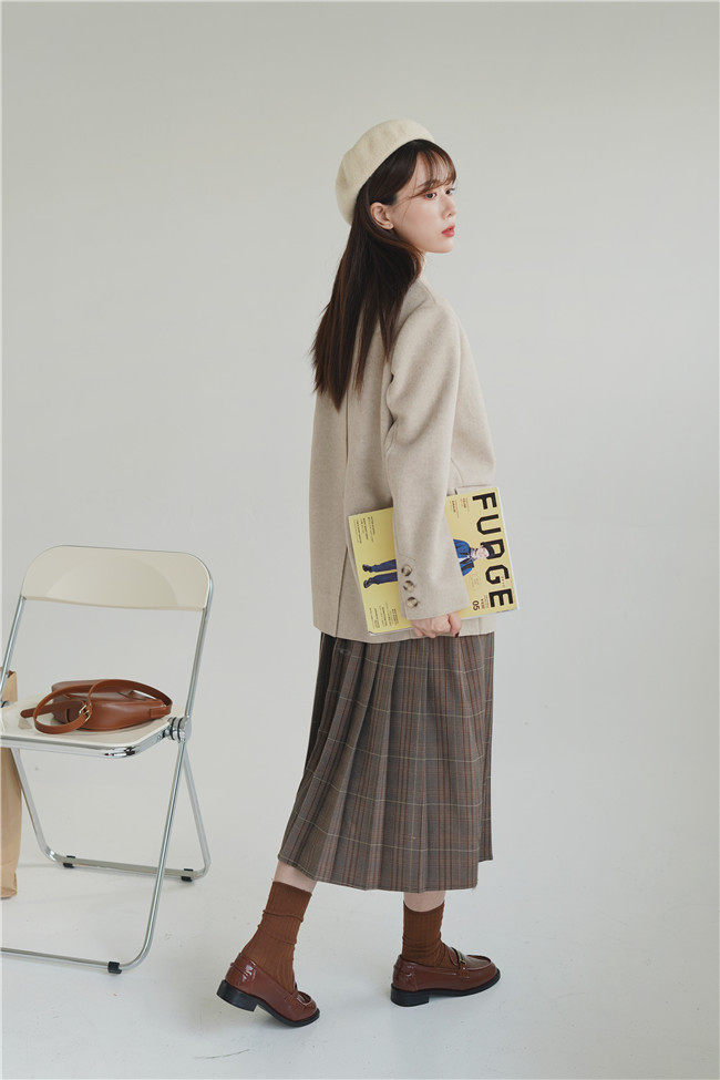 Костюм, демисезонное шерстяное пальто, двусторонная японская школьная юбка
