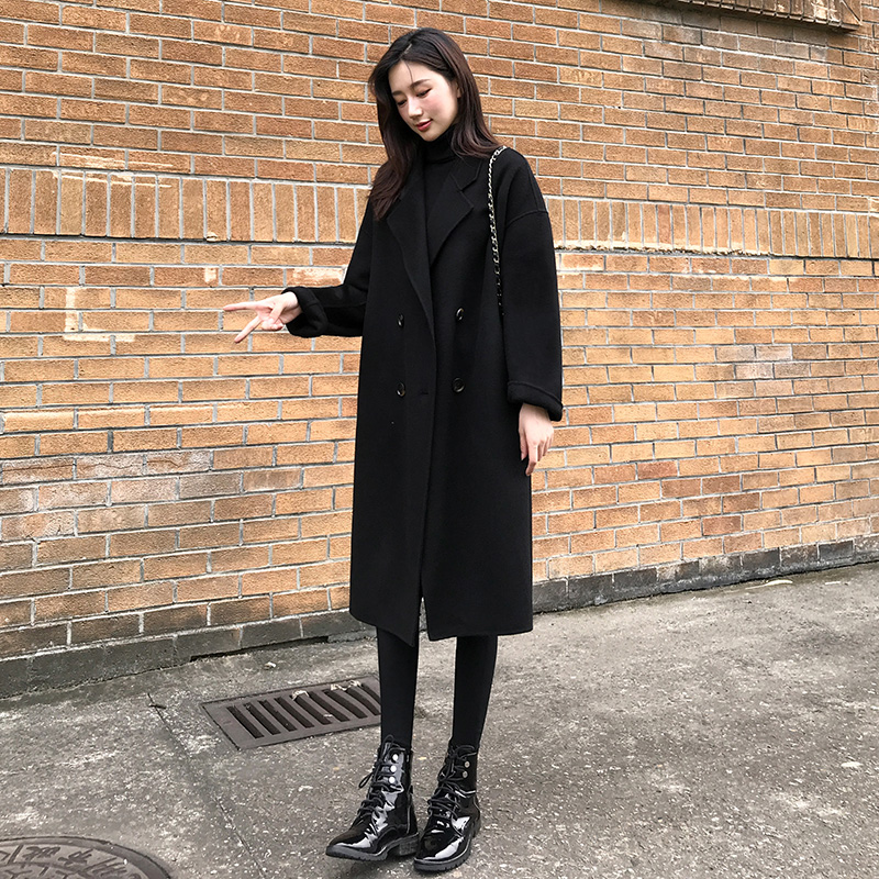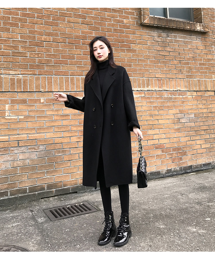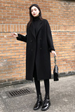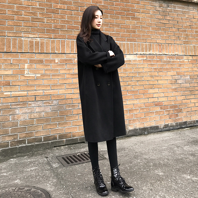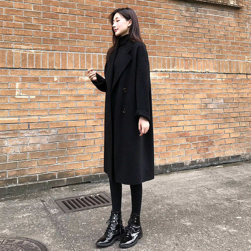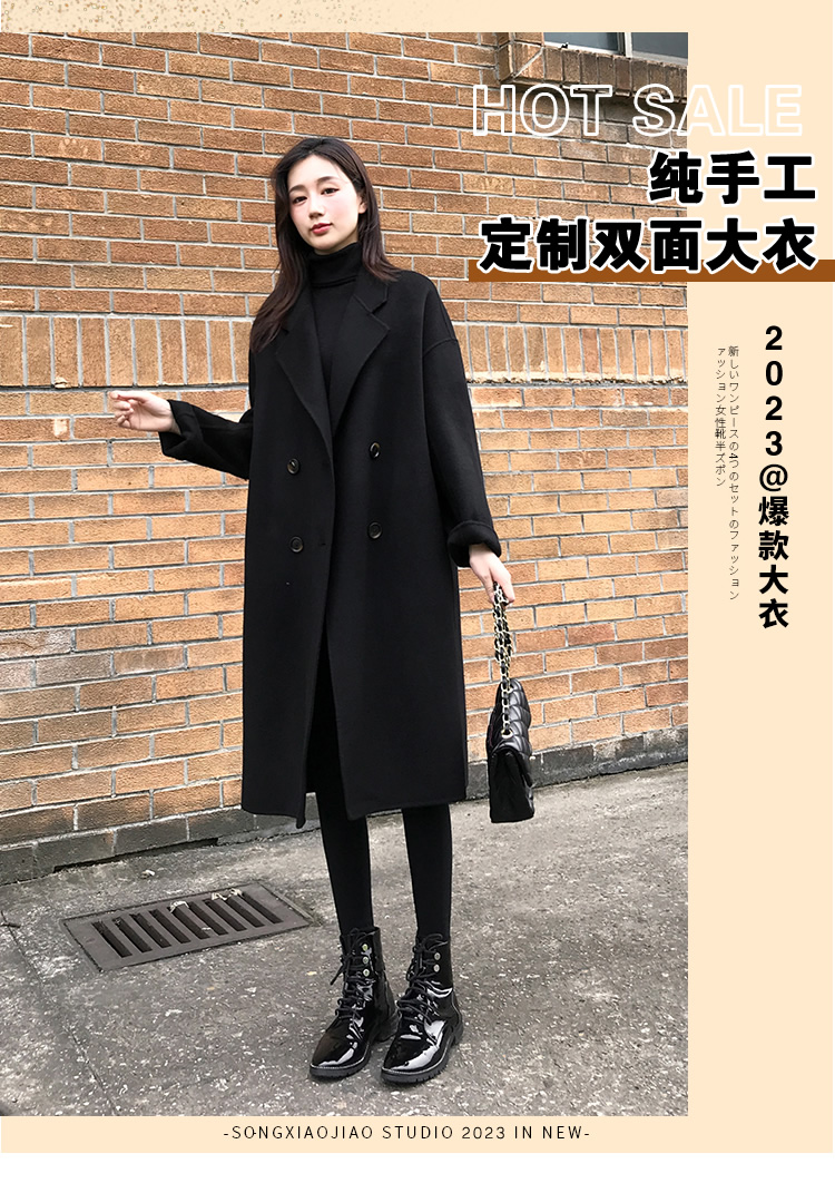 Демисезонное черное двусторонное кашемировое длинное шерстяное пальто, средней длины, 2023 года, в корейском стиле