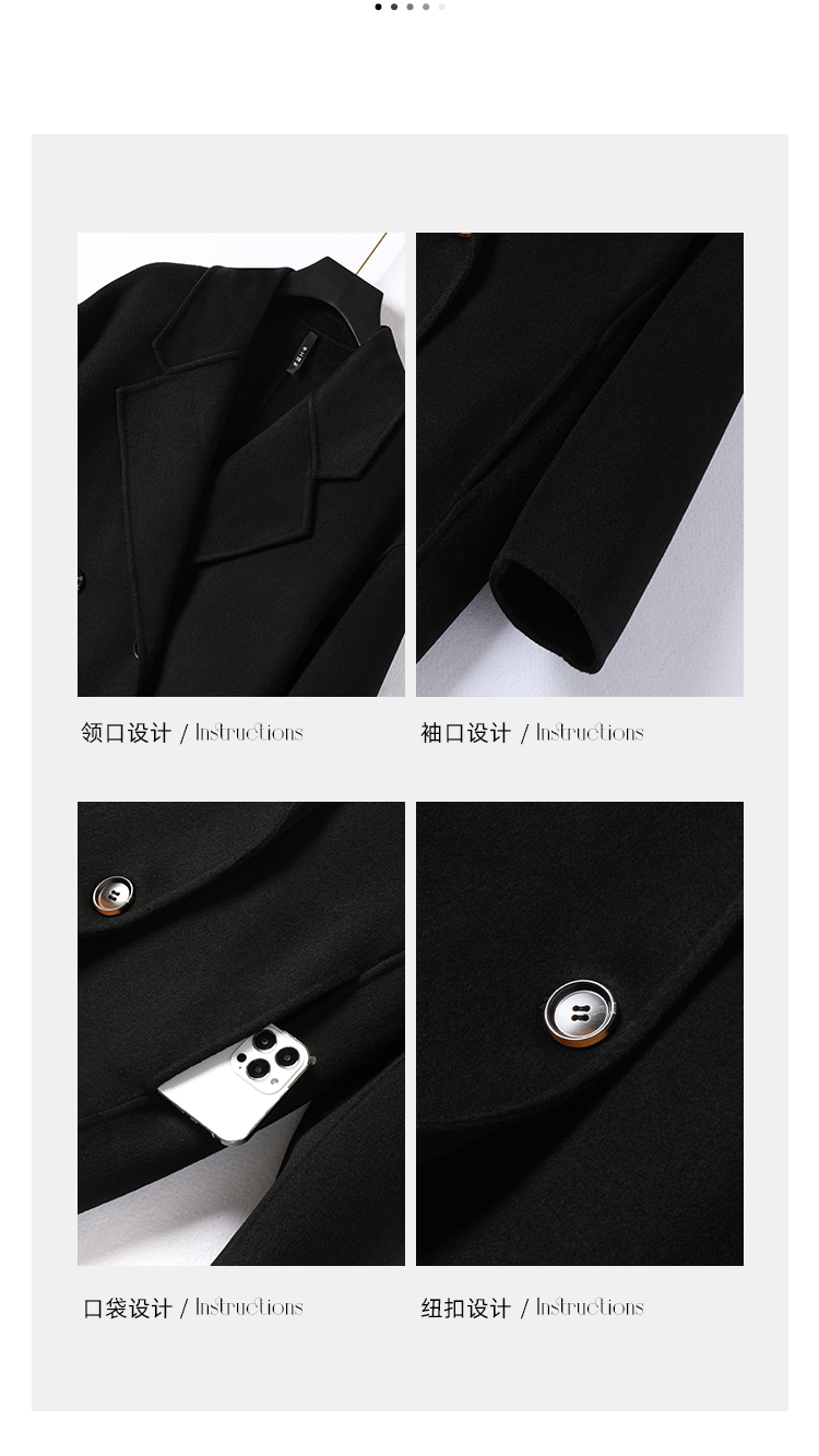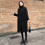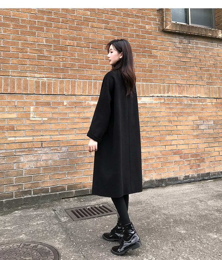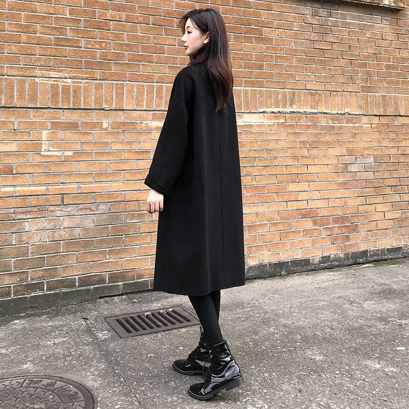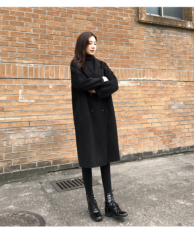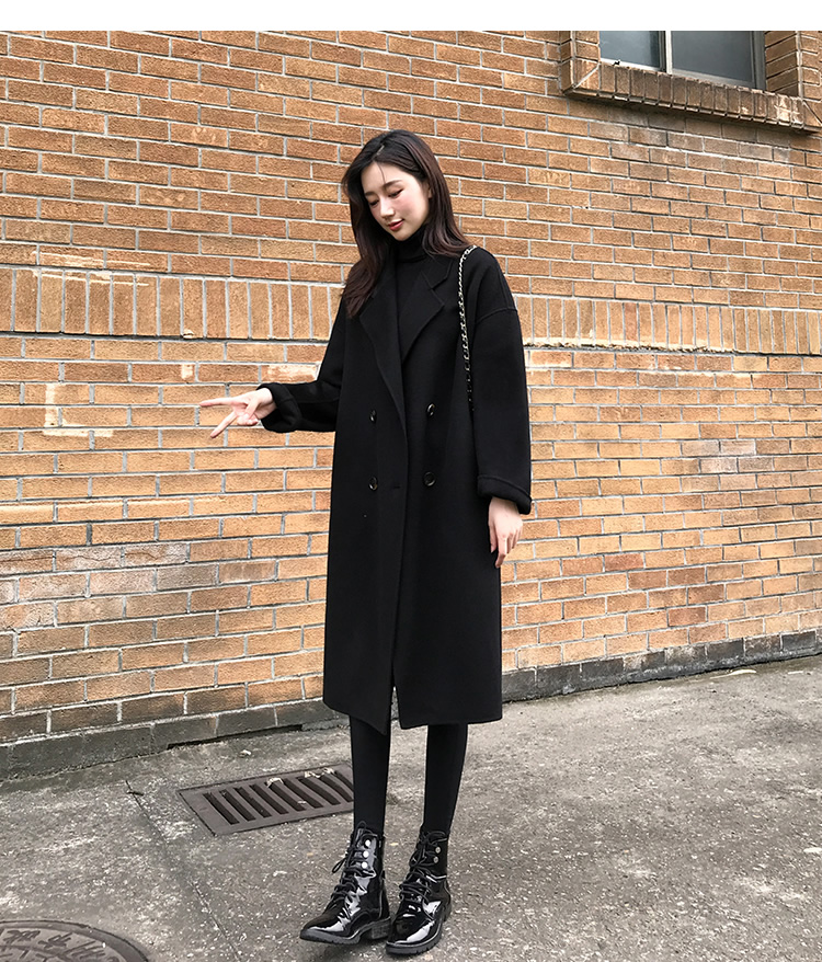 Демисезонное черное двусторонное кашемировое длинное шерстяное пальто, средней длины, 2023 года, в корейском стиле