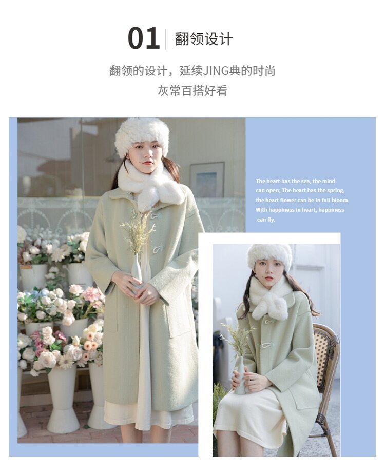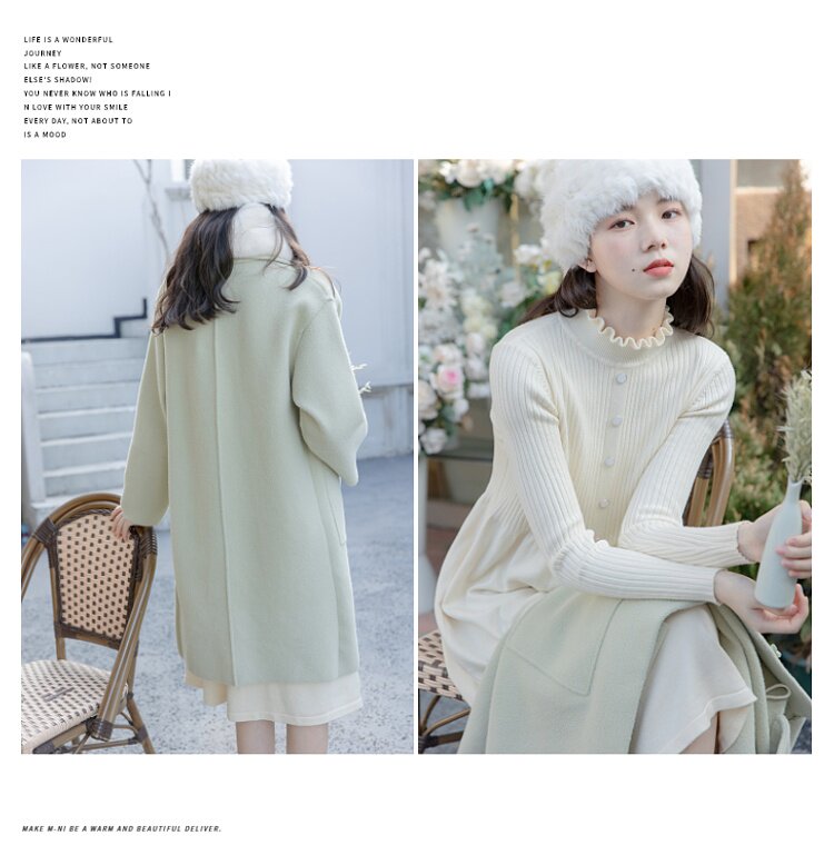 Зеленое шерстяное пальто, демисезонная длинная зимняя куртка, оверсайз, увеличенная толщина, подходит для подростков