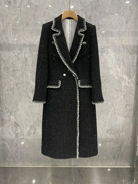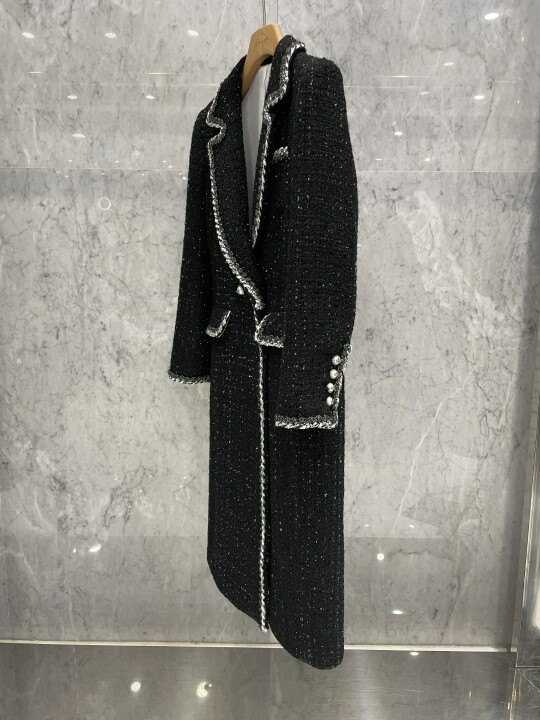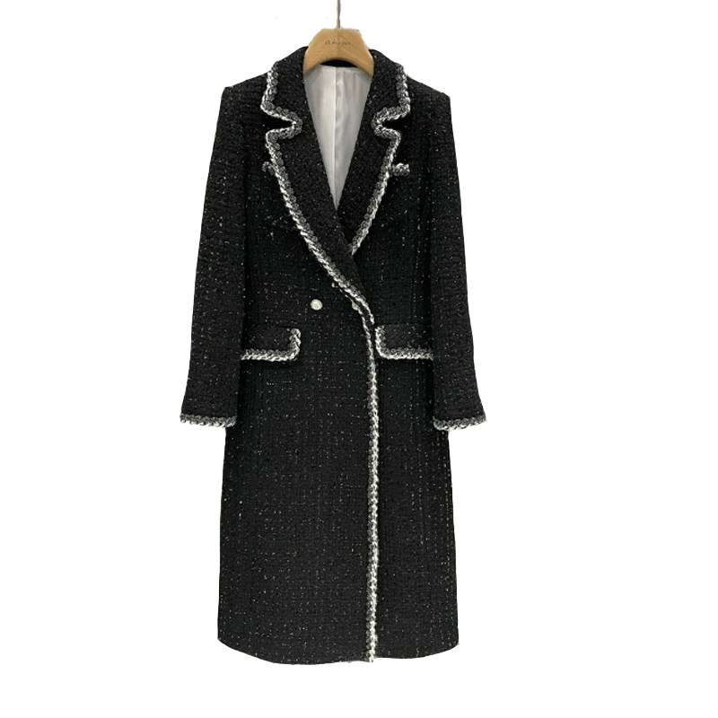 Шерстяное пальто, модная длинная черная куртка, в стиле Шанель, коллекция 2021, в корейском стиле, средней длины