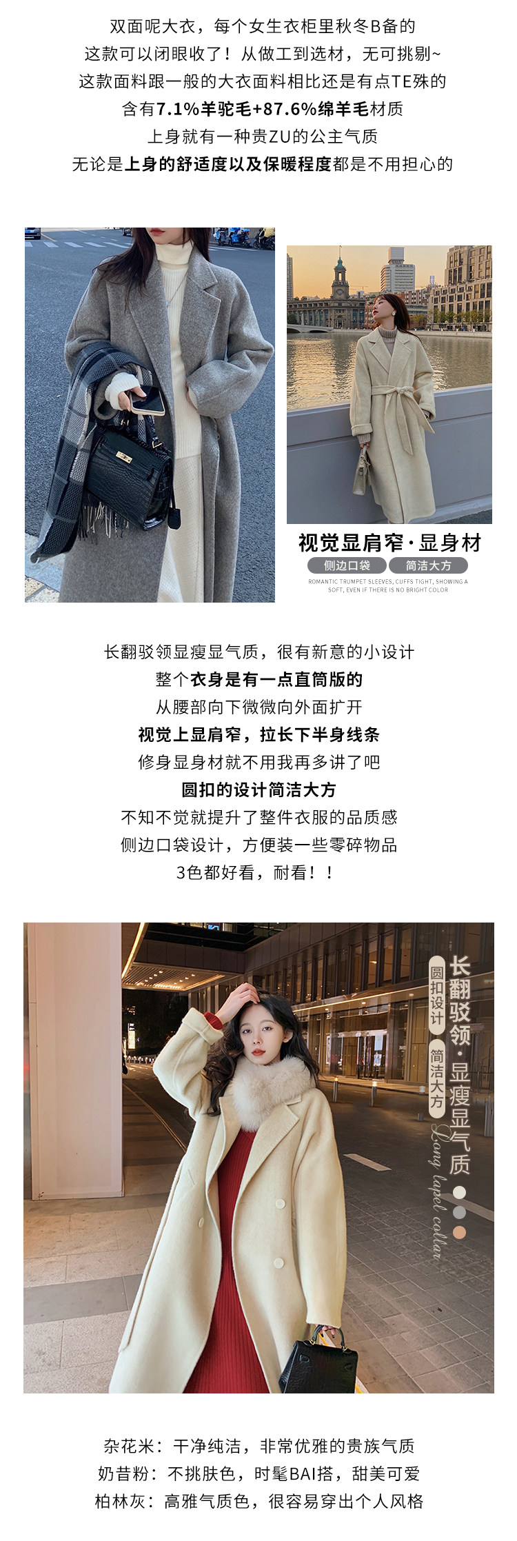Бархатная альпака, двусторонное шерстяное пальто, демисезонная куртка, 2021 года