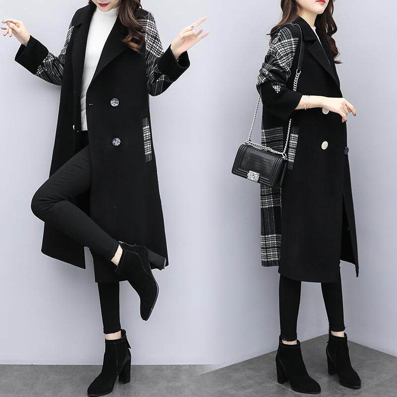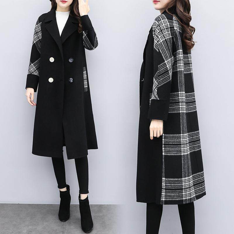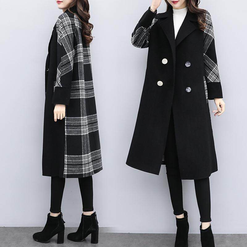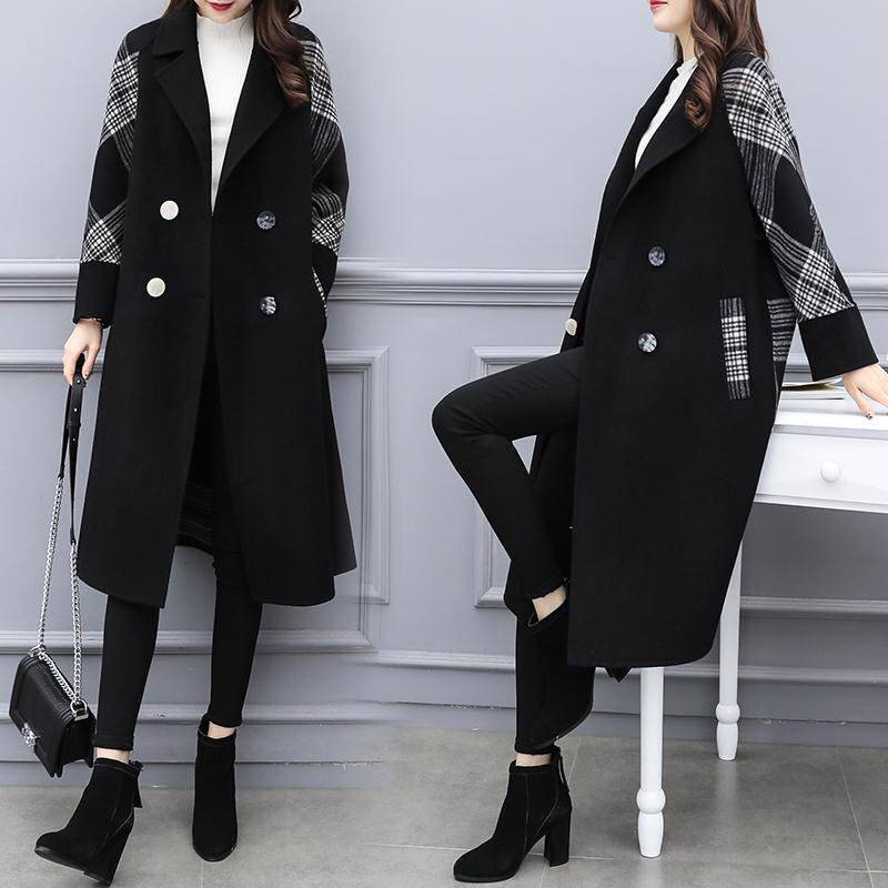 Осеннее шерстяное пальто, черная куртка, коллекция 2022, большой размер