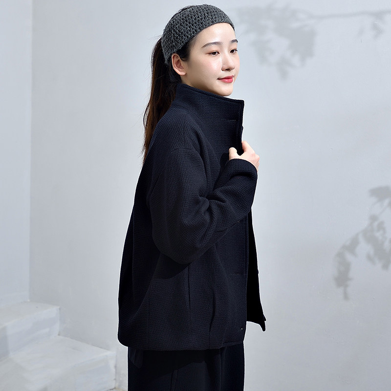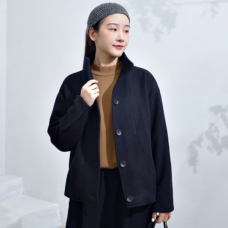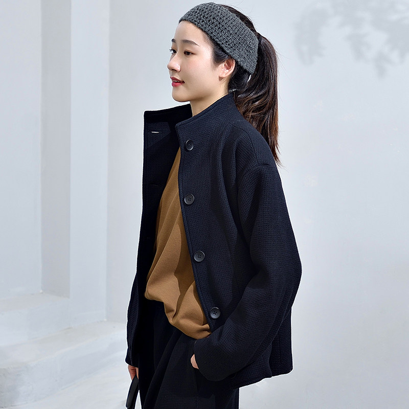 柒白 Демисезонное шерстяное пальто, короткая черная куртка, увеличенная толщина, в стиле Шанель, свободный крой