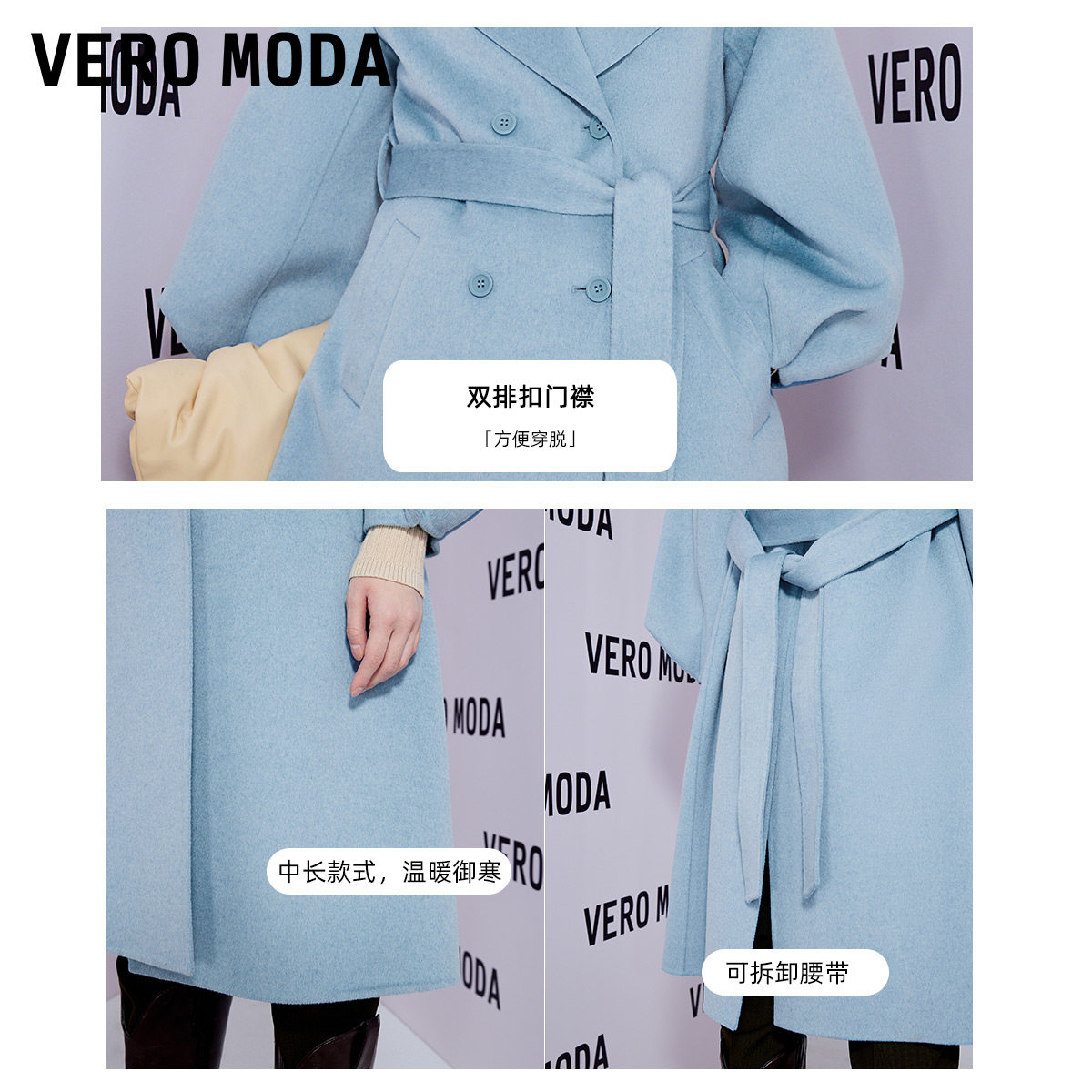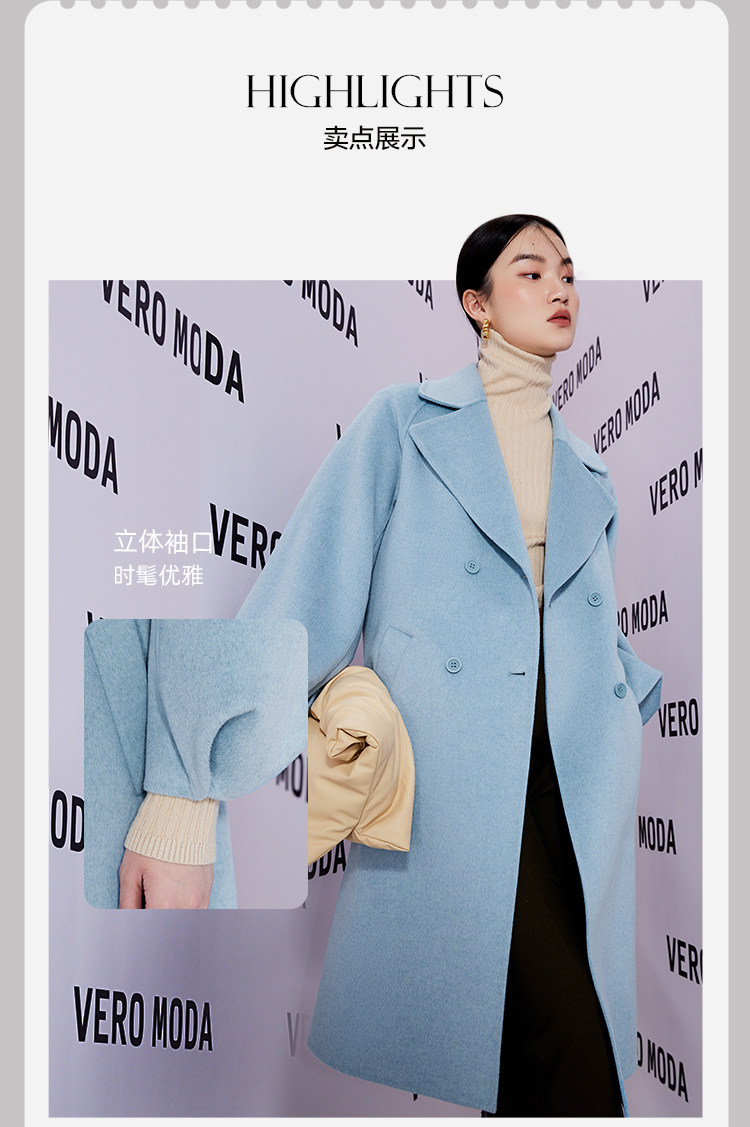 Vero moda, двухрядное шерстяное пальто, фонарь с подсветкой, куртка
