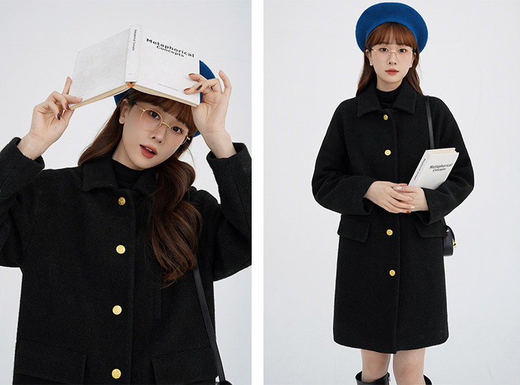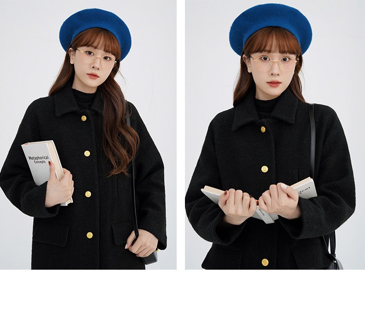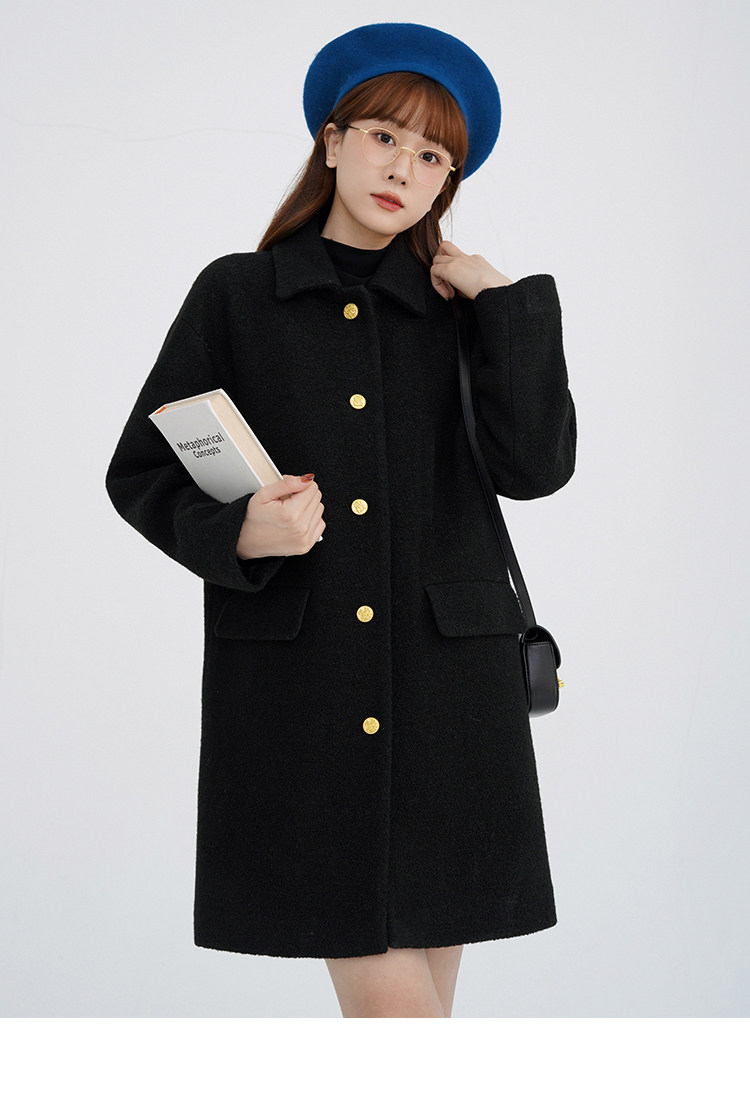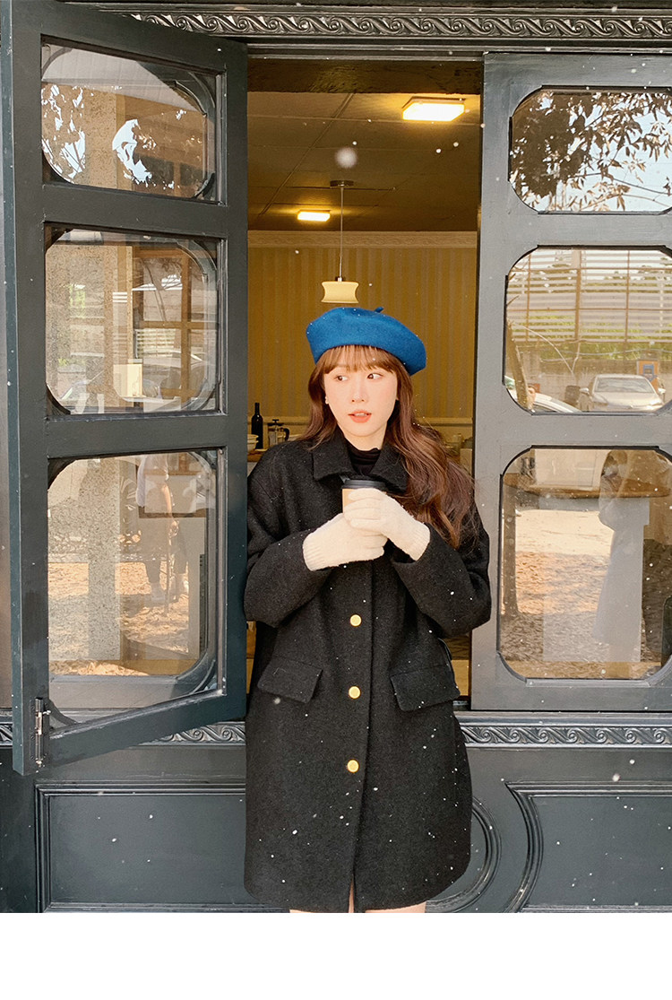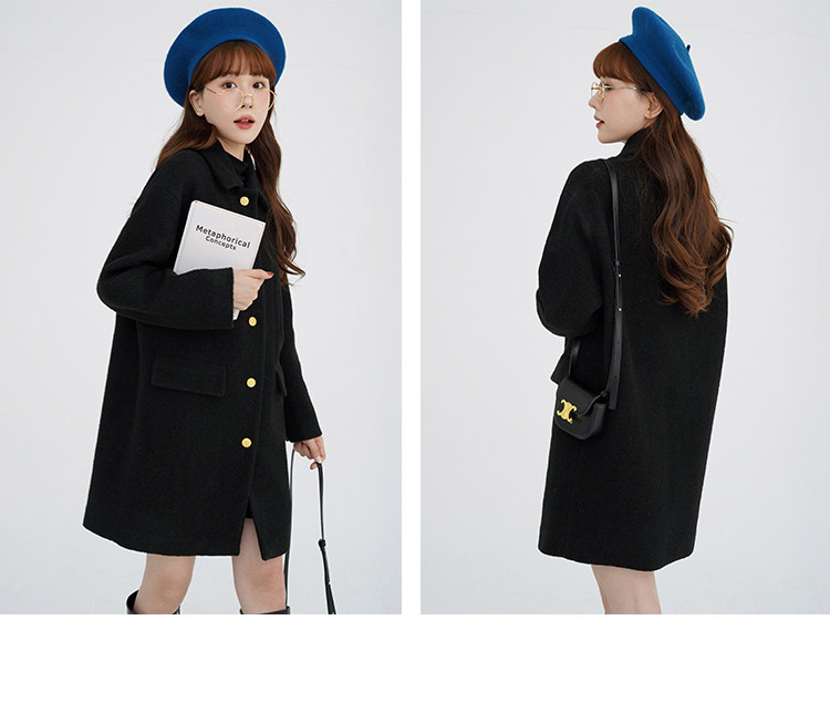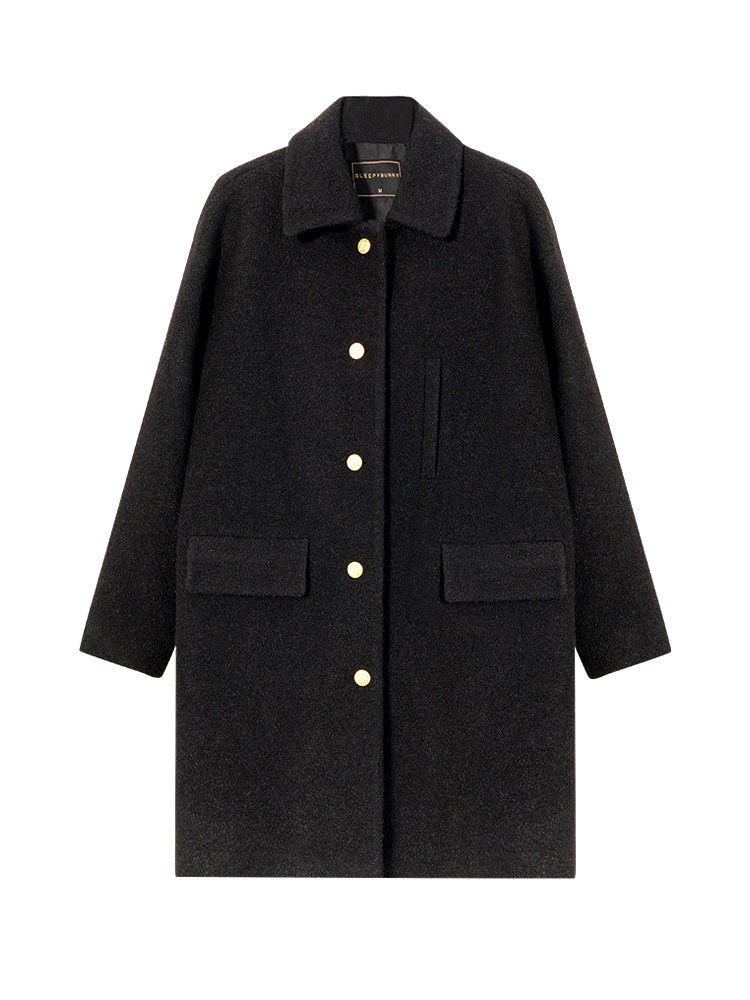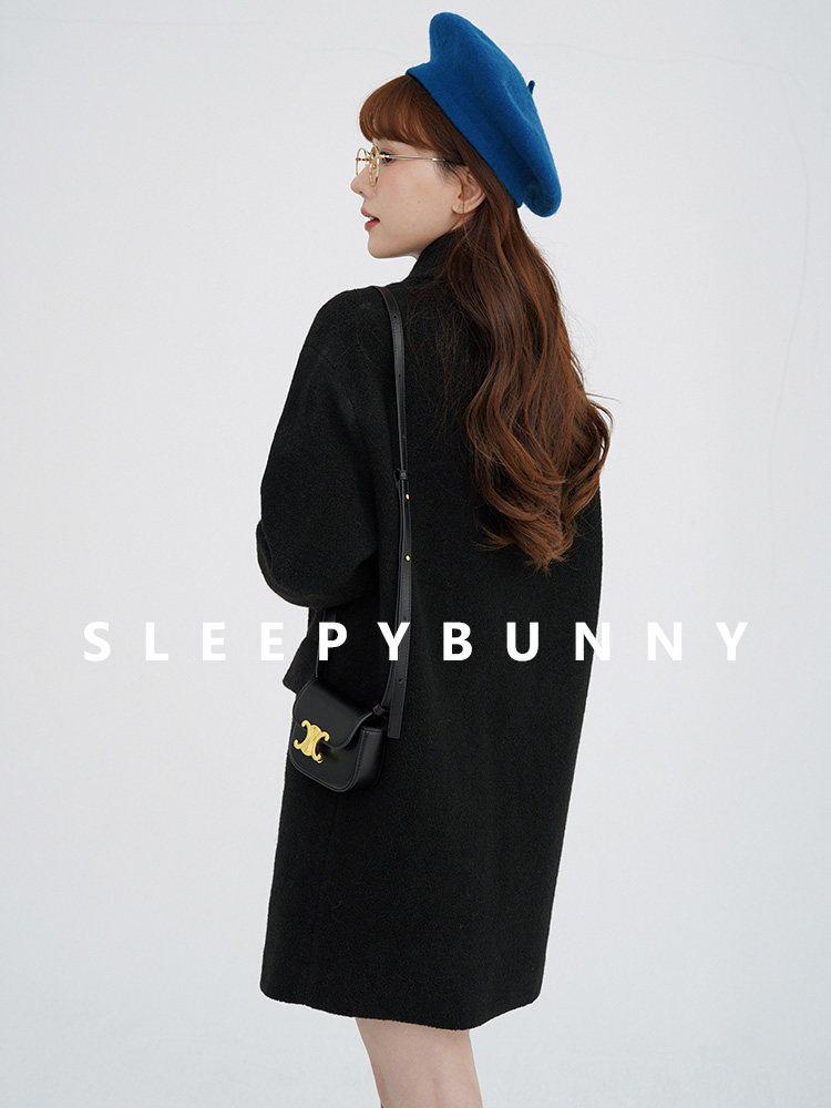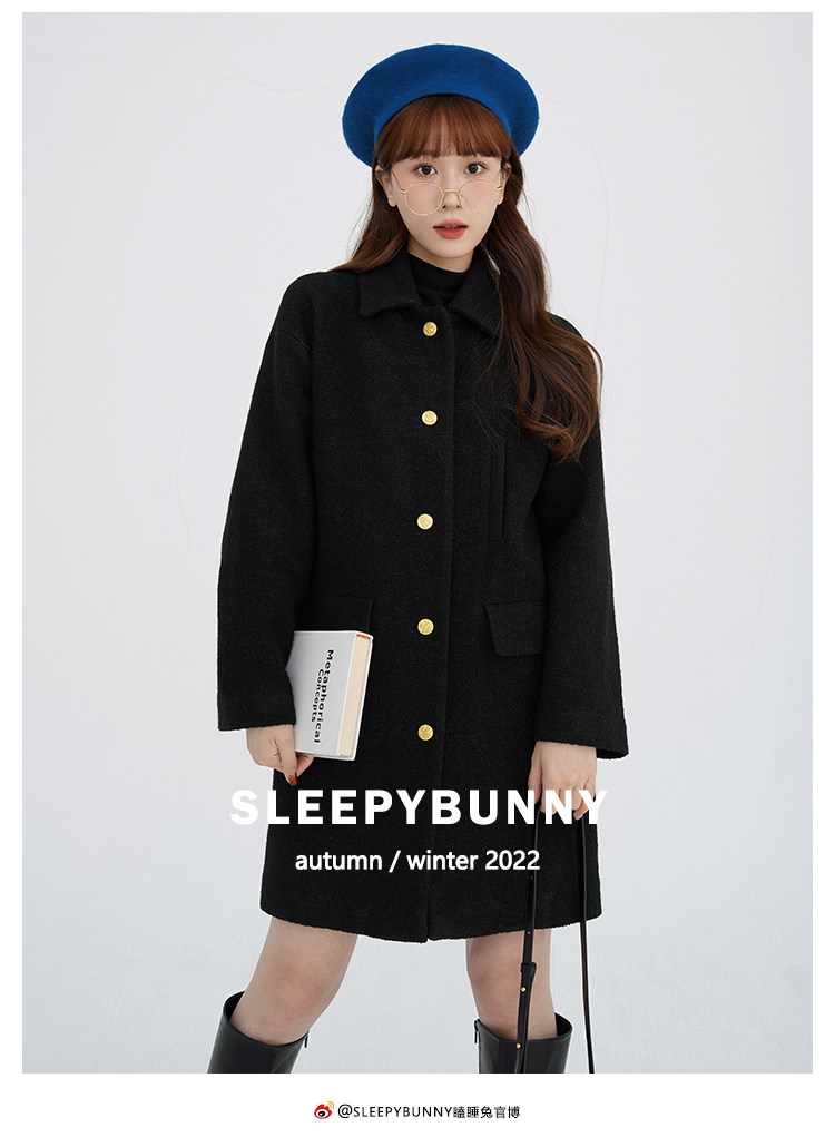 瞌睡兔 Монеты, шерстяное зимнее японское черное шерстяное пальто