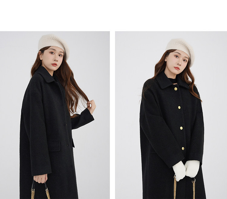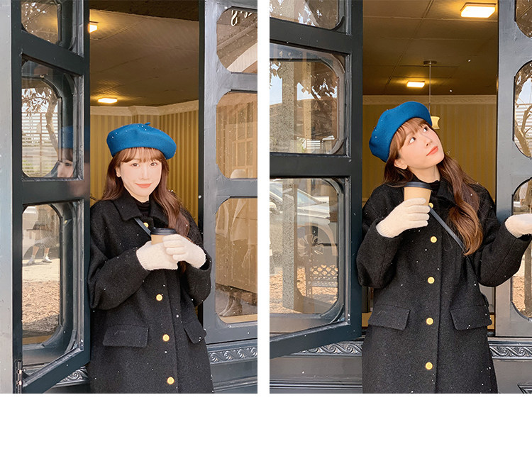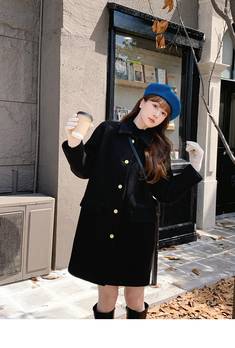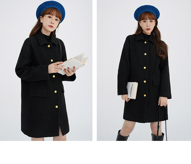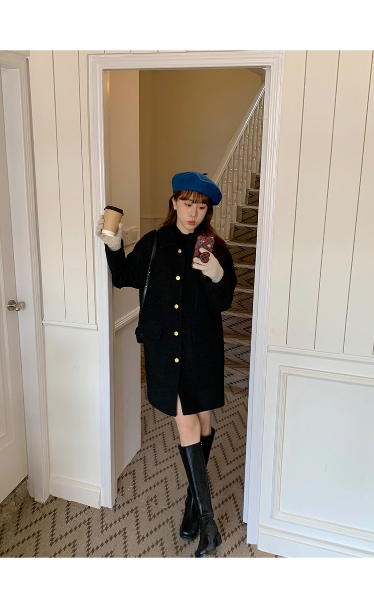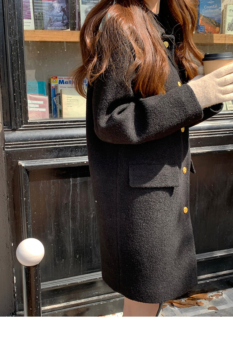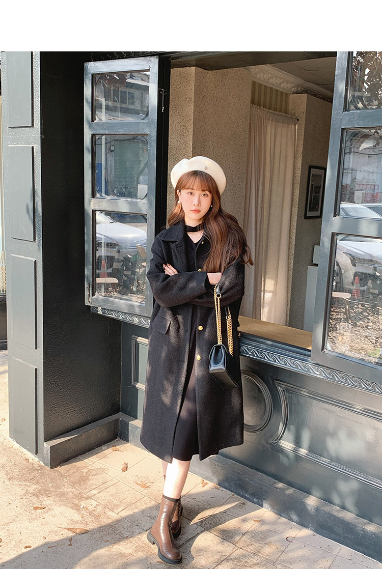 瞌睡兔 Монеты, шерстяное зимнее японское черное шерстяное пальто