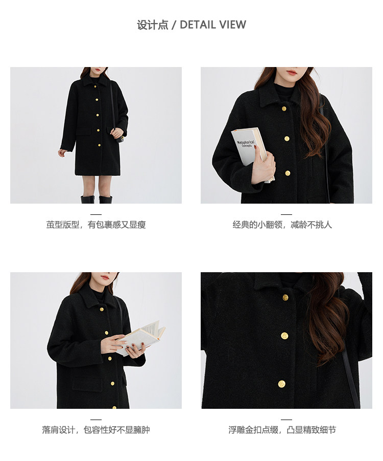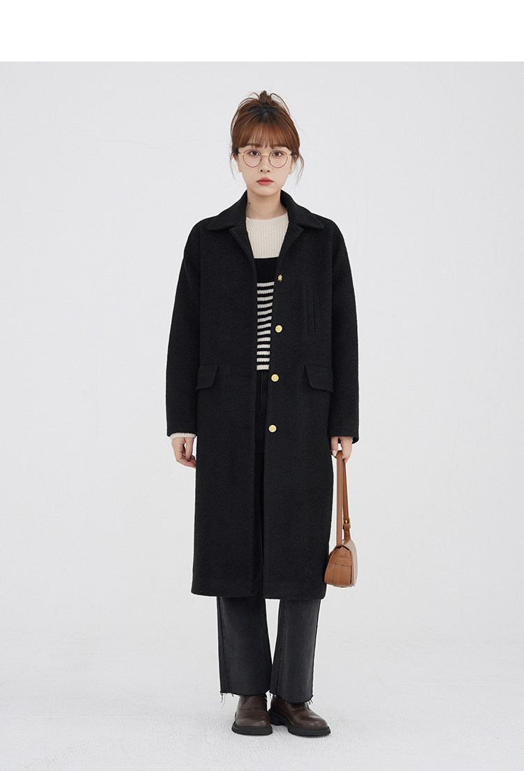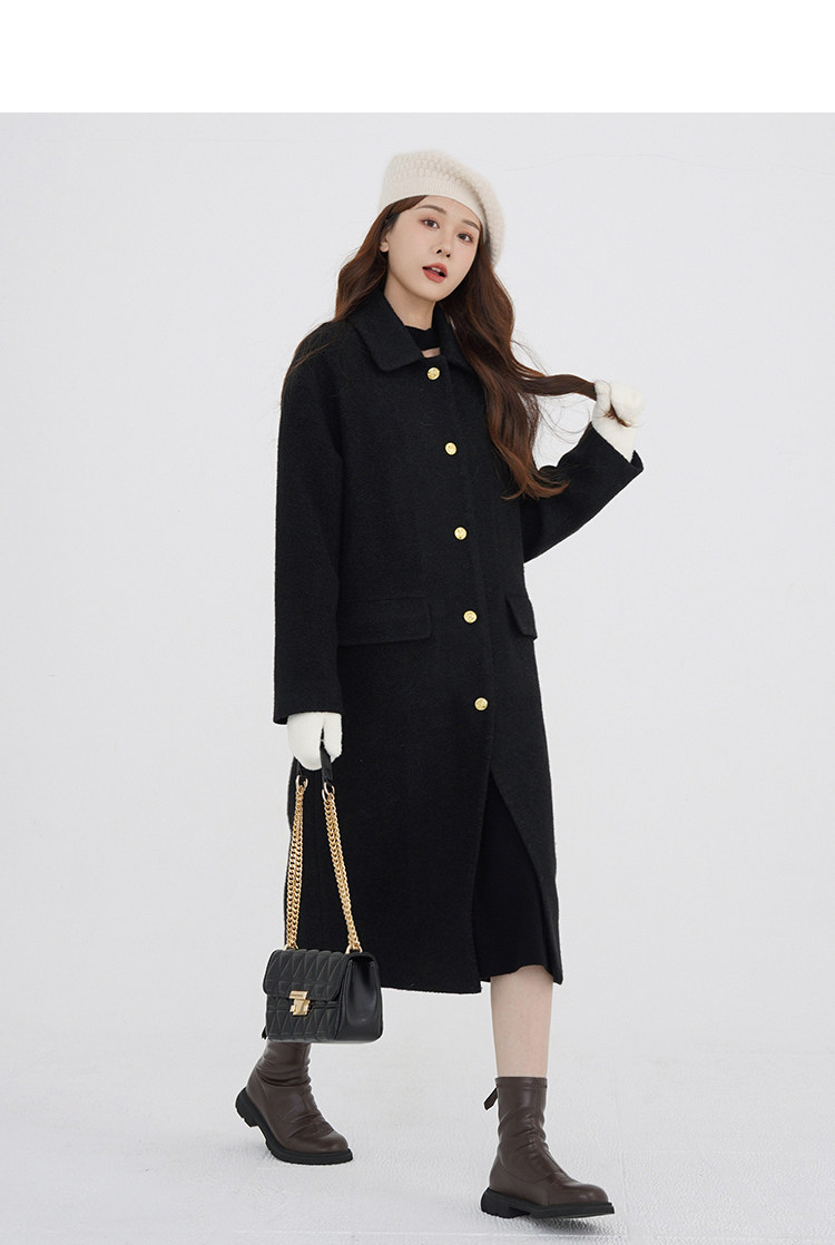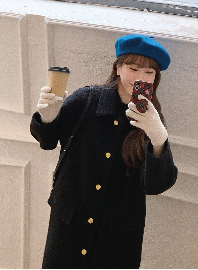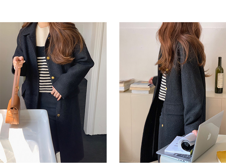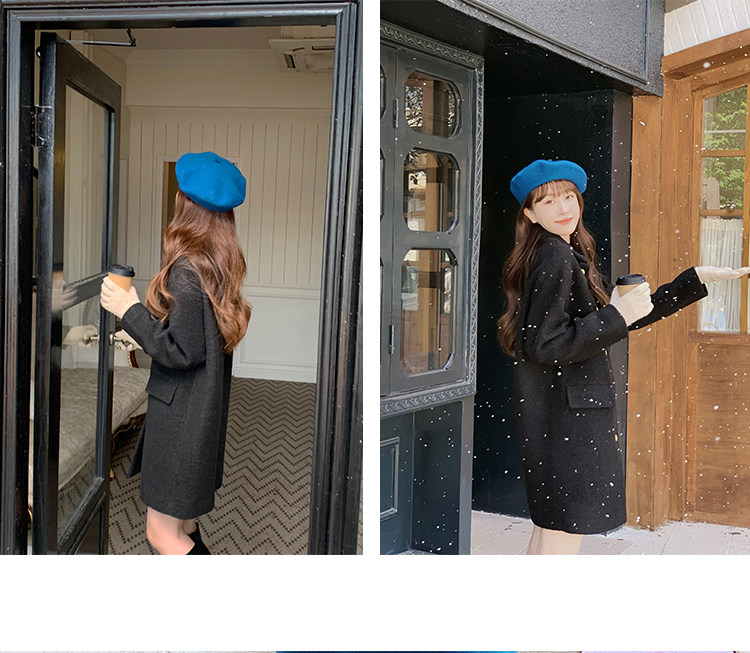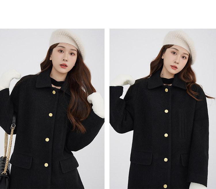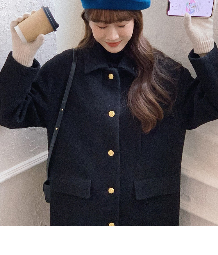瞌睡兔 Монеты, шерстяное зимнее японское черное шерстяное пальто