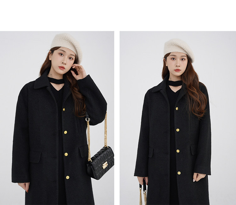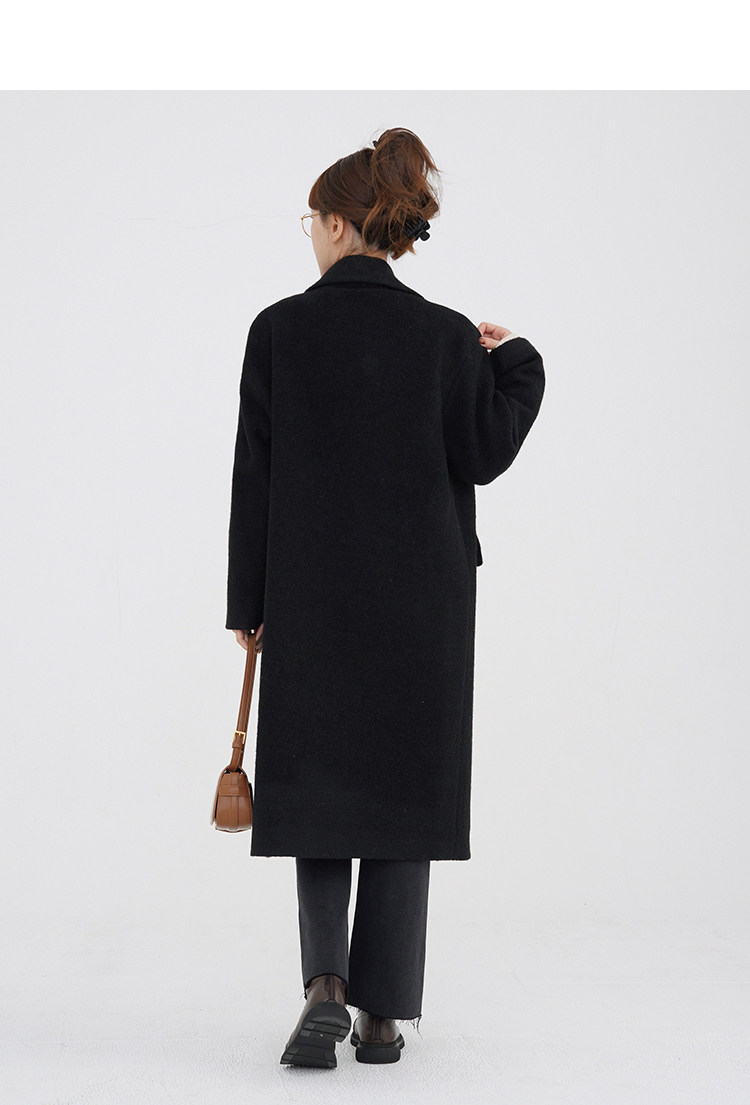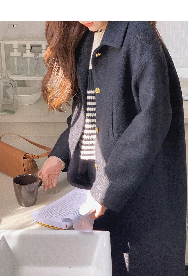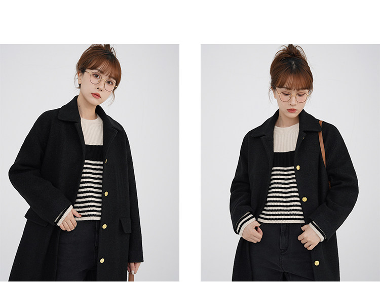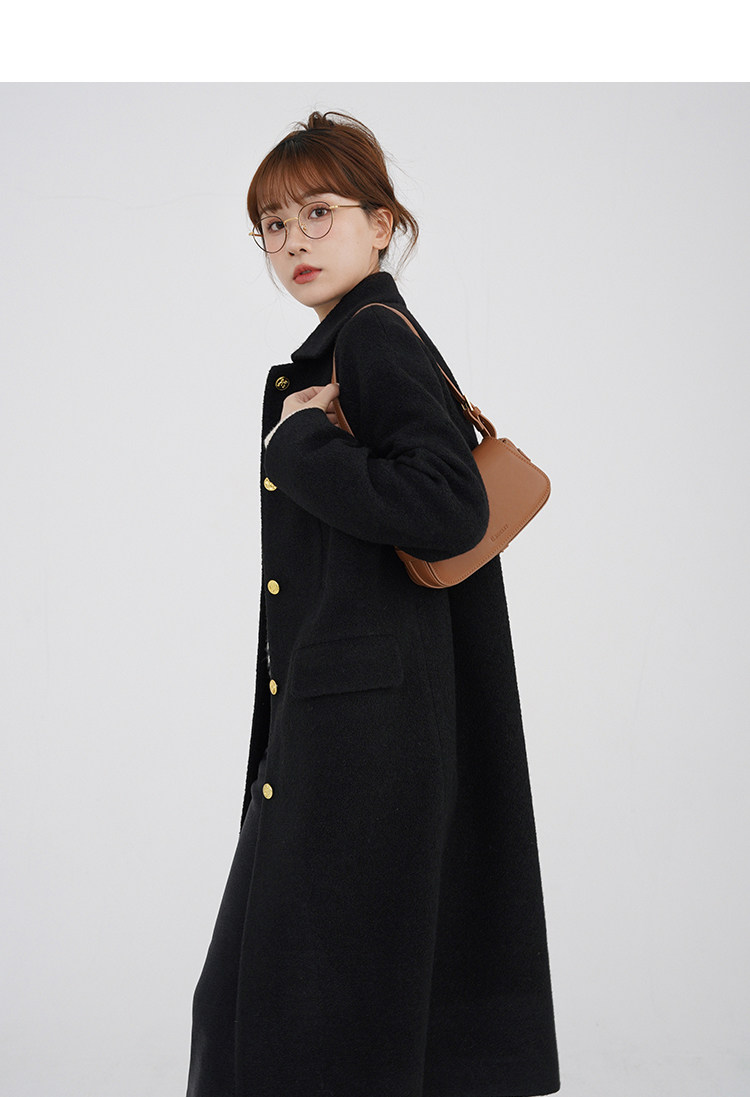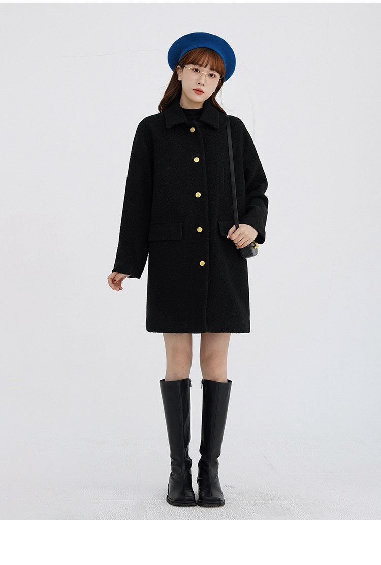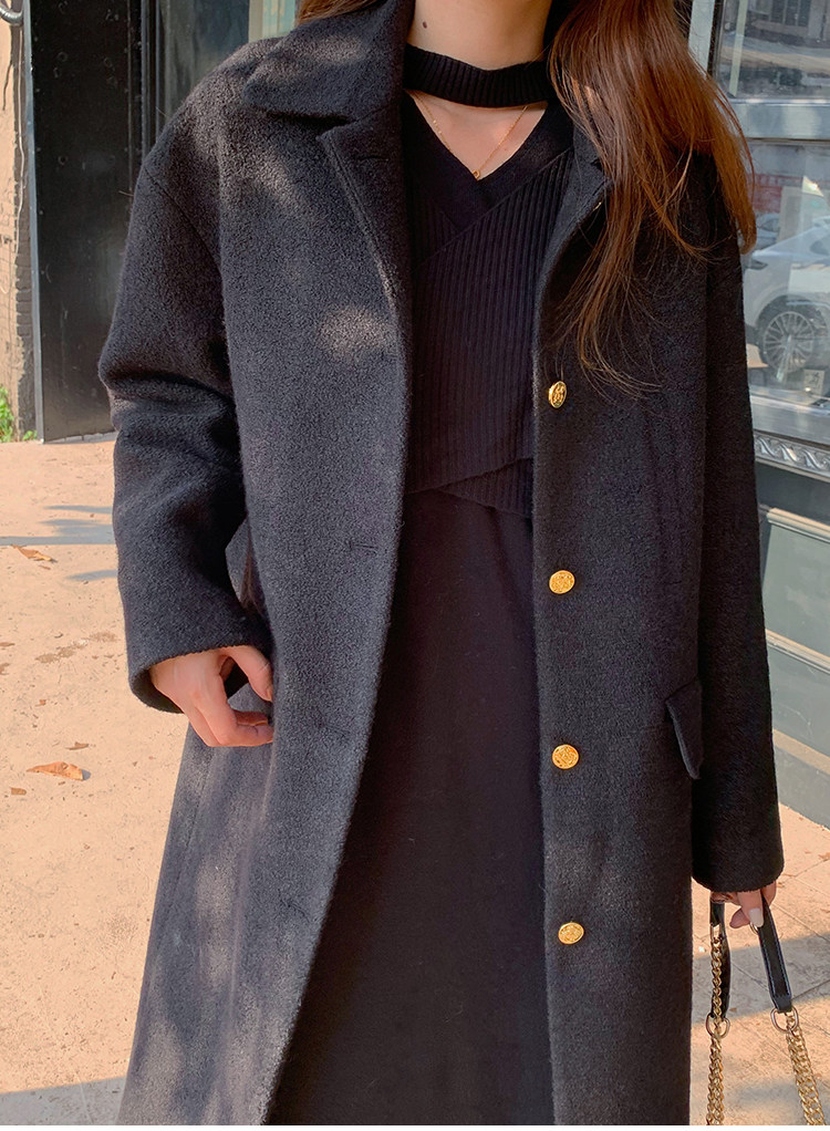 瞌睡兔 Монеты, шерстяное зимнее японское черное шерстяное пальто
