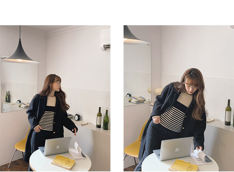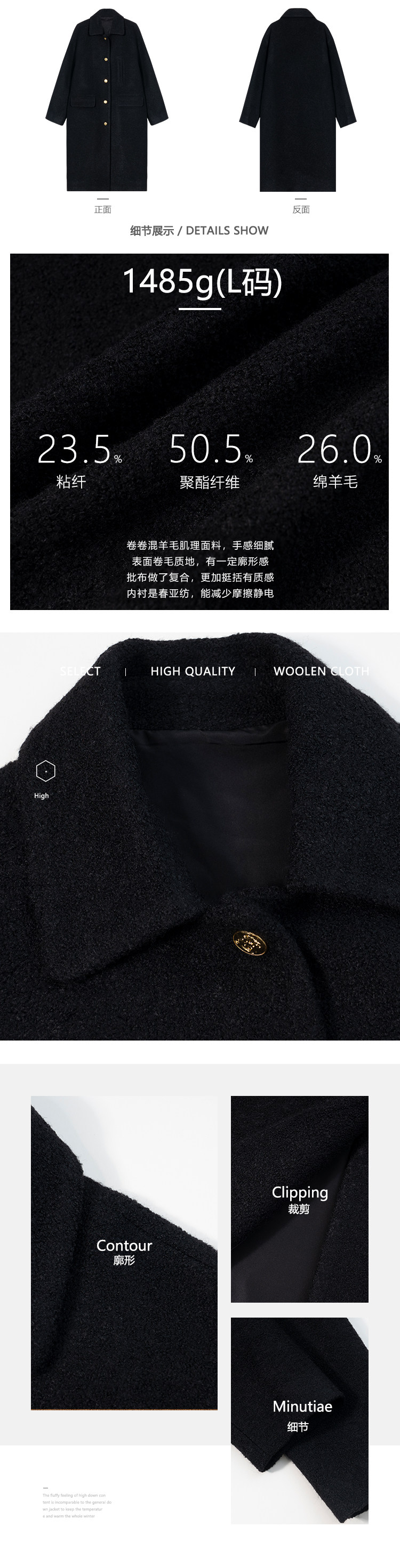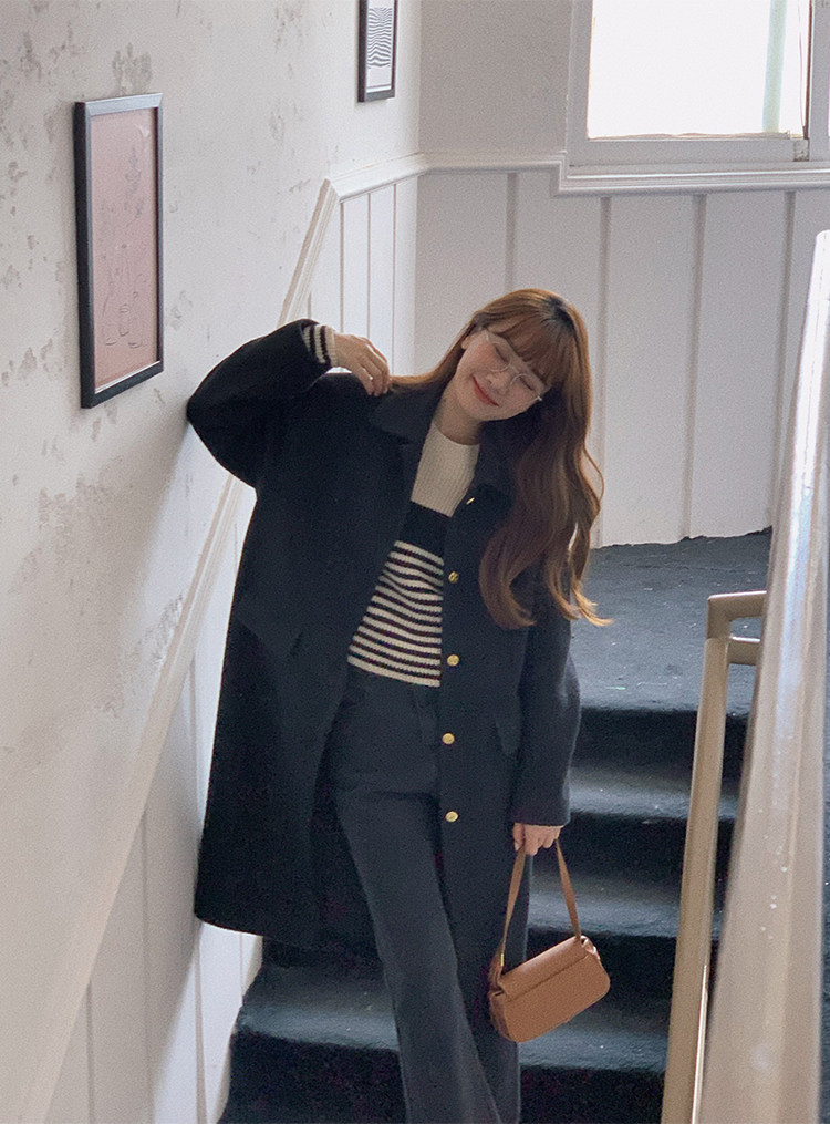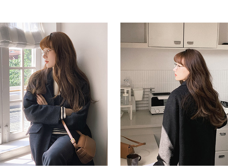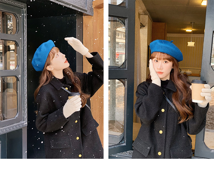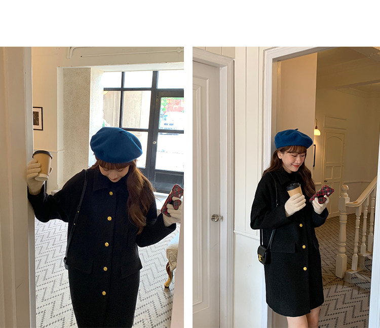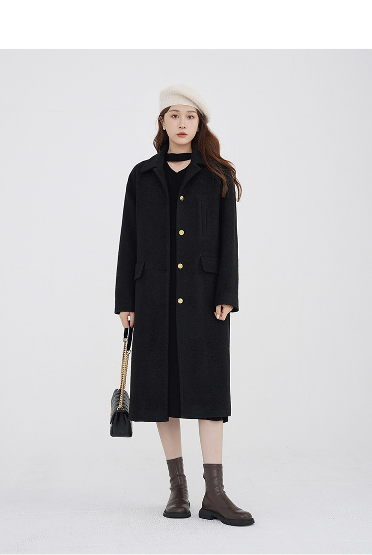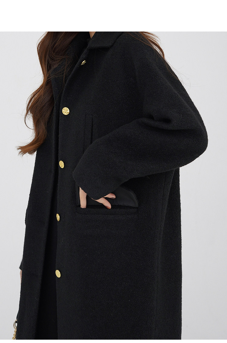 瞌睡兔 Монеты, шерстяное зимнее японское черное шерстяное пальто