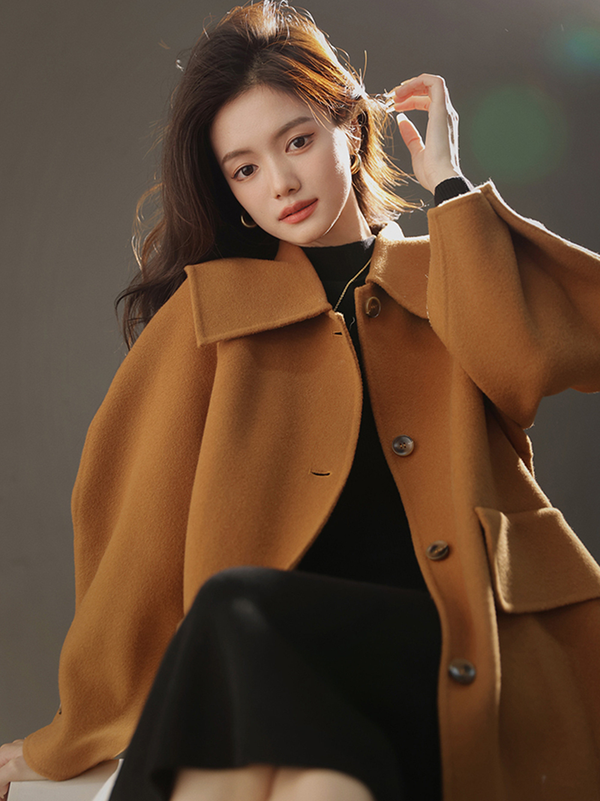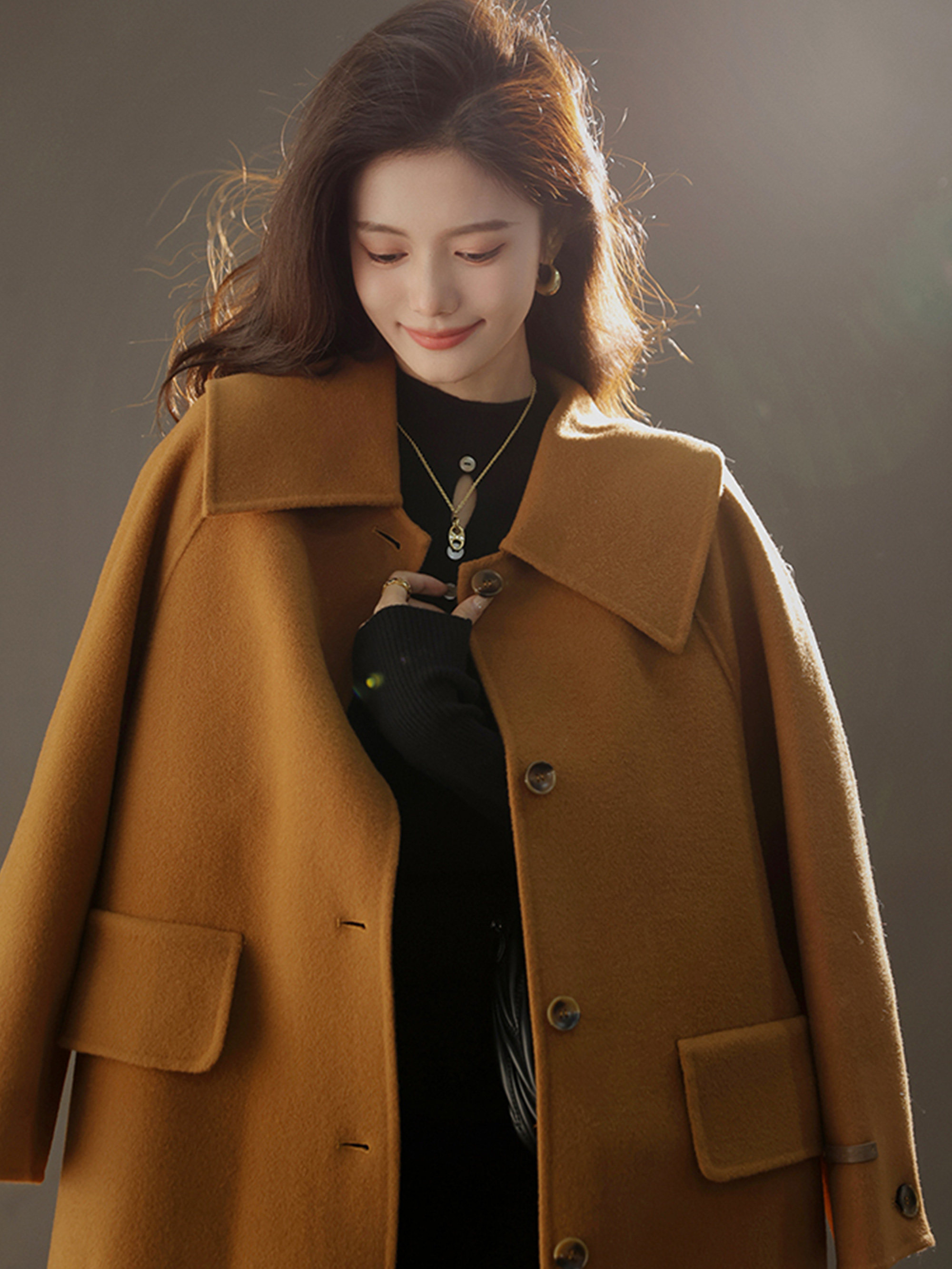 Шерстяное двусторонное демисезонное модное шерстяное пальто, куртка, изысканный стиль