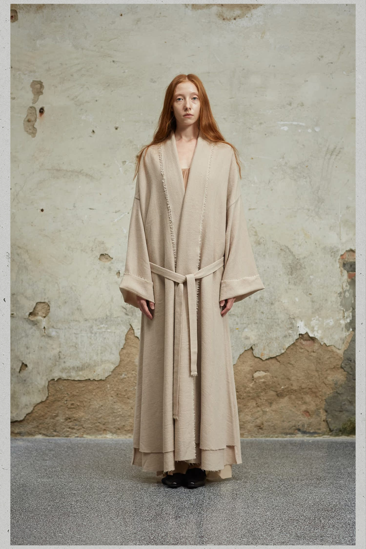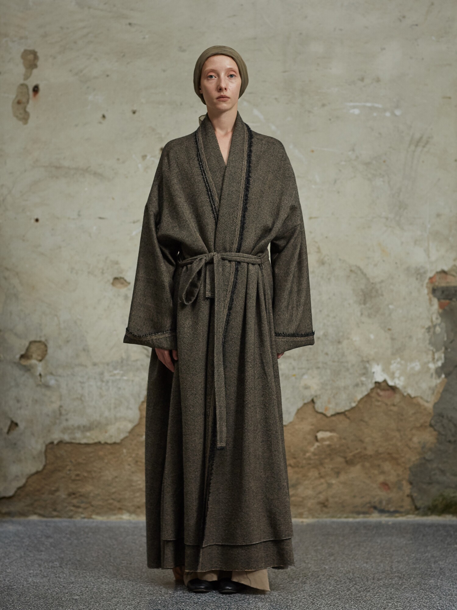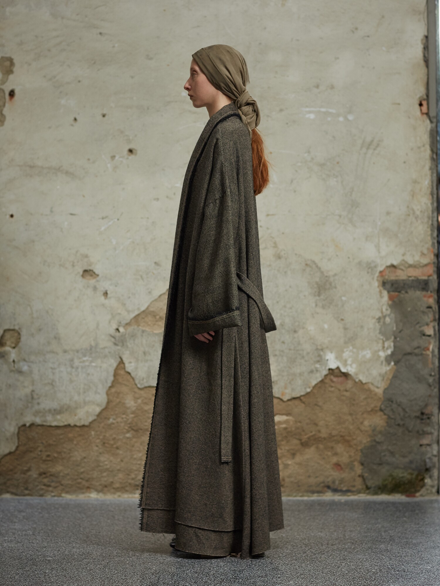 MIURA DESIGN 2022AW Длинное двухслойное дизайнерское пальто из старинной шерсти на шнуровке Длинное ленивое пальто