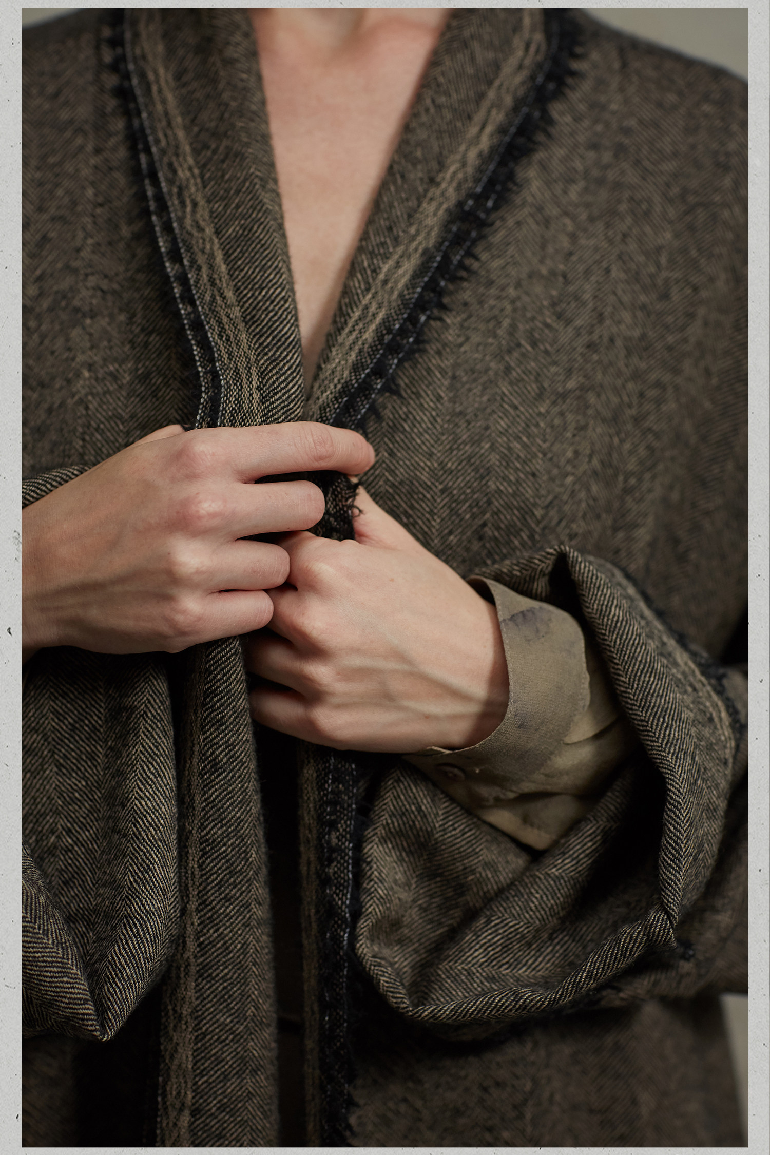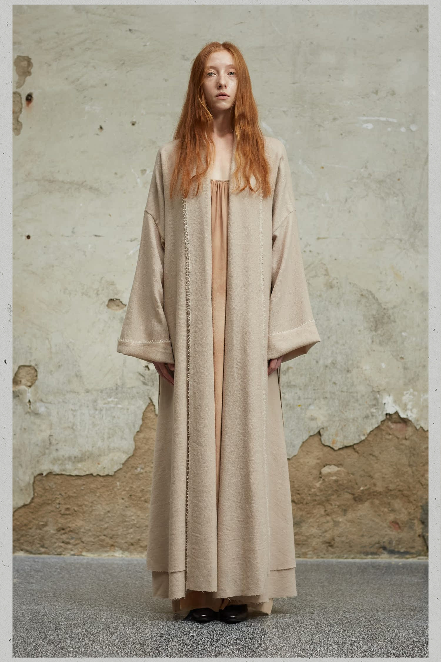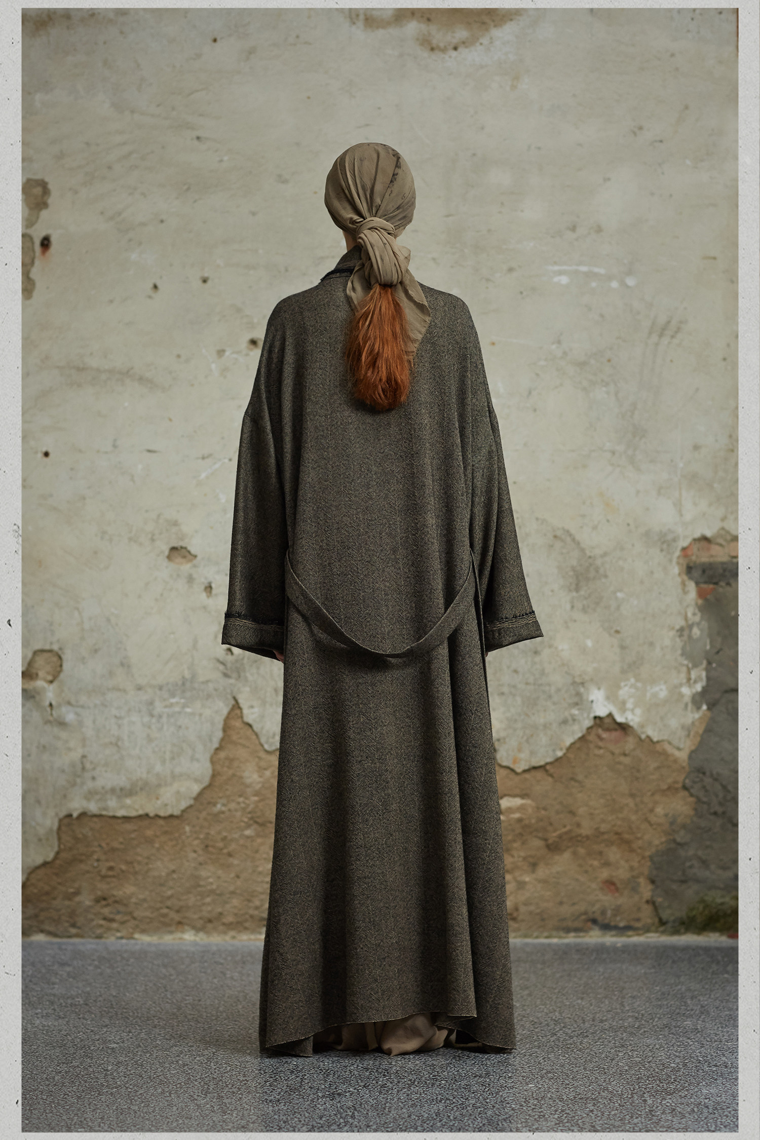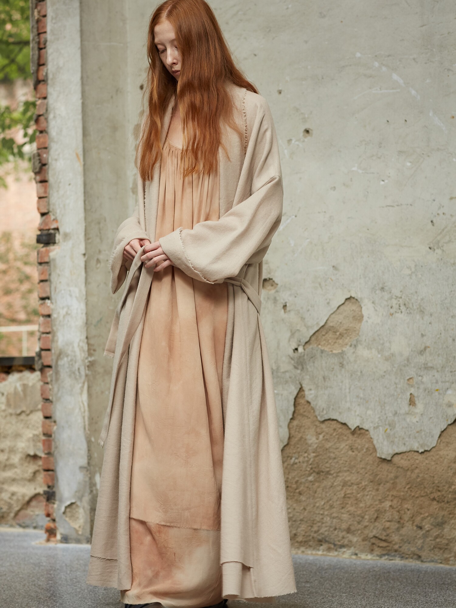 MIURA DESIGN 2022AW Длинное двухслойное дизайнерское пальто из старинной шерсти на шнуровке Длинное ленивое пальто