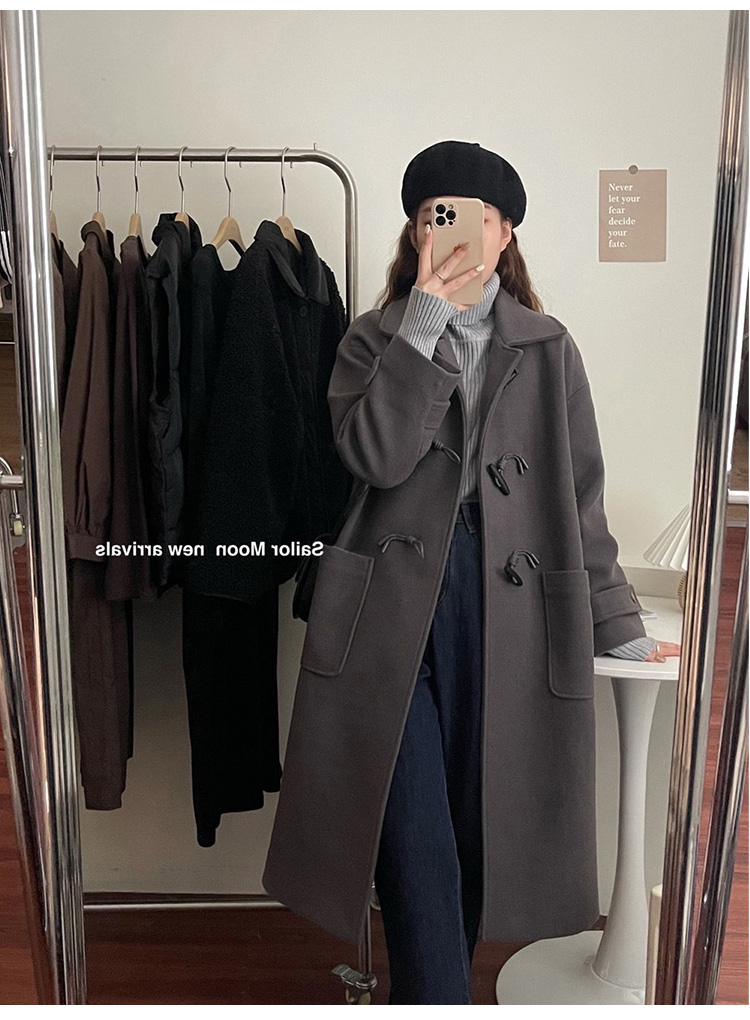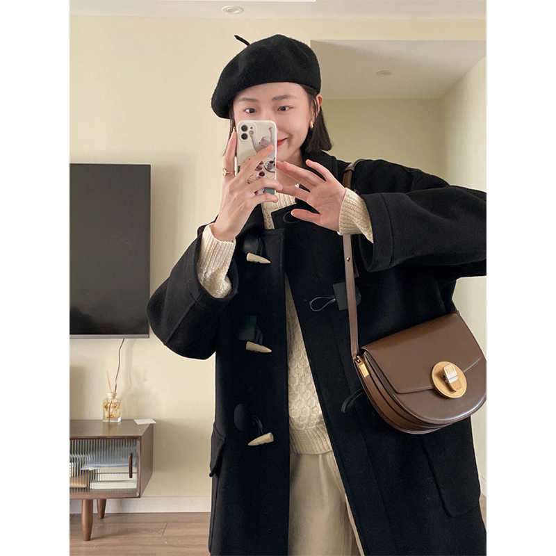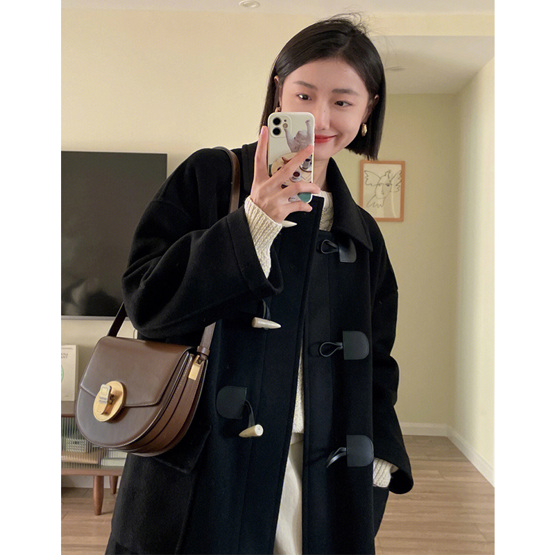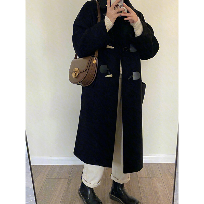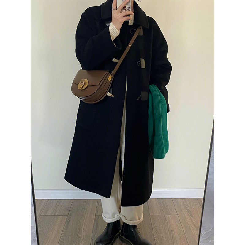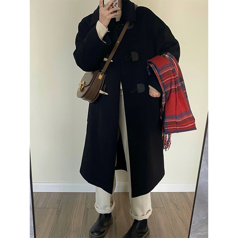 Шерстяное шерстяное пальто, осенняя длинная черная кашемировая куртка, в корейском стиле, средней длины, подходит для подростков