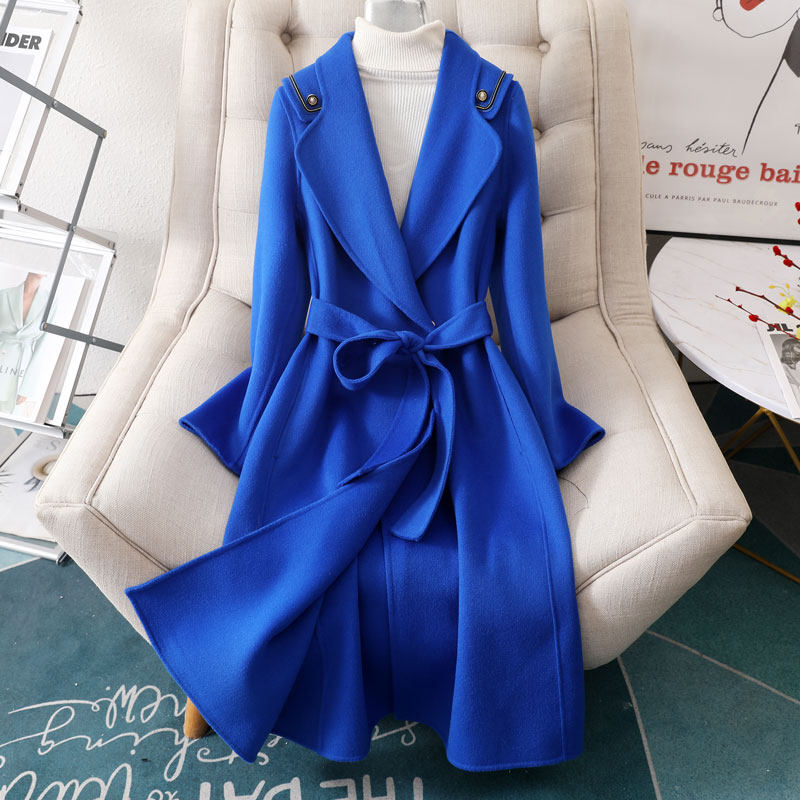 Двусторонное кашемировое длинное шерстяное шерстяное пальто, 2023, средней длины