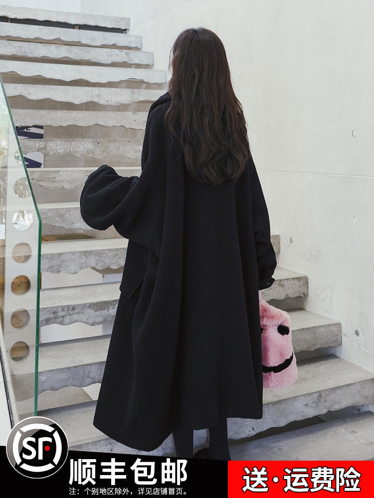 Черное зимнее длинное шерстяное пальто, оверсайз, увеличенная толщина, коллекция 2023, средней длины