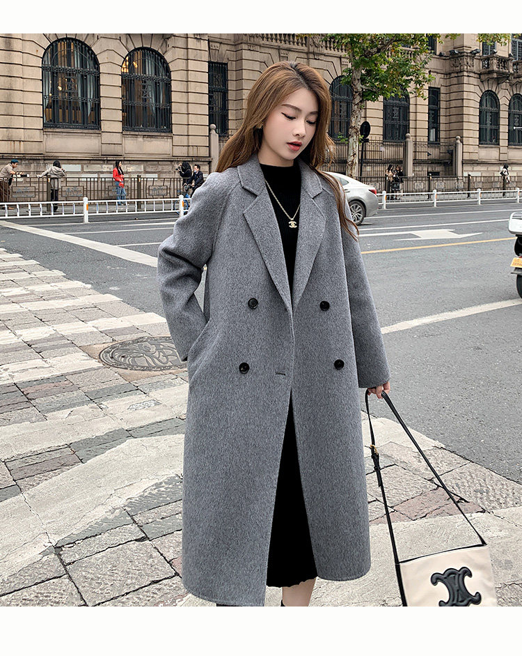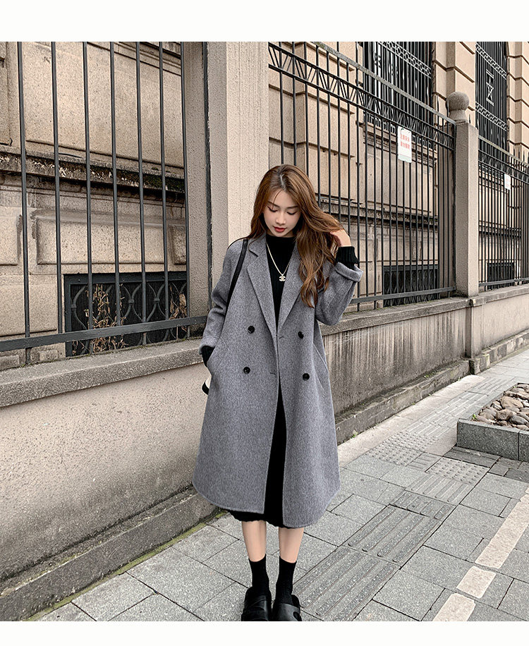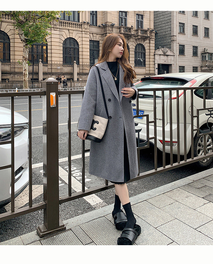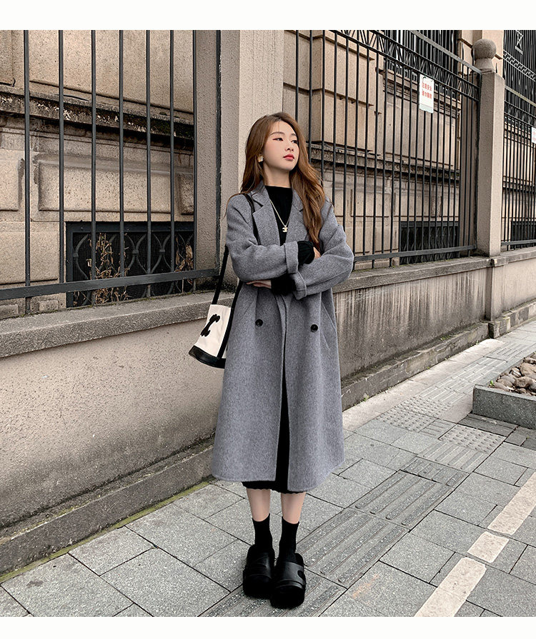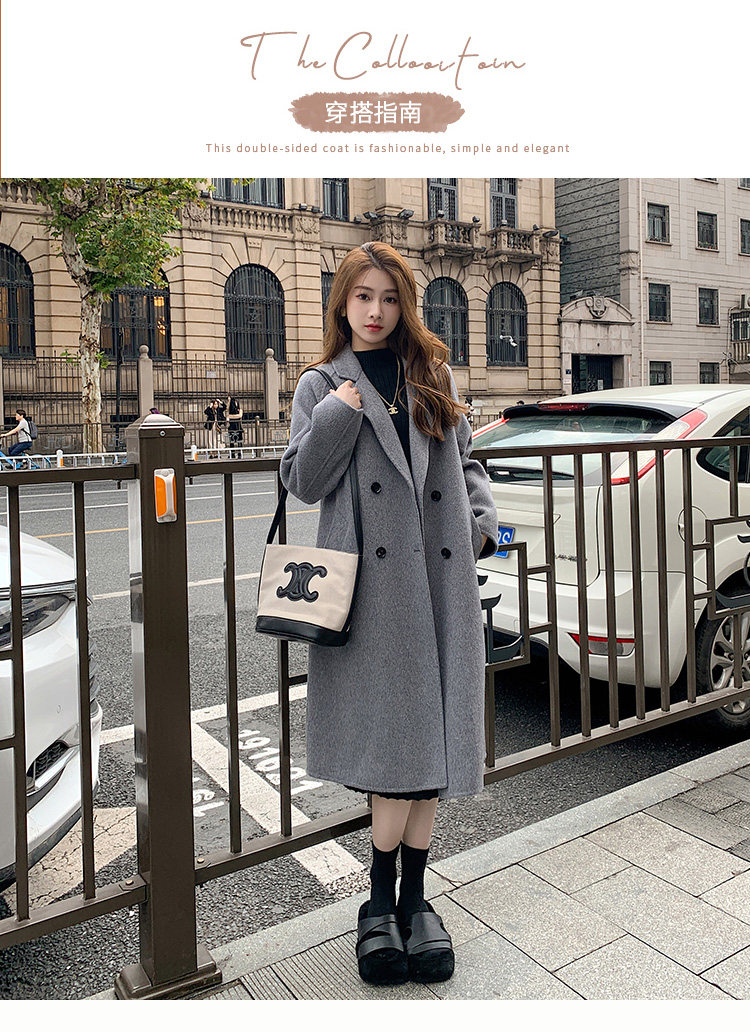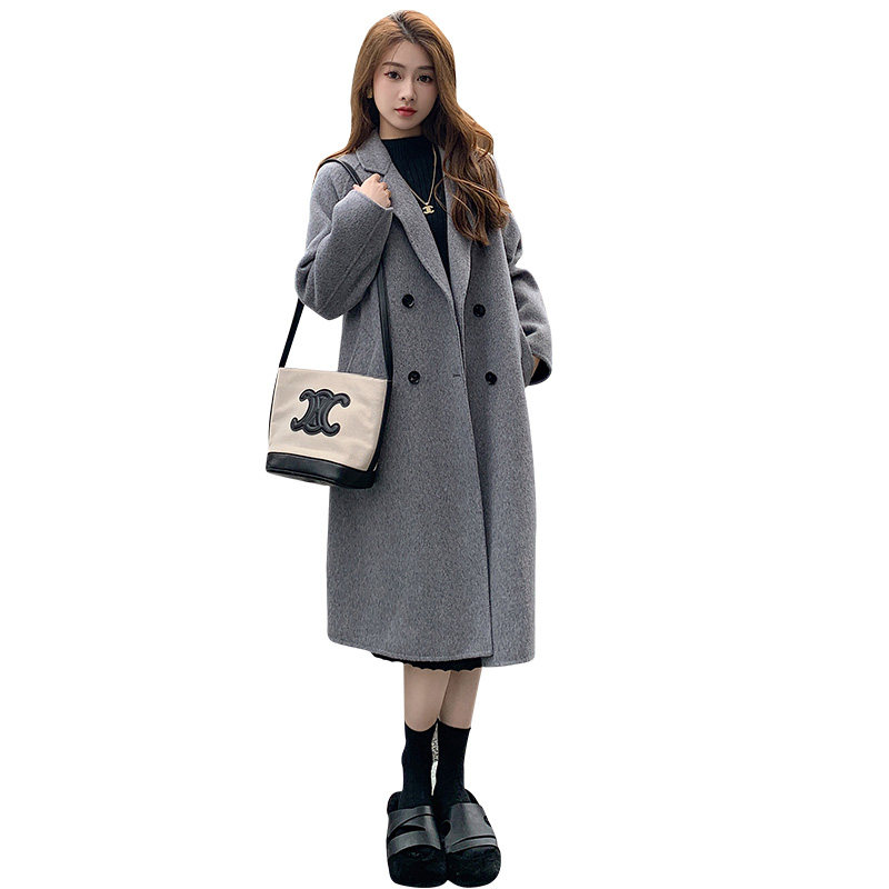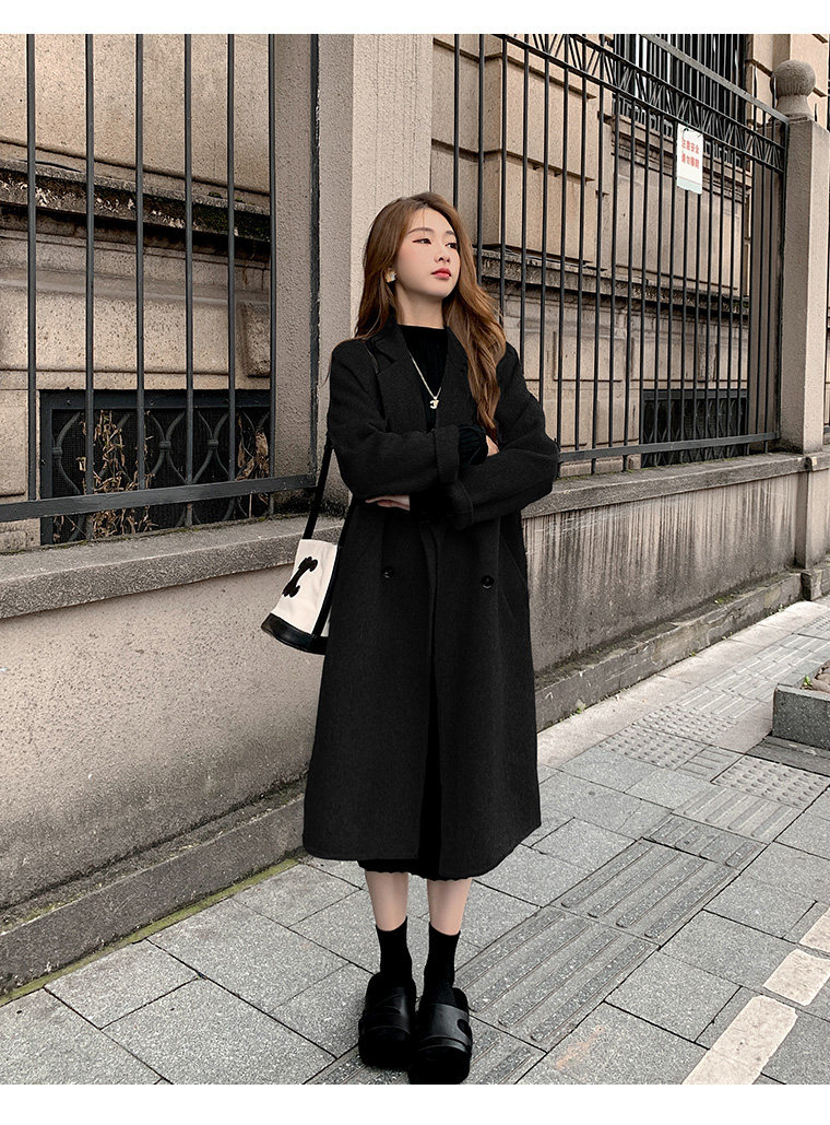 Двусторонное кашемировое осеннее шерстяное пальто, изысканный стиль, увеличенная толщина, коллекция 2023, в корейском стиле, свободный крой