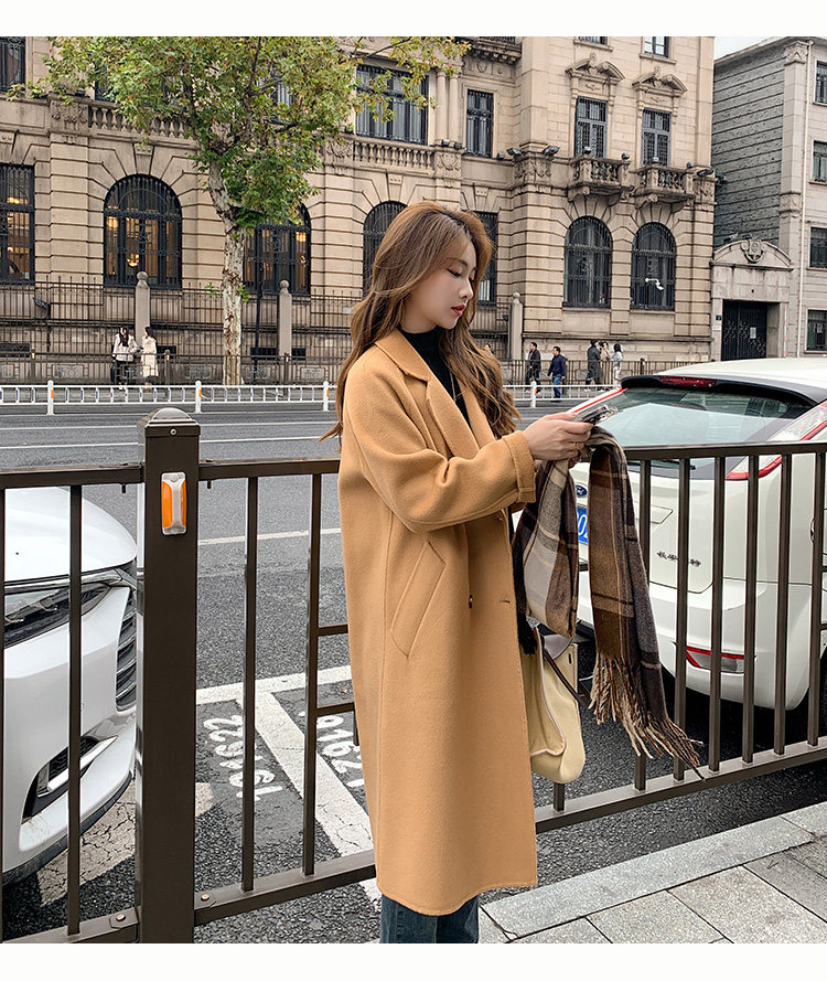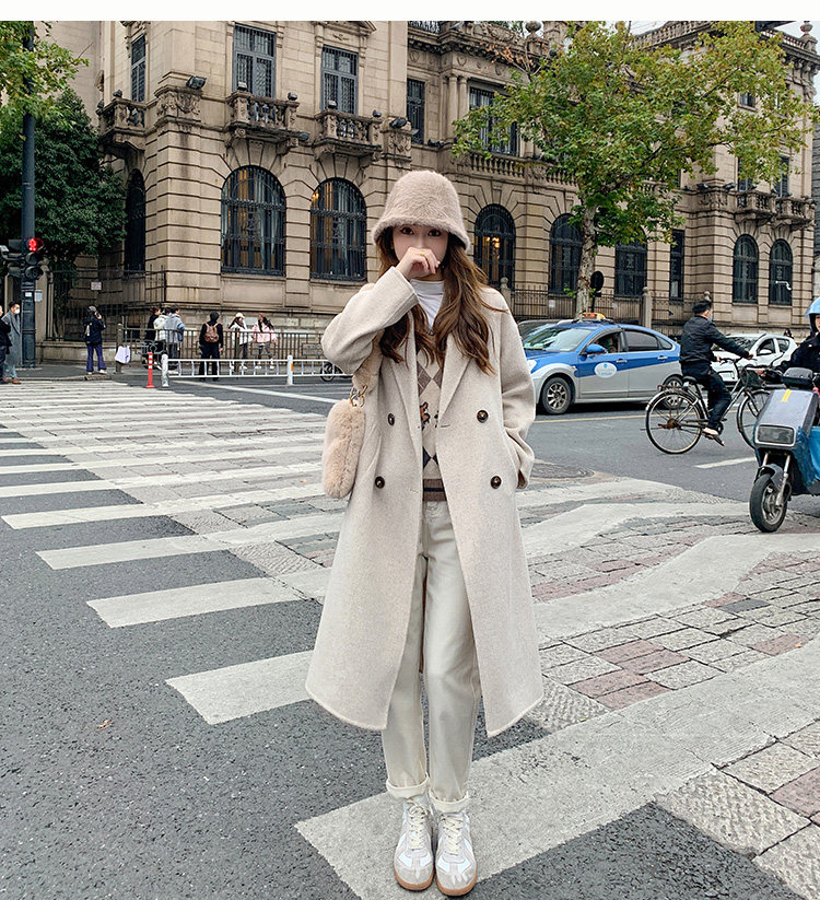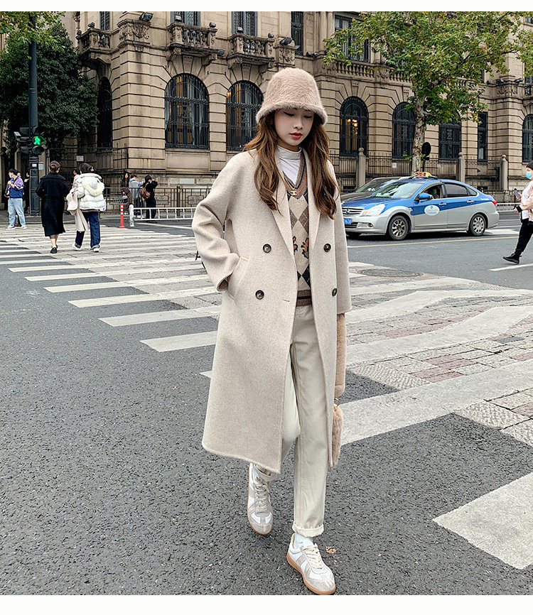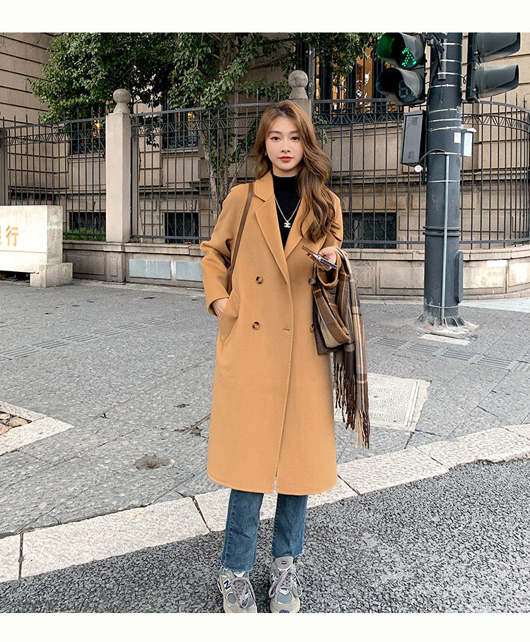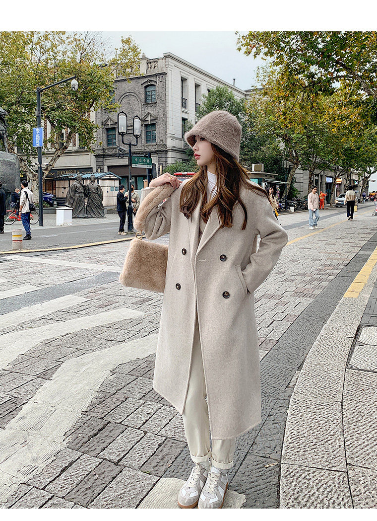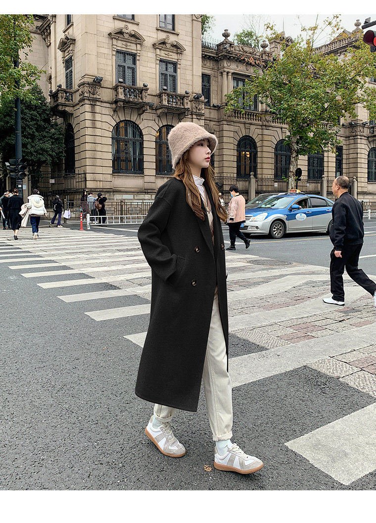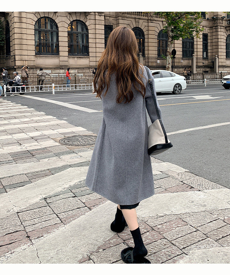Двусторонное кашемировое осеннее шерстяное пальто, изысканный стиль, увеличенная толщина, коллекция 2023, в корейском стиле, свободный крой