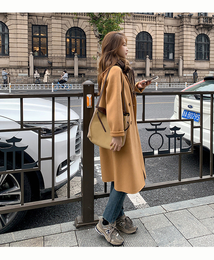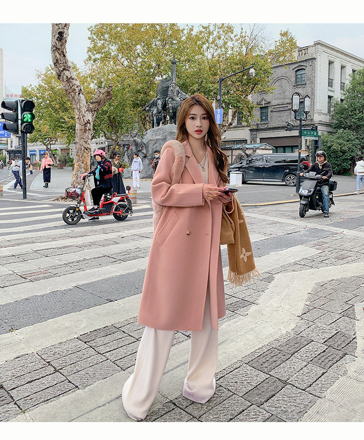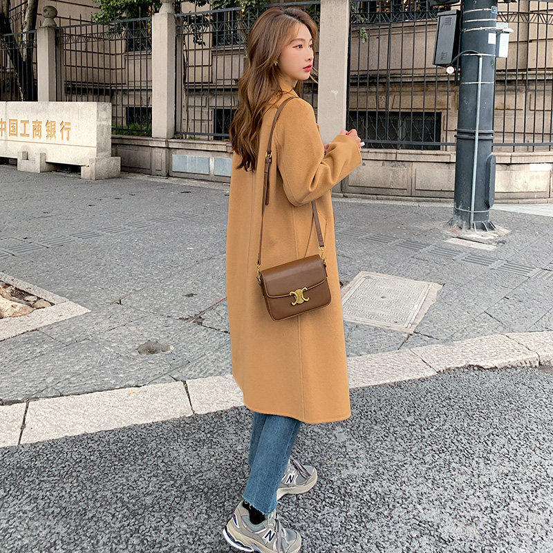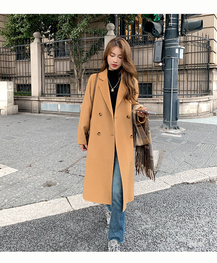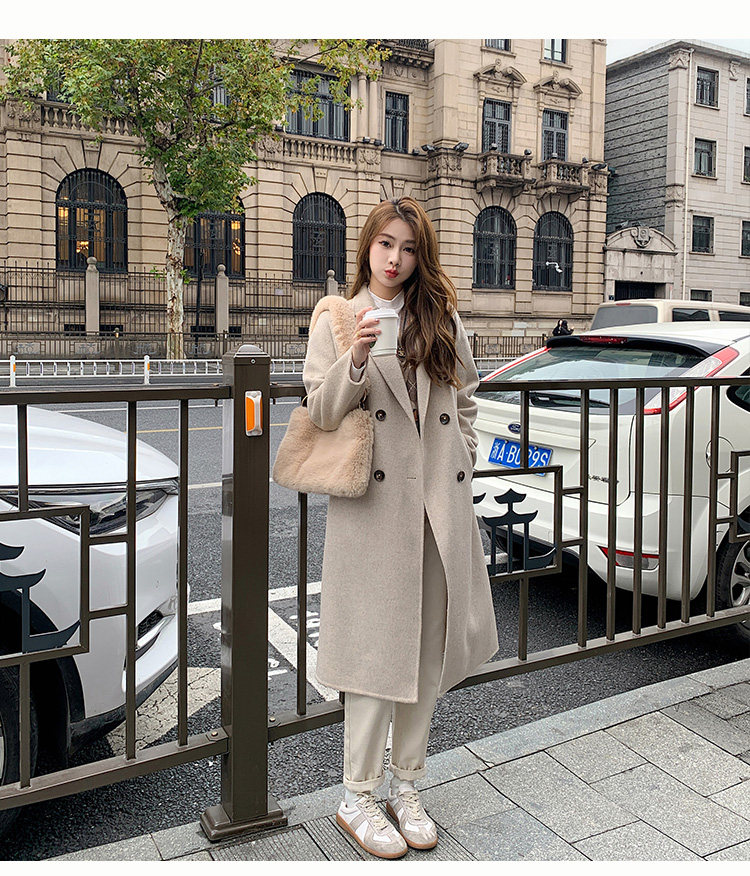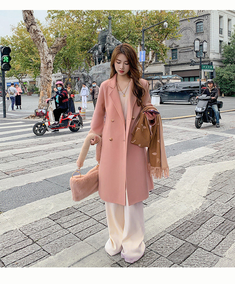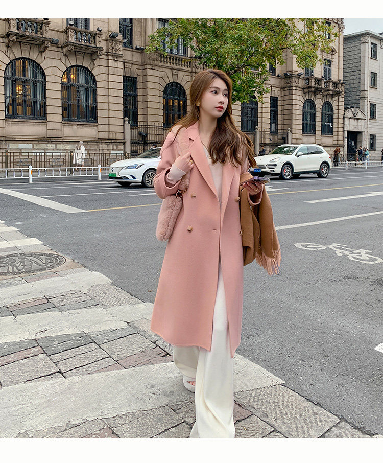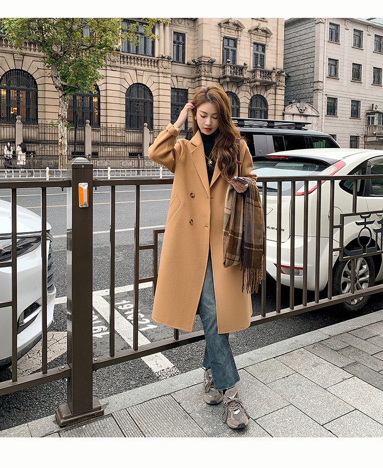 Двусторонное кашемировое осеннее шерстяное пальто, изысканный стиль, увеличенная толщина, коллекция 2023, в корейском стиле, свободный крой