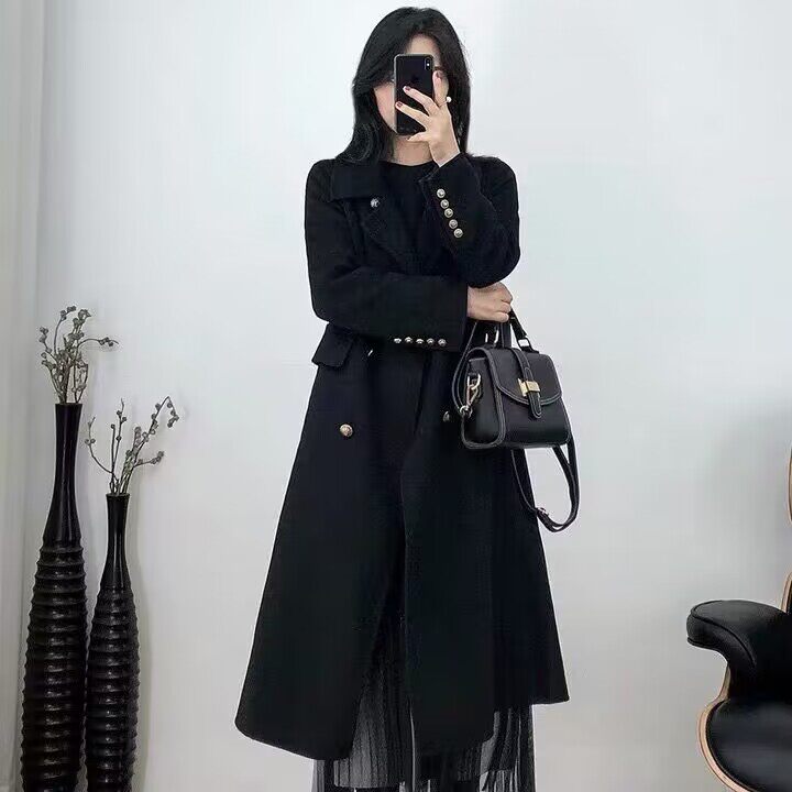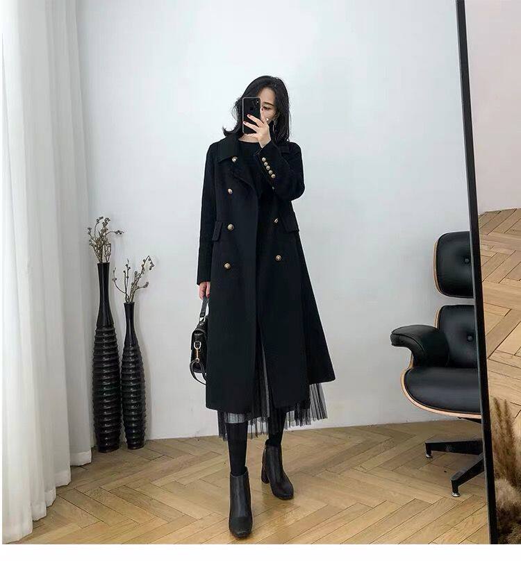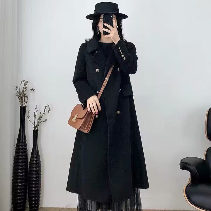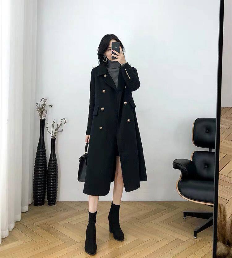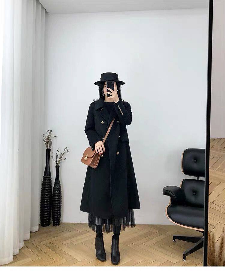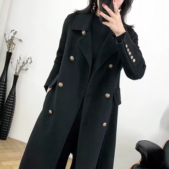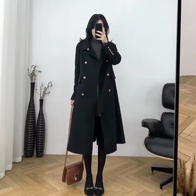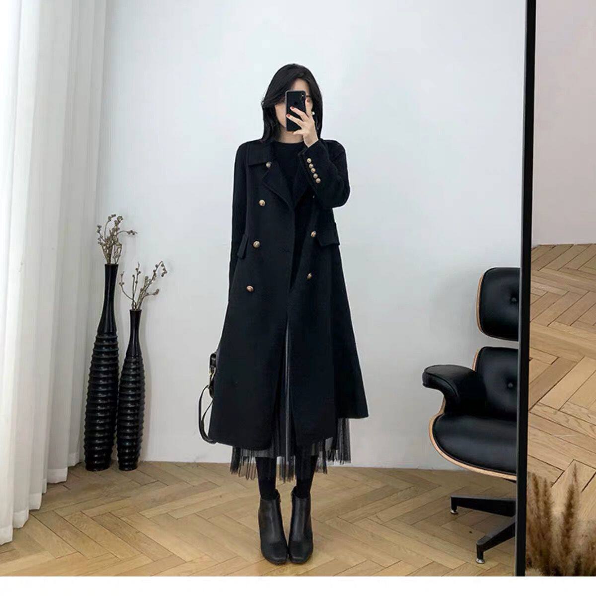 Демисезонное шерстяное пальто, куртка, длинный костюм, большой размер, средней длины, свободный крой