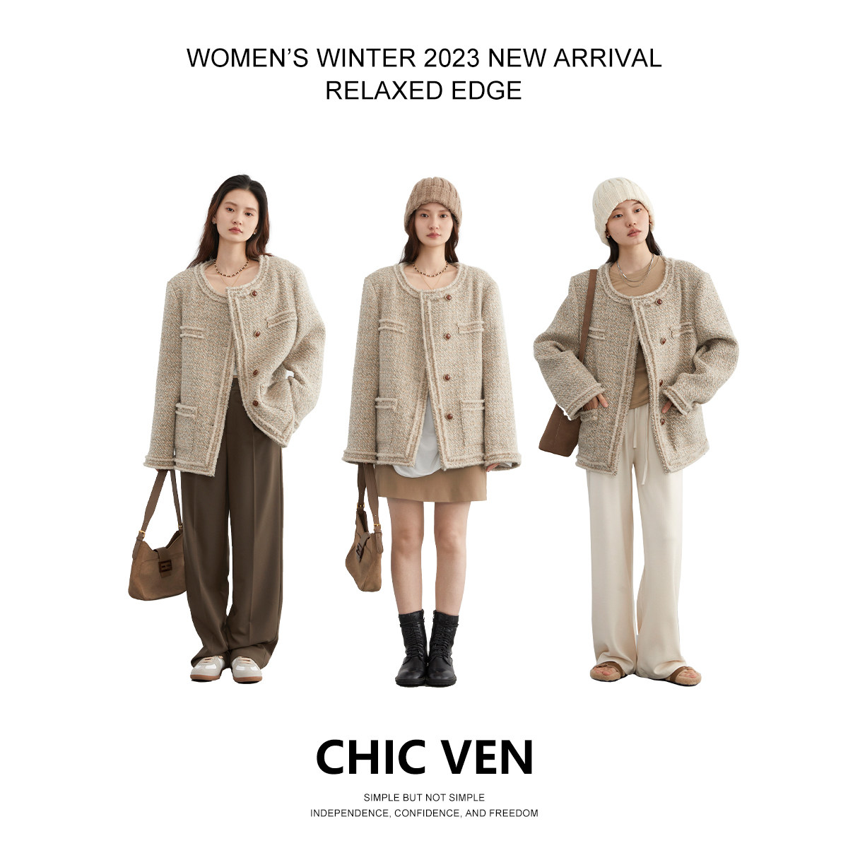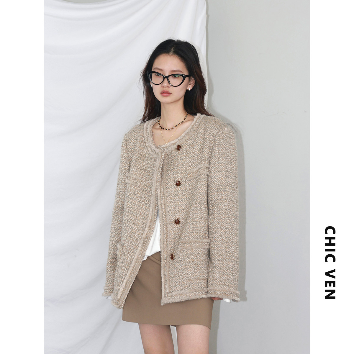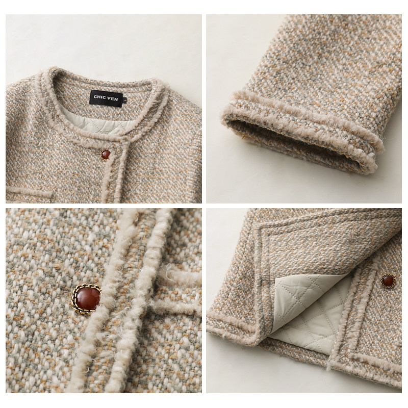 Chicven "Slack Edge" Новый зимний продукт маленький аромат ватный шерстяной шерсть шерсть короткая твида
