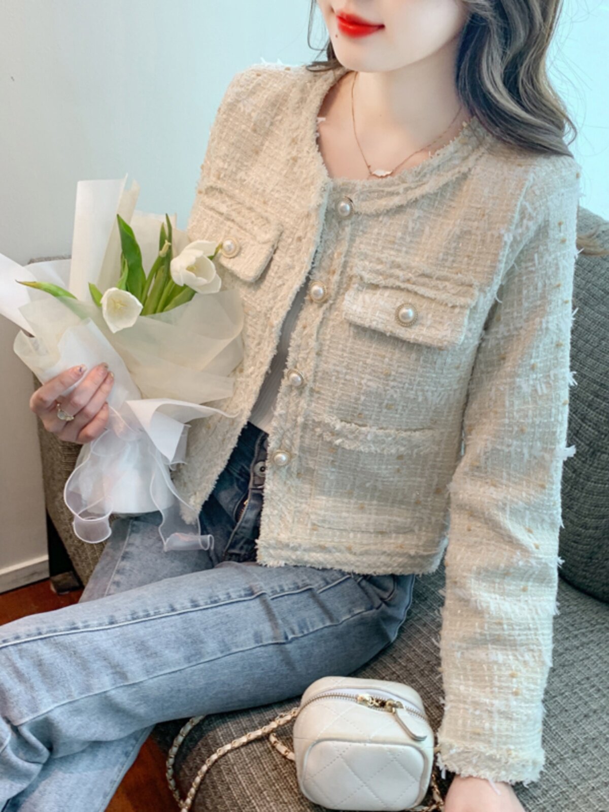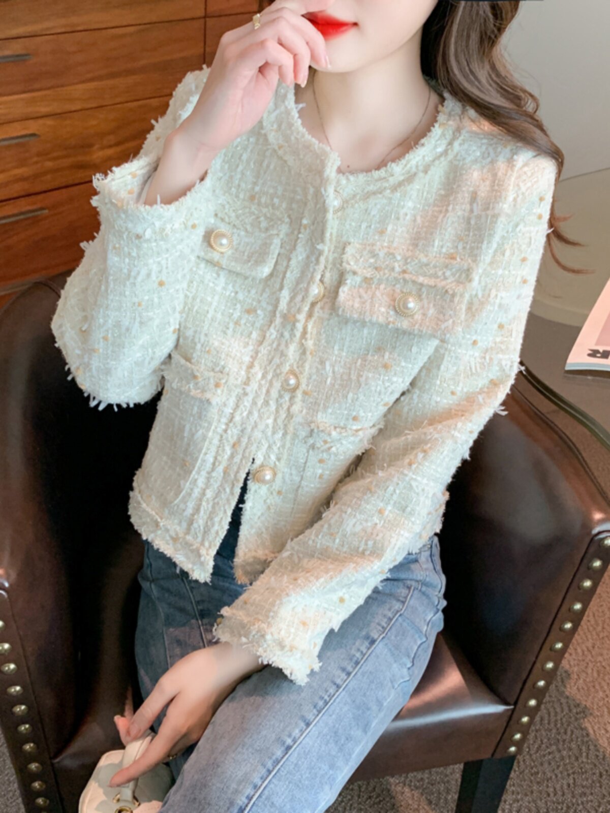 Демисезонная дизайнерская короткая куртка, французский стиль, в стиле Шанель, подходит для подростков, свободный крой, тренд сезона, яркий броский стиль