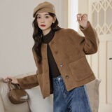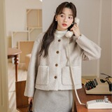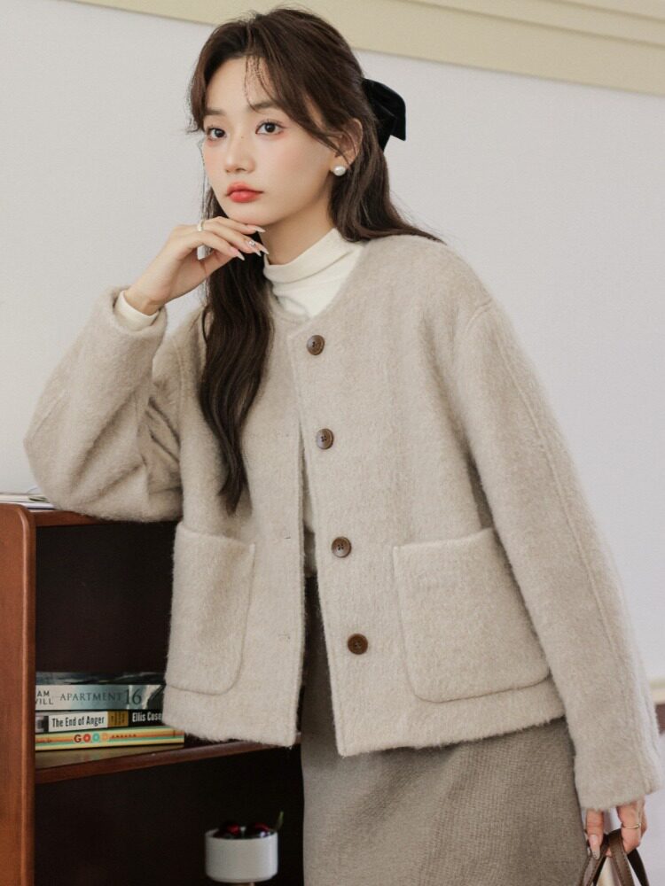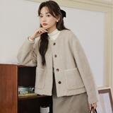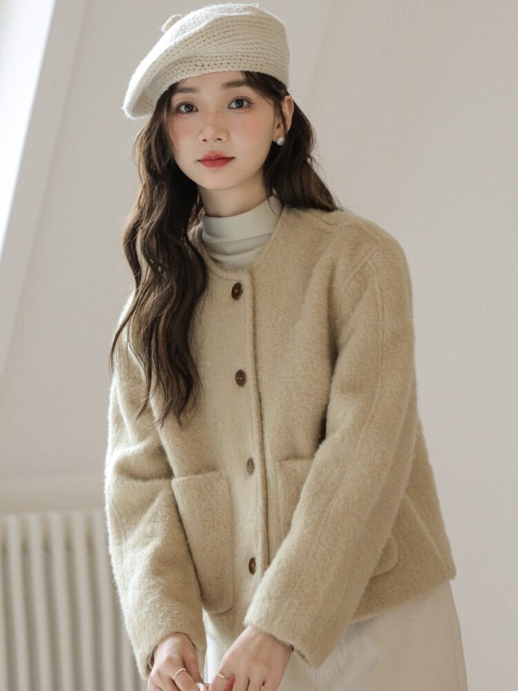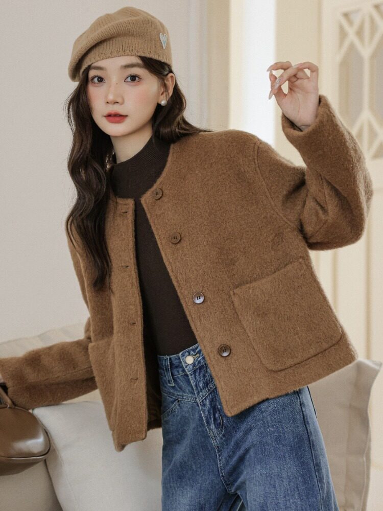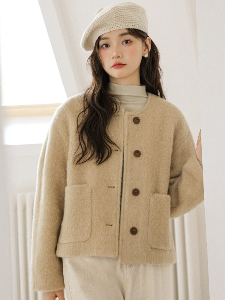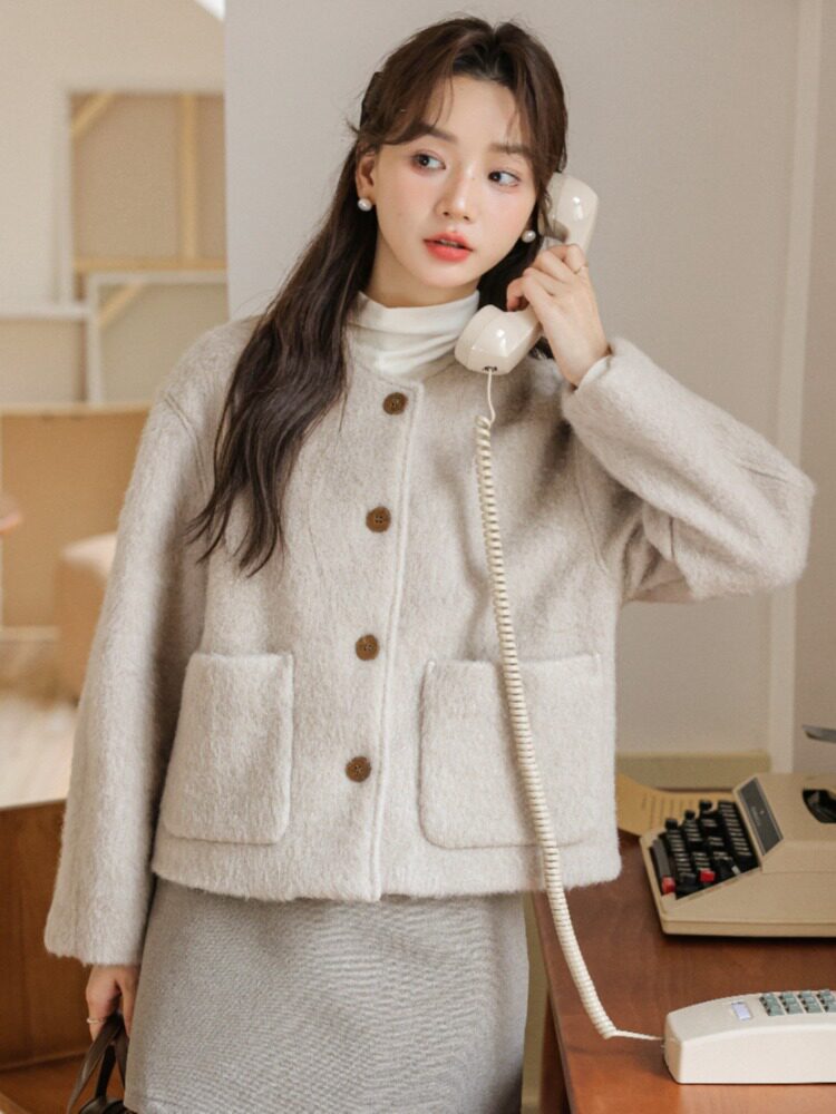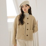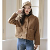 Милое короткое демисезонное шерстяное пальто, куртка, в корейском стиле, оверсайз, свободный крой, яркий броский стиль, в стиле Шанель