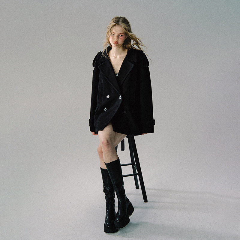 OAKMOO Шерстяное черное цветное демисезонное шерстяное пальто, изысканный стиль, свободный крой