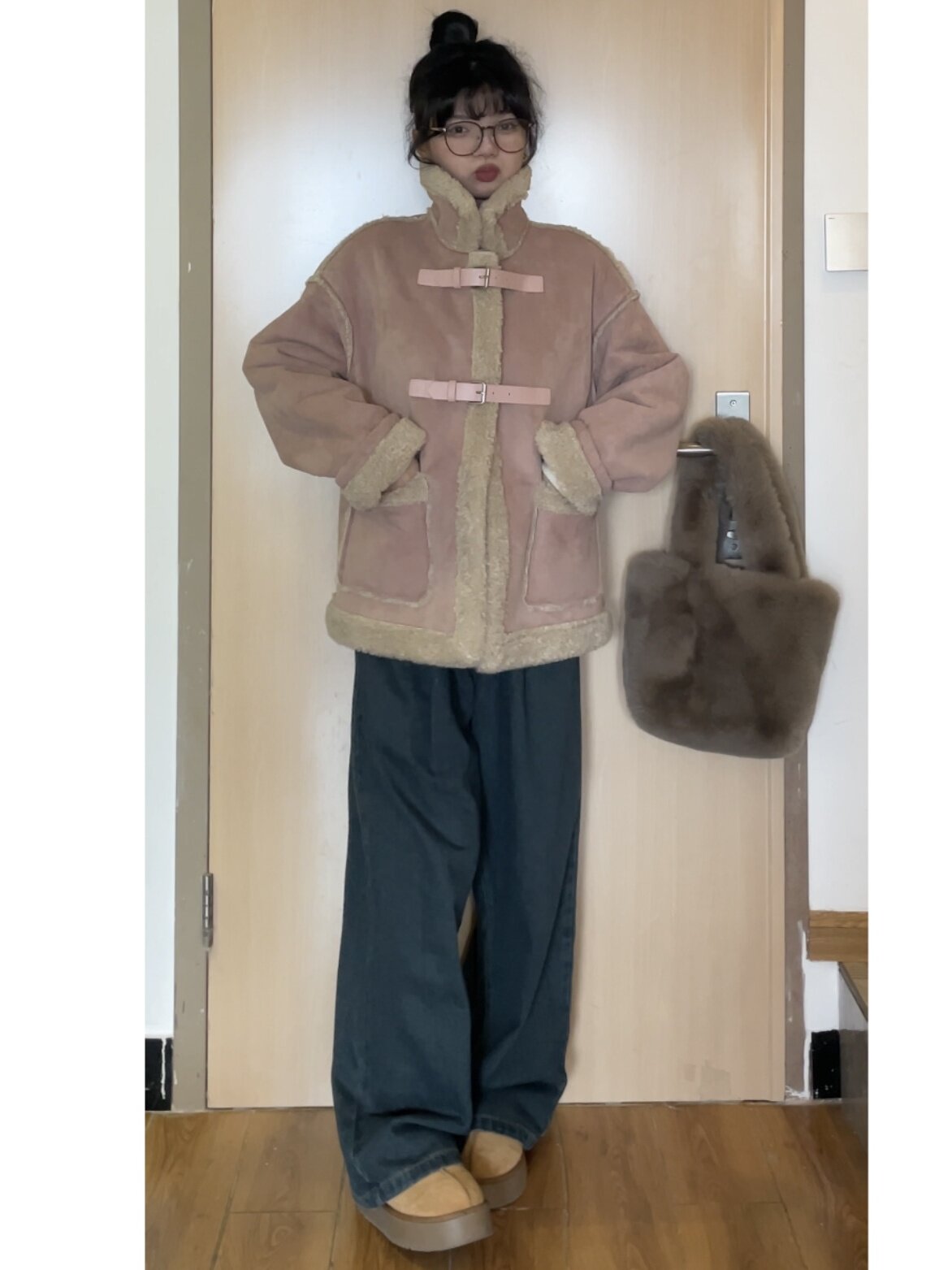 Средне-розовое шерстяное женское цельное шерстяное пальто ранней осени из грубой шерсти, маленький короткий стиль