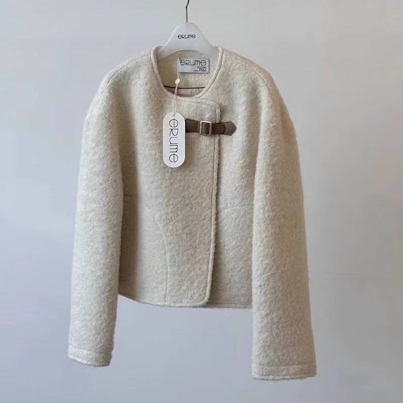 Шерстяное короткое шерстяное пальто с круглым воротником, зимняя куртка, изысканный стиль, подходит для подростков, 2023, в корейском стиле