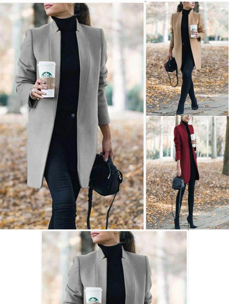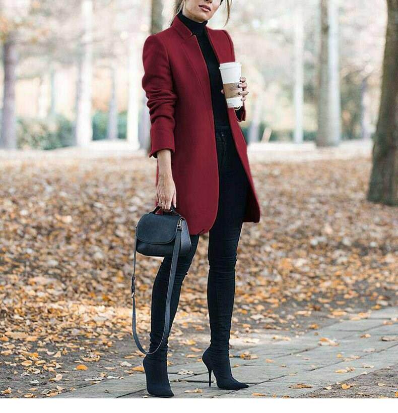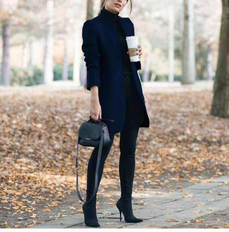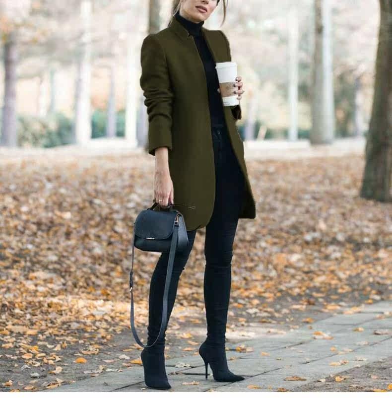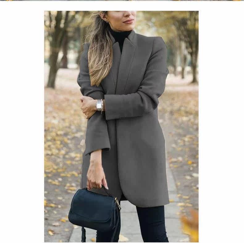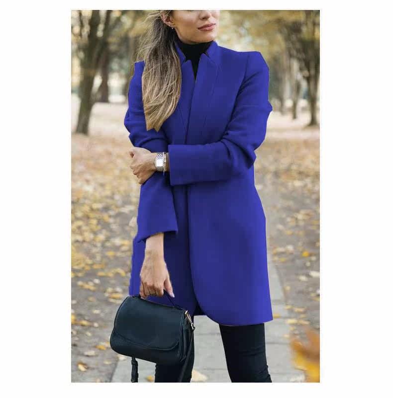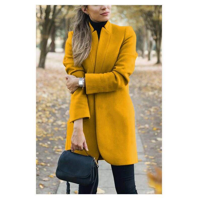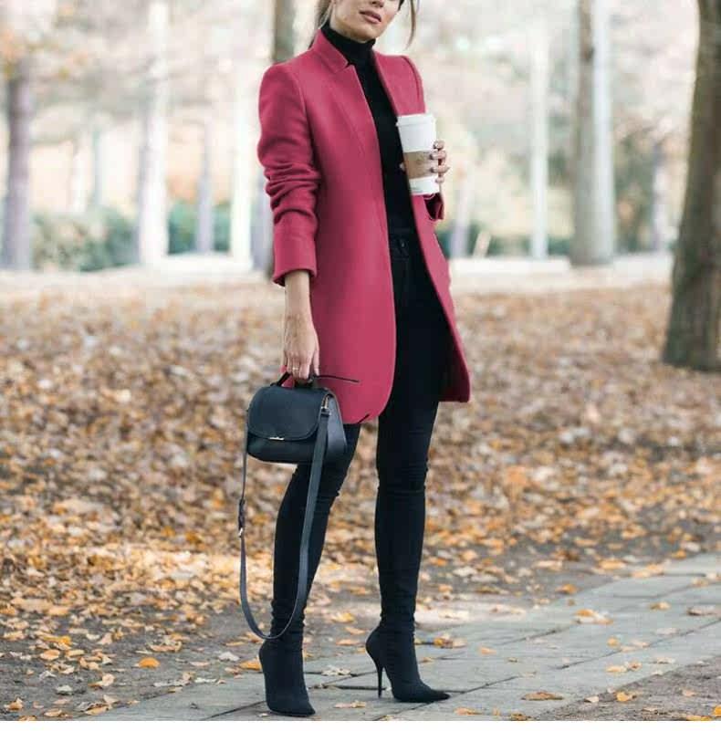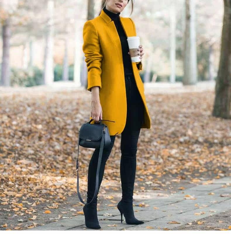 Осенняя зимняя мода с твердым цветом шерстяное пальто воротник