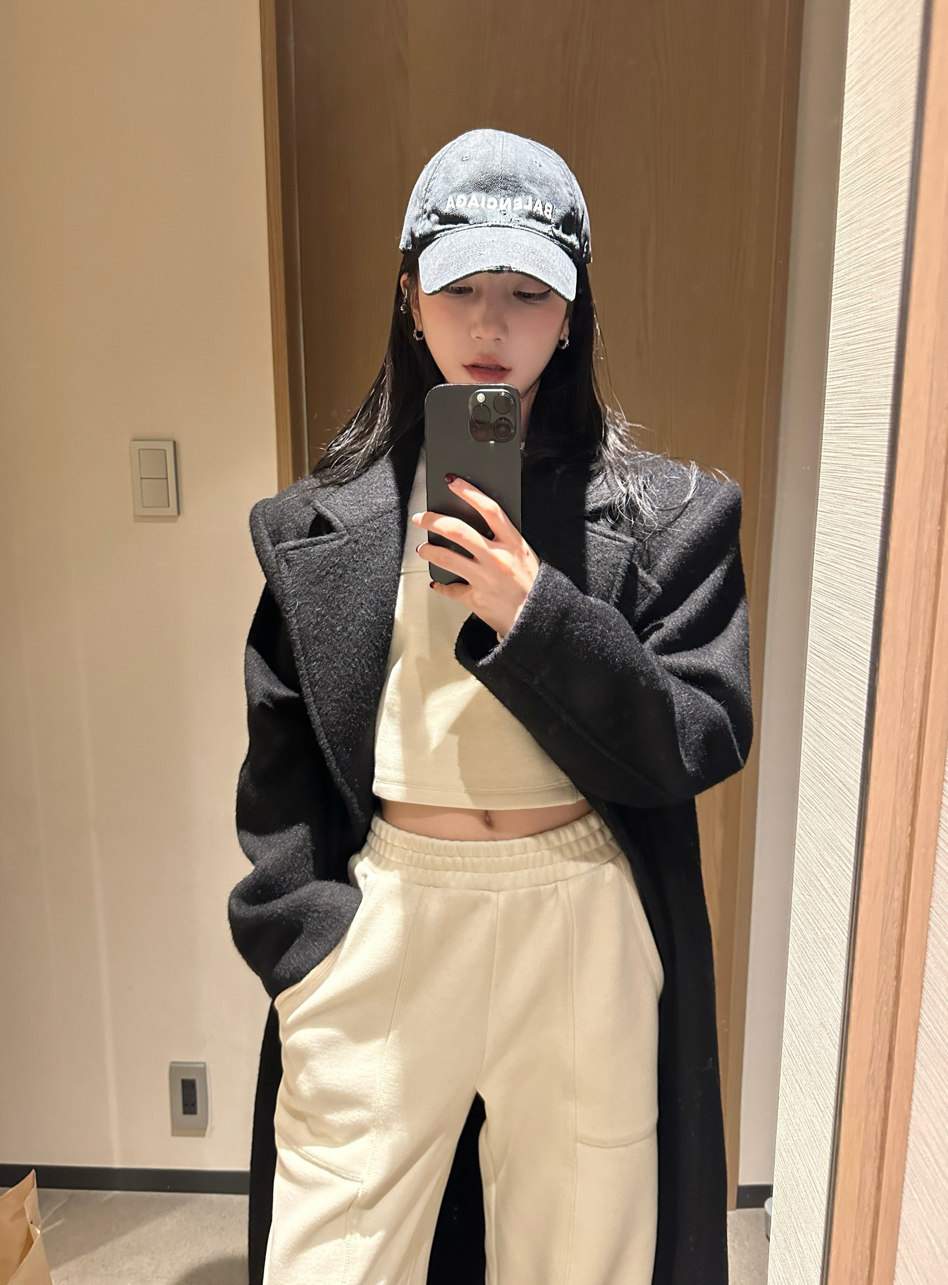 Черное шерстяное шерстяное пальто, изысканный стиль, яркий броский стиль
