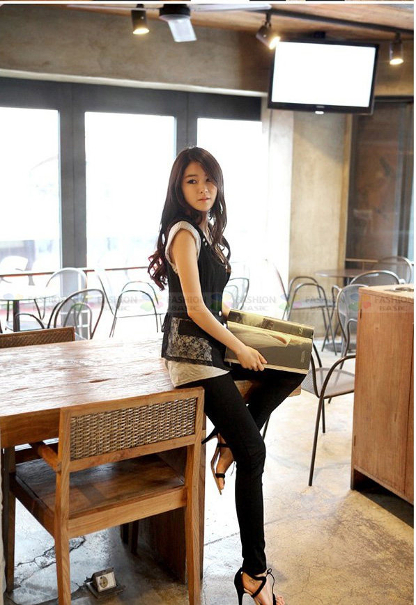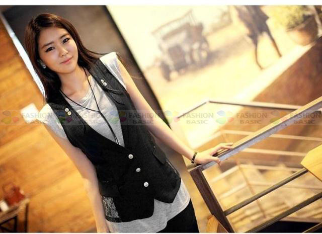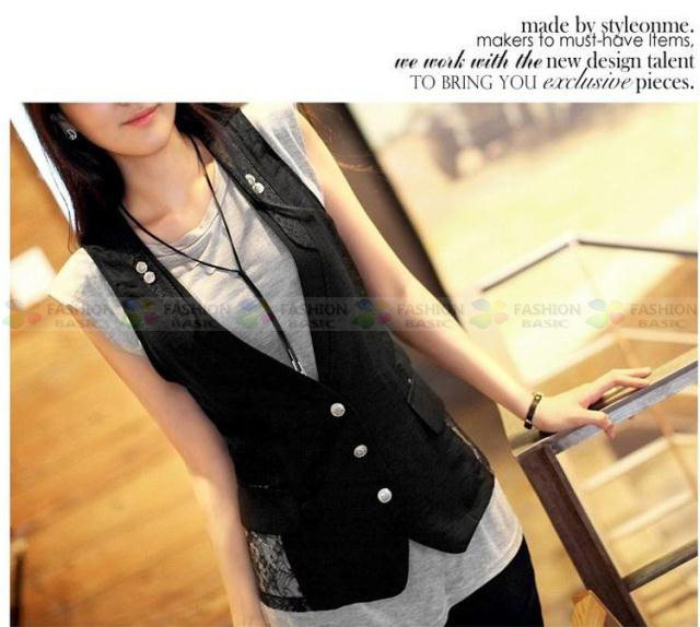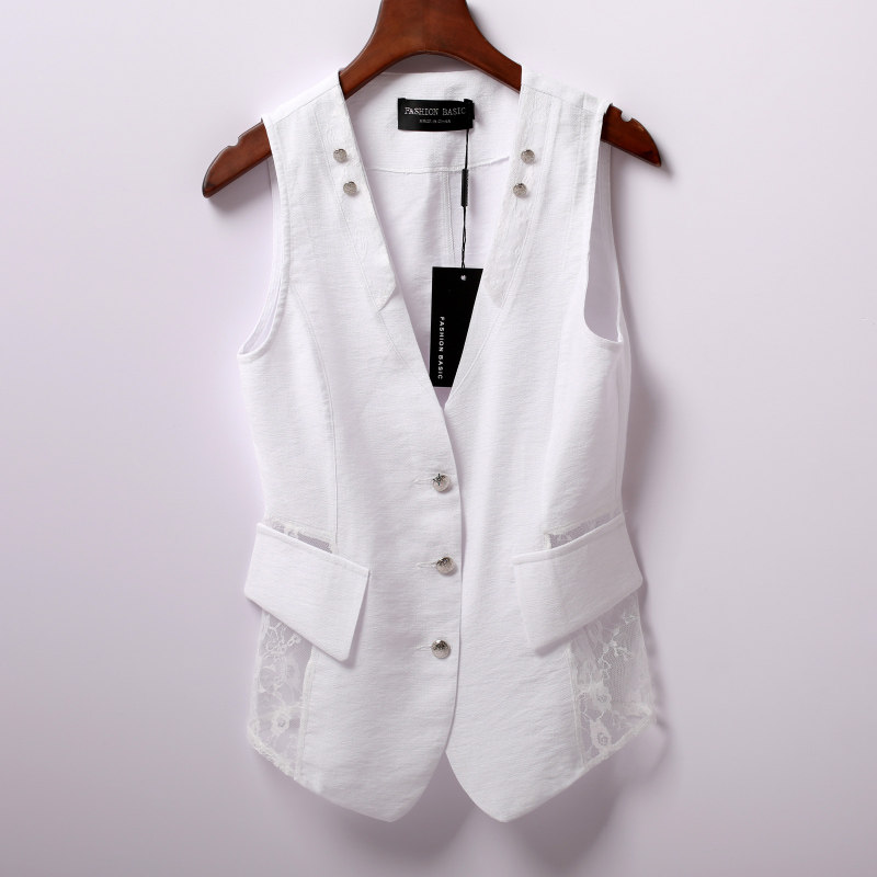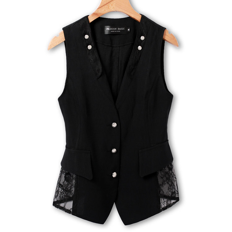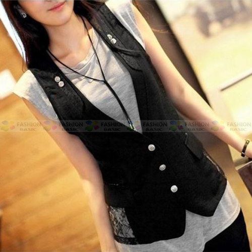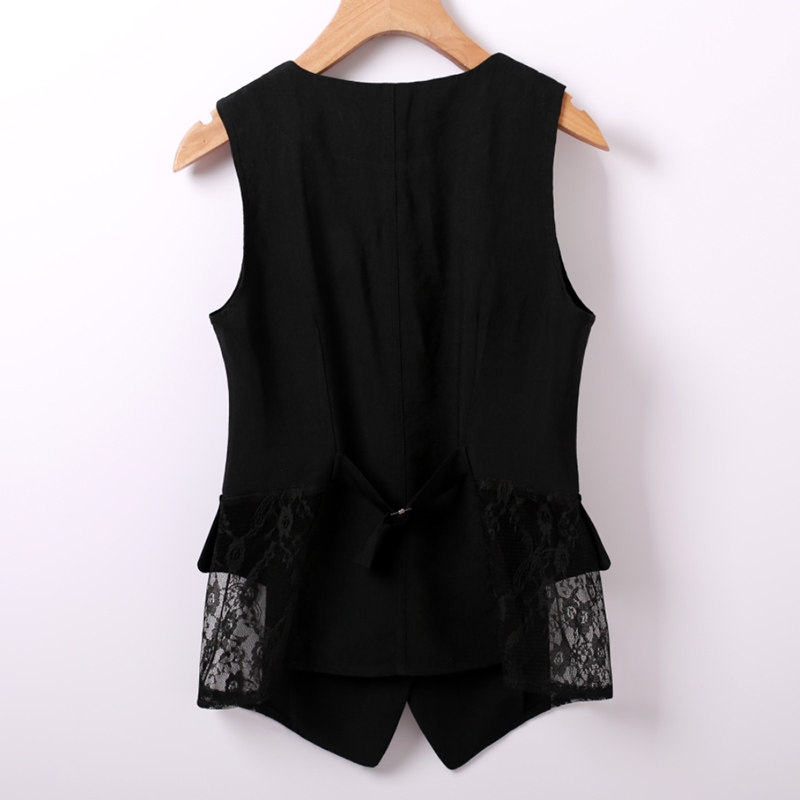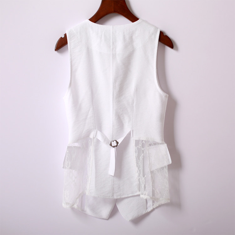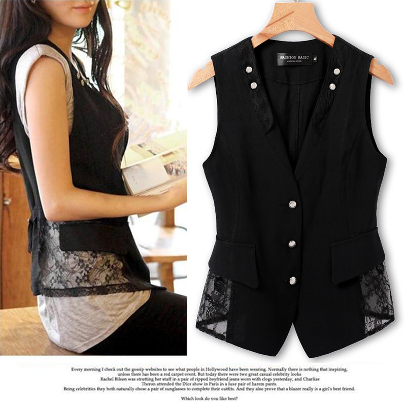 Кружевной костюм, модный жилет без рукавов, приталенная куртка, в корейском стиле